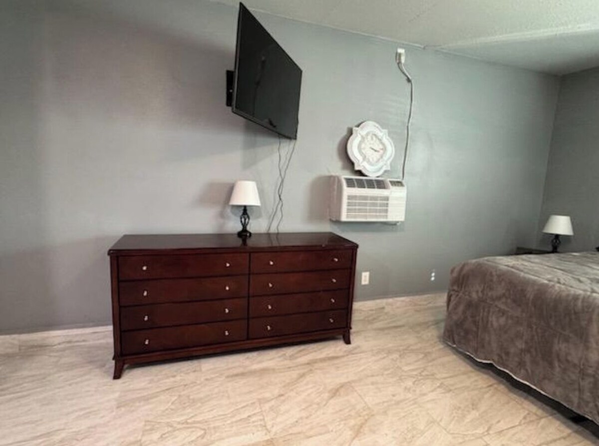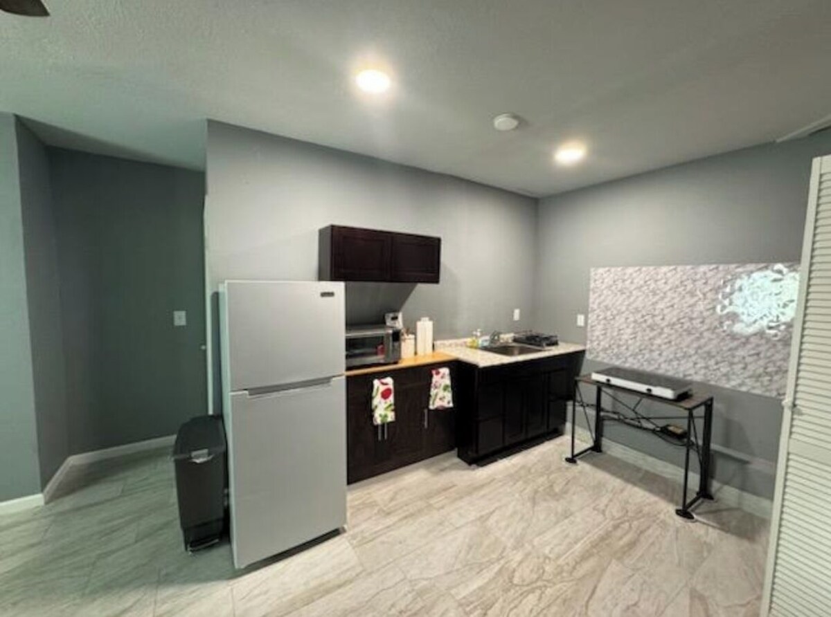 Nestled in Las Vegas, this delightful quiet studio boasts a marvelous living room with a comfy king bed. The bathroom features a refreshing shower and toiletries for your convenience. With amenities like a smart TV, washing machine, AC, heating, and free WiFi, guests will feel right at home. It's easy to see why you'll be able to unwind at our place. Free street parking and if a vehicle is needed, it can be rented if advance notice is given. This studio is in the center of EVERYTHING that is pretty much walking distance; Walmart, CVS, KFC, outlet shopping malls comprised of Best Buy, Burlington and Ross. It's 5 min from the freeway on ramp, there are 3 hospitals within 5 miles. 12 min from downtown, Las Vegas 15 min from the main strip 20 min from the airport There are also many family attractions around the area as well such as: The go cart racing track with some carnival rides and an arcade, Chuck E Cheese, batting cages, sky jump trampoline and a movie theater a few blocks away! There will be SO MANY things to do, you'll only come back to shower and sleep. Our prices include all fees. No hidden fees.