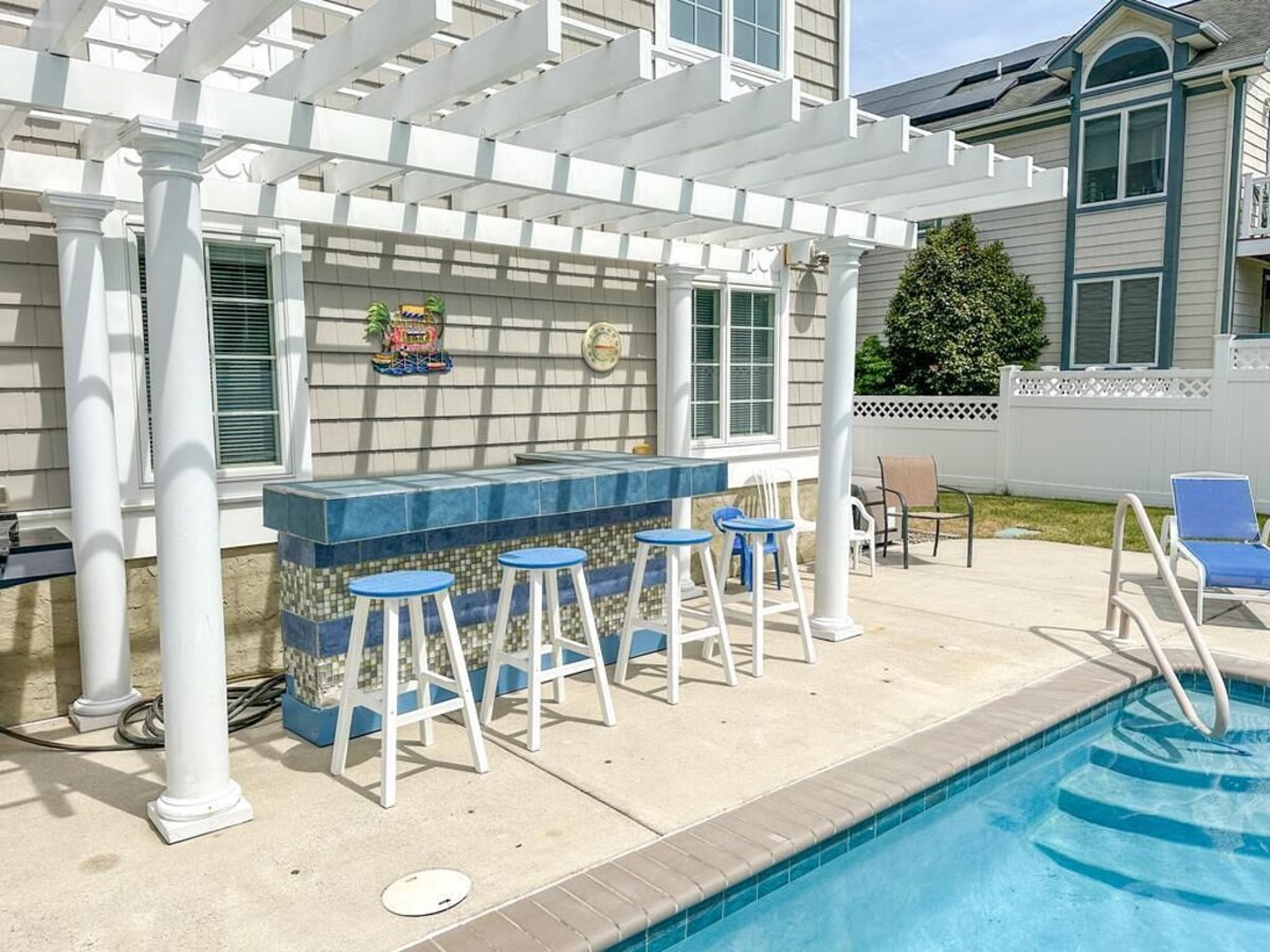 Welcome to your perfect Cape May escape! This spacious and pet-friendly 4-bedroom, 2 full and 2 half bathroom vacation home offers the ideal blend of comfort, relaxation, and fun just steps away from a pet-friendly harbor beach. Located near the Coast Guard base, this upside-down style home is designed to take full advantage of its scenic surroundings, with the main living spaces on the upper level featuring an open-concept kitchen, living, and dining area. Step out onto the deck to enjoy beautiful views of the harbor, or relax in the Florida room—a screened-in, three-seasons space with a pull-out sofa that overlooks the private backyard and pool area. The home offers multiple levels of comfort and entertainment. The first floor includes a garage that's been transformed into a fun hangout space with a pool table, bar setup, arcade game, and kayaks available for guest use. A bedroom on this level features both a king and queen bed, with a convenient half bath nearby. Upstairs on the second floor, you’ll find the master suite complete with a king bed, en suite bathroom with a walk-in shower and whirlpool tub—perfect for unwinding after a day at the beach. Two additional queen bedrooms share a full bathroom on this floor, making it perfect for families or groups of friends.With harbor views, a private pool, and thoughtful amenities for both guests and their furry companions, this Cape May getaway has everything you need for a memorable stay at the shore.**This property accepts one dog or one cat max and has a 50lbs weight limit, as well as an associated pet fee.****Pool is not heated**For more information, please contact Jersey Cape Realty at 609-884-5800 or Rentals@JerseyCapeRealty.com Our prices include all fees. No hidden fees.