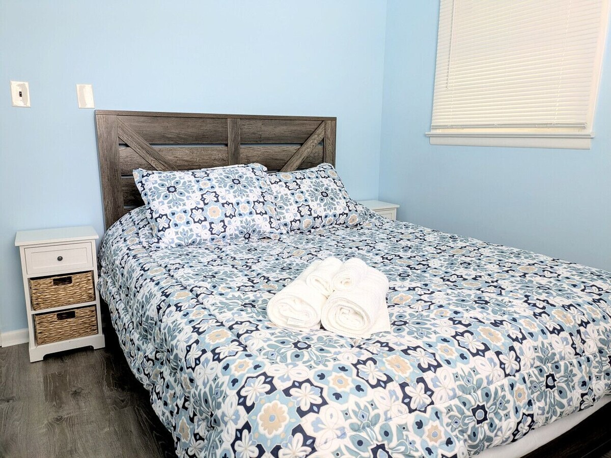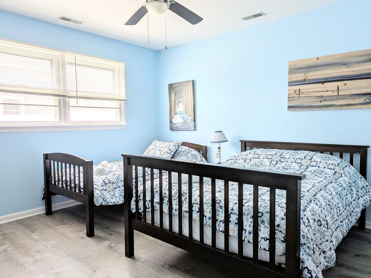 Welcome to our cozy, newly updated house just a short walk to the bay beaches and a 15-20 minute drive to downtown Cape May. We provide: -Smart TVs -Washer & Dryer -Equipped kitchen -Outdoor dining table & chairs -Outdoor shower -Coffee pods -Linens & towels included Come relax with kids and pets alike in the fully fenced in yard located 1 block from the Delaware bay beaches and only 15-20 min drive to downtown Cape May or Wildwood. This house is equipped with a fully stocked kitchen, outdoor shower, 2 smart TVs, luxurious linens, and lightning fast internet. There is keyless entry for your convenience. Come be our guest and enjoy the hidden gem that is the quiet Cape May Villas and see some of the best sunsets on the east coast. The master bedroom has a queen bed, and the second bedroom has a full bed, twin bed and rollaway twin bed. We are local and available for any issues. Come enjoy a relaxing stay just one block from a bay beach access. Our prices include all fees. No hidden fees.