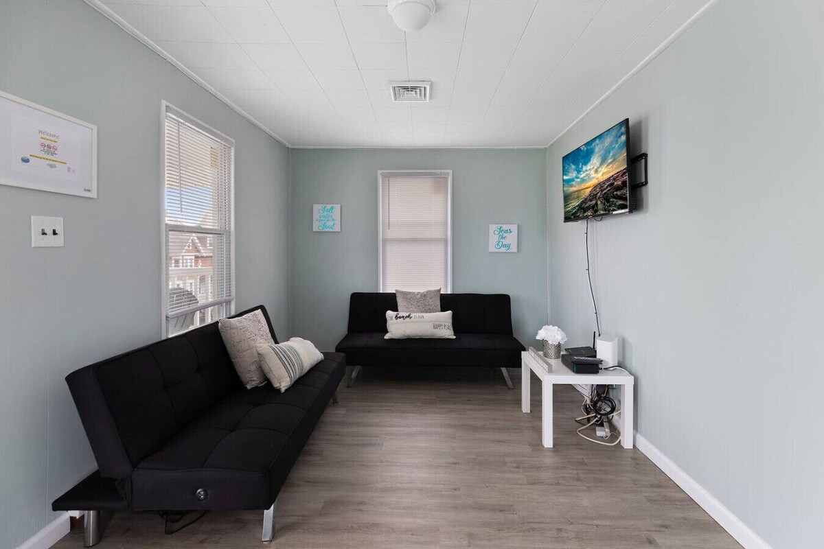Situated 0.5 miles away from the bustling Wildwood Boardwalk & Beach, this 3-bedroom gem promises effortless access to the city's finest dining and bars. Explore picturesque nature preserves, sandy beaches, the historic Cape May Lighthouse, and educational museums all within a 20-minute drive away. On the inside, you'll be greeted by a spacious 1,100 sq. foot space, boasting a large HDTV, a fully equipped kitchen, and the ultimate backyard BBQ experience with access to a grill. $250 pet fee THIS APARTMENT IS LOCATED ON A 3rd FLOOR WALK UP ..... Get ready to explore the beautiful coastal landscapes out here on the south-eastern shores of New Jersey’s lively resort city, with Tmu National Wildlife Refuge and Wildwood Dog Park & Beach being a under a 10 minute drive away. A delightful setting for friends and families, guests who stay here will enjoy a world of endless entertainment owing to the wealth of attractions, thrill rides, waterparks, and shopping opportunities located just a stone’s throw away. Upon entering the home, you will be greeted with an open concept living room outfitted with a few cushy couches to stretch out on and ceramic tile flooring adding a touch of sophistication to the space. Transform every night into a dinner party with ample room for entertaining game nights at the dining table or indulge in a movie marathon on our large HDTV, with the ability to log into your favorite streaming services. Getting hungry? Satisfy your culinary cravings in the kitchen, a lovely space with all the tools you need to bring your culinary visions to life. From the granite countertops to the timber-inspired cabinetry and a full suite of appliances – every aspect of this kitchen has been designed to make your cooking experience effortless and enjoyable. Get your creative juices flowing using our: • Full size refrigerator • Microwave, oven and stove • Pots and pans • Oil, salt, pepper and spices • Plates, bowls, mugs, glasses, and silverware • Cutting board, cooking spoons and knives Should you decide to dine out, have peace of mind that a slew of seafood restaurants and international cuisines are a short walking distance from the property. Choose from Mexican, Polish, Italian, and many more! Ready to hit the hay? Then get ready to sleep on cloud 9! Whether you need to take a short nap or retire for the night, restful sleep will find you in one of our 3 exquisite bedrooms. A total of 8 guests can fall asleep comfortably here, and feature: • Bedroom 1: 1 Queen mattress with clothing rack. • Bedroom 2: 1 bunk bed with a clothes rack and hangars. • Bedroom 3: 1 bunk bed with a luggage rack. • 2 living room sofa’s • 1 full bathroom with a bathtub/shower room combo, toilet paper, towels, and a sink vanity to store your bathroom essentials. Digital Keypad We will always be available. Call, Text, email, or Airbnb chat. Top Rated Attractions *Historical Attractions* Cape May Lighthouse Nestled in the charming coastal town of Cape May, New Jersey, sits a beacon of history and beauty – the Cape May Lighthouse. Standing tall at 157 feet, this lighthouse has stood the test of time and has been shining its guiding light for over 160 years. The lighthouse is one of the oldest in the country, and is still in operation, illuminating the way for sailors and beckoning all to come and explore. Climb the 199 steps to the top of this magnificent tower, and you will be rewarded with breathtaking panoramic views of the Atlantic Ocean and the surrounding landscapes. This lighthouse is a true gem, listed on the National Register of Historic Places and beloved by locals and tourists alike. Come and experience the magic of the Cape May Lighthouse, where history and beauty converge, creating a truly alluring and unforgettable experience! Doo Wop Experience Museum Step back in time and experience the vibrant, futuristic world of Doo Wop architecture at the Doo Wop Experience Museum in Wildwood, New Jersey. This museum is a celebration of a unique moment in design history, showcasing the colorful, space-age vision of the mid-century architects and builders who transformed Wildwood's beachfront into a wonderland of atomic-age style. From vintage photographs to interactive displays and multimedia exhibits, every aspect of this museum is designed to transport you to another time and place, when steel, glass, and neon were the building blocks of a bold new vision for the future. Other History buffs and aviation aficionado’s should also pay a visit to the Naval Air Station Wildwood Aviation Museum and Harriet Tubman Museum. *Outdoor Recreation* Dolphin and Whale Tour Step aboard Thunder Cat Dolphin Watch & Speedboat Tours for a unique adventure unlike any other. Get ready for a thrilling encounter with the wonders of the sea, where you will have the opportunity to witness the playful antics of pods of dolphins, glide alongside graceful stingrays, and perhaps even catch a glimpse of magnificent whales! This is a chance to connect with nature and create memories that will last a lifetime. Cape May National Wildlife Refuge Plan a visit to the wild heart of New Jersey at Cape May National Wildlife Refuge, a stunning landscape of salt marshes, tidal creeks, forests, and fields that is home to an incredible array of wildlife. From the graceful flight of migratory birds to the gentle shuffle of endangered species like the piping plover and Atlantic loggerhead turtle, this 10,000-acre refuge is a true treasure trove of natural beauty. Locations and Distances Supermarkets and Shopping: • Europa Delights (0.4 miles) 2-minute drive • Boardwalk Mall (0.4 miles) 2-minute drive • Bill's Corner Deli (0.8 miles) 3-minute drive • CVS (0.9 miles) 4-minute drive • ACME Markets (1.0 miles) 4-minute drive • North Wildwood Shopping Center (1.1 miles) 4-minute drive • A & LP Foods (1.4 miles) 4-minute drive • Little Giant Food Market (1.6 miles) 6-minute drive • Russo's Market (2.0 miles) 7-mi