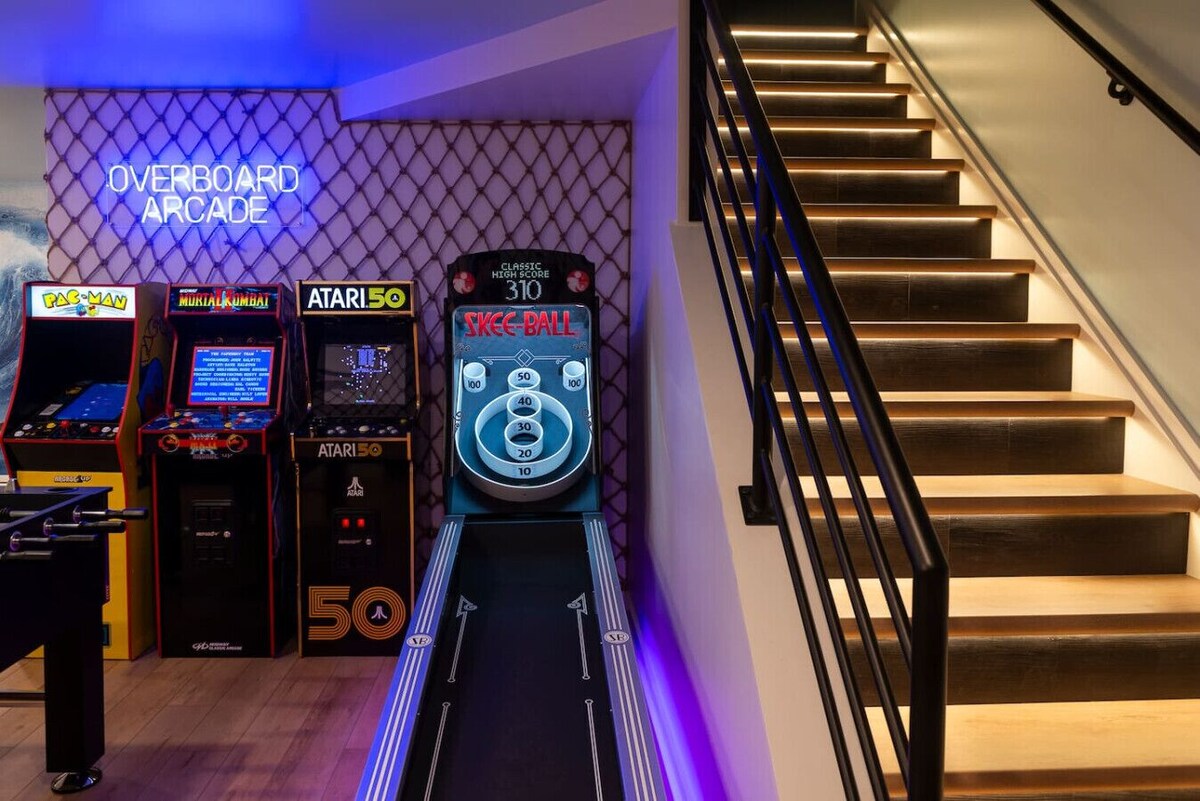Windward brings the carefree energy of a 60s beach shack to the elevated setting of The Coastal Quad, New Jersey’s first pocket resort. This playful 1BR suite offers a private yard with hot tub, fire pit, and grill — plus full access to rooftop mini golf with water views, a skee ball arcade, a full gym with infrared sauna, and more. Just steps from the Delaware Bay’s sandy shores and a short drive to Cape May and Wildwood attractions, Windward is your retro-modern retreat for shore adventures. PLEASE NOTE: refunds are subject to a non-refundable 4% credit card processing fee for Vrbo bookings. 🛏️ Designed for Sleep In the bedroom: a queen bed with Wirecutter’s top-rated memory foam mattress In the living room: a queen sleeper sofa with memory foam mattress 100% cotton sateen sheets & spa-soft waffle-knit robes Down & down-alternative pillow options available Blackout curtains for total rest 🍳 Chef-Ready Kitchen Bosch appliances & induction cooktop Stunning, durable quartz countertops Dishwasher, cookware, spices, and all the essentials for home-cooked meals 📺 In-Suite Entertainment 65` 4K Samsung Frame TV with Roku Guest Mode Netflix, HBO, Hulu and Disney+ log-ins available Retro-style board game library 🐾 Dog-Friendly Details Fenced yard with antimicrobial turf, bowls, bags, and welcome treats $100 fee per dog | Limit 2 per reservation 🌿 Private Outdoor Perks 6-person Nordic hot tub with lounge seating Upgraded outdoor shower Charcoal grill & fire pit (BYO charcoal / logs) Beach chairs & umbrella included 🛁 Spa-Like Bath Luxury zero-entry shower Indulgent Kohler rain head shower system Plush towels & premium toiletries Baby bath available 🌟 Shared Amenities (Exclusive with Full Quad Reservation) 🏓 The Overboard Arcade Skee ball, foosball, air hockey, and ping pong 3 retro arcade consoles with 100+ preloaded, classic games 🏋️ The Midship Gym 3-person infrared sauna with Bluetooth and red light therapy Yoga mats and ample floor space Curved, manual treadmill, stair climber, air bike, and rowing machine Dumbbells, kettlebells, pull-up bar, and adjustable gymnastics rings 💼 Private Office Space (Reservable) Beautifully designed for Zoom call envy Standing desk, acoustic panels Monitor, keyboard, mouse, and ring light ⛳ The Crow’s Nest (Rooftop Mini Golf) Stunning, naturalistic 4-hole course playable as a 9-hole game Picnic table seating for 6 plus 4 additional Adirondack chairs Bay views perfect for sunset hangs or quiet morning coffee The Laundry Hold 4 high-efficiency LG Washtowers (washer + dryer units) Detergent and dryer sheets provided Convenient for longer stays or beach-day resets The Coastal Quad is a pocket resort with plenty of private space (such as a fully-fenced backyard) and shared space (such as the Crow`s Nest, Misship Gym, Common Office, and Overboard Arcade) These amenities are accessed by a pathway that wraps around the perimeter of the property, also allowing for easy rear yard access! We will provide a guidebook with all of the necessary contact information for help during your stay. Please don`t hesitate to reach out! Our prices include all fees. No hidden fees.