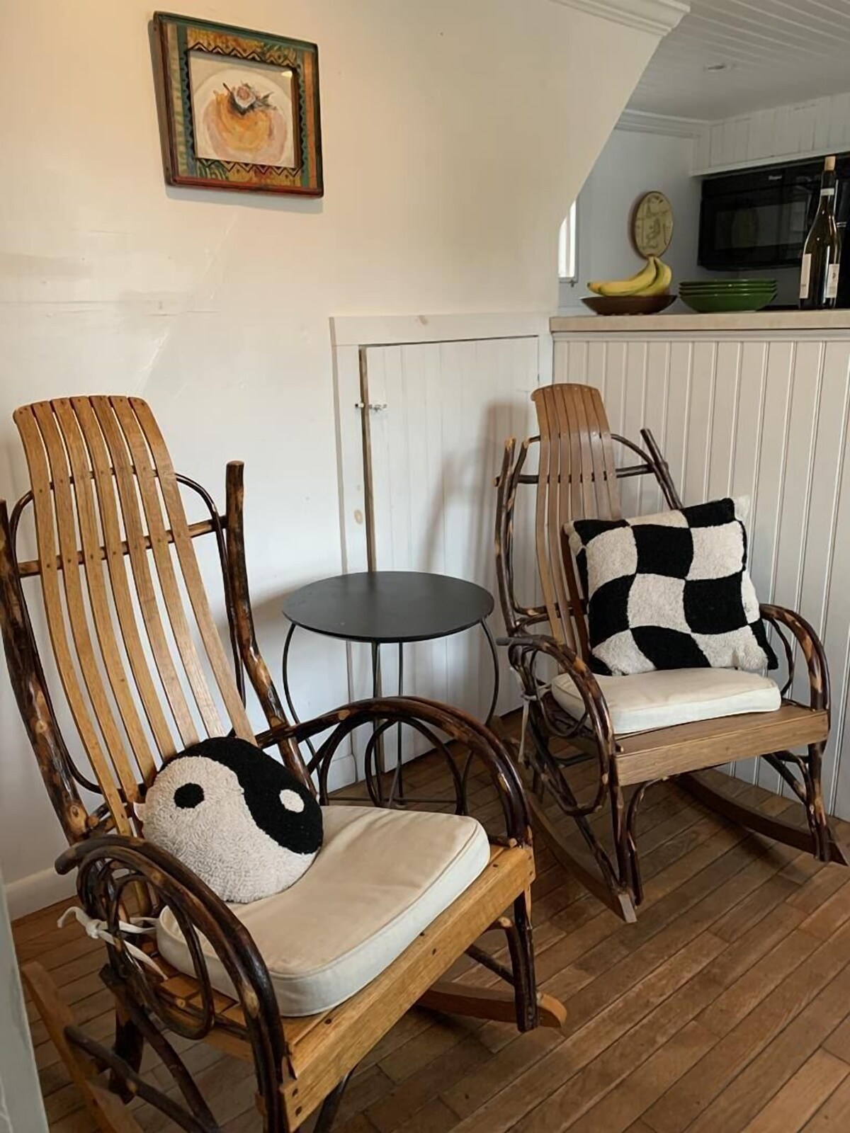 Cape May Artists CottageWelcome to the Cape May Artists Cottage—a fisherman’s cottage blending modern comforts with coastal charm. This home features 2 bedrooms, 2 full bathrooms, and a versatile family room with additional sleeping accommodations.Sleeping ArrangementsFirst Floor Family Room: Queen daybedSecond Floor Bedroom 1: Queen bed + 1 Twin BedSecond Floor Bedroom 2: Two twin bedsSleeps up to 7 guests comfortablyBathroomsFirst Floor: Shower/tub comboSecond Floor: Walk-in showerFeatures & AmenitiesCentral air conditioning and heatFully equipped kitchen with adjoining dining and living roomEnclosed outdoor shower (seasonal)Outdoor deck with grill, surrounded by a quiet gardenFully fenced backyard—perfect for relaxing or letting pets playDriveway parking for up to 2 small carsThe cottage maintains its authentic beach aesthetic with original stained and painted hardwood floors, complemented by a collection of original paintings, prints, and ceramics. It offers a peaceful retreat right in the heart of Cape May.With its central location, you can park your car and walk to Cape May’s finest beaches, restaurants, and shops.Pet FriendlyPets are welcome! If you are not bringing a pet, you won’t be charged pet rent. (For online bookings, your lease will be adjusted accordingly.) Our prices include all fees. No hidden fees.