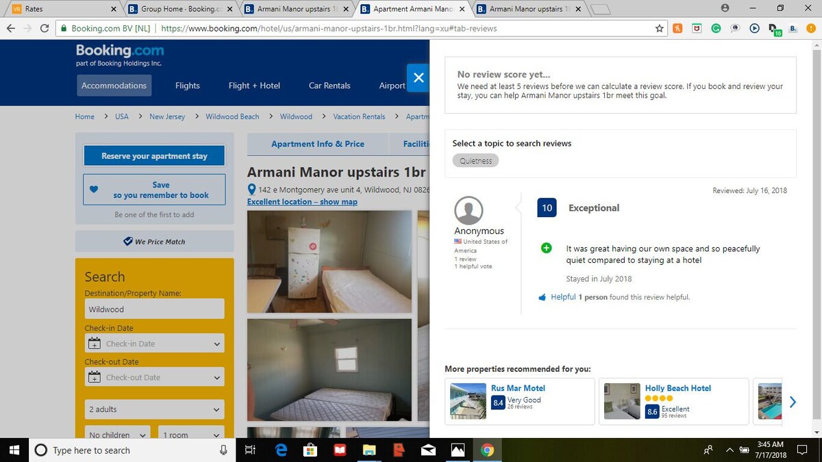 Stay in this Older but Cozy House newly renovated, Just 2 & 1/2 blocks to the Convention Center, FAMOUS Wildwood Beach & Boardwalk. Water Parks, Shopping, Dining, & Entertainment, and the FREE Friday Night Fireworks that only Wildwood offers are also close. right across from wildwood high school, this house offers Free Comcast Blast WiFi, Ice Cold AIR CONDITIONING, OFF-STREET PARKING, BBQ GRILL, Pong Table Available(420 friendly) Among many other Amenities. There are (2)1br & a 2br. We rent for all major events such as basketball tournaments, PROMS, Memorial Day Weekend, Soccer, 4th of July, laborday weekend, Irish wknd, car shows, Frisbee, Lacrosse Tournaments. We rent daily, weekly, wknds, and seasonal, for more information on pricing and availability text or call Tony @ show contact info ~ friendly & reasonable, best rates around! The house is an older house and is not perfect, if you are expecting a new shiney condo, this is not the place for you. *choose the days you want *no wristbands *helpful insight on how to avoid tickets and legal issues from a life long resident *1br is upstairs a Mediterranean Motif(Bedrooms Do Not Have Doors) with a gated sundeck, perfect for small dogs. also has a full bed, double twins(trundle) beds, single twin bed, single shower small bathroom, ac, stereo, WIFI, smartTV(bring any devices & cords if you want connectivity ie. smart phones, laptops, game systems & players)perfect to have in case you get a rainy day. the smartTV has sign-ins for netflix, hulu, etc. *SECURITY DEPOSIT REQUIRED $300/1BR $400/2BR. RETURNED UPON CHECKOUT *PLEASE BRING YOUR OWN TOWELS, LINENS, PILLOWS, ETC. THANK YOU *bbq grill is also available as well as a beer pong table upon request *check in time is at 3pm while the check out time is at 11 am. Thank You for your courtesy and patronage. WE ARE VERY FRIENDLY & NEGOTIABLE, JUST WANT EVERYONE TO BE ACCOMMODATED HAPPILY HAVE A WONDERFUL VACATION! THANK YOU IT IS MUCH APPRECIATED! Our prices include all fees. No hidden fees.