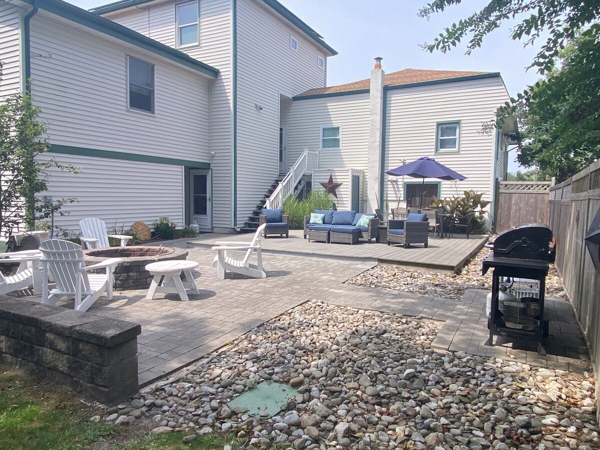 Located just one block from the Delaware Bay, this home offers beautiful sunsets and easy access to beaches that are pet-friendly with no beach tags or parking meters. Enjoy a short walk to the Bayfront bar and restaurant or a bike ride to the Cape May-Lewes Ferry terminal. The home sleeps 8-10 with the top floor offering a master bedroom with a queen-sized bed and a private bathroom and a private porch. The first floor features 3 bedrooms with double beds and a smaller private bedroom with a double bed and bathroom. ****Please note: Linens and towels are not included - blankets and pillows are included. The home has 2-zone central air / forced natural gas heat with ceiling fans throughout and a gas fireplace in the family room. First and second-floor decks are perfect for morning coffee. The backyard area is fully fenced in and has a large deck with a paved patio and a large wood-burning fire pit, propane gas grill, an outdoor table, chairs, umbrella. After a beach-filled day, cool off with an outside shower. A Landscaped backyard provides privacy and shading. There are beach chairs, coolers, and a beach cart available to get everything you need to the beach or bay. We have provided you with many of the amenities that you have at home: 3 smart screens Tv’s, digital cable, high-speed wireless internet, central air, ceiling fans, microwave, air fryer, 2 refrigerators, 1 coffee maker, 1 Keurig coffee maker, blender, toaster, washer/dryer, and parking for 4 -6 cars.