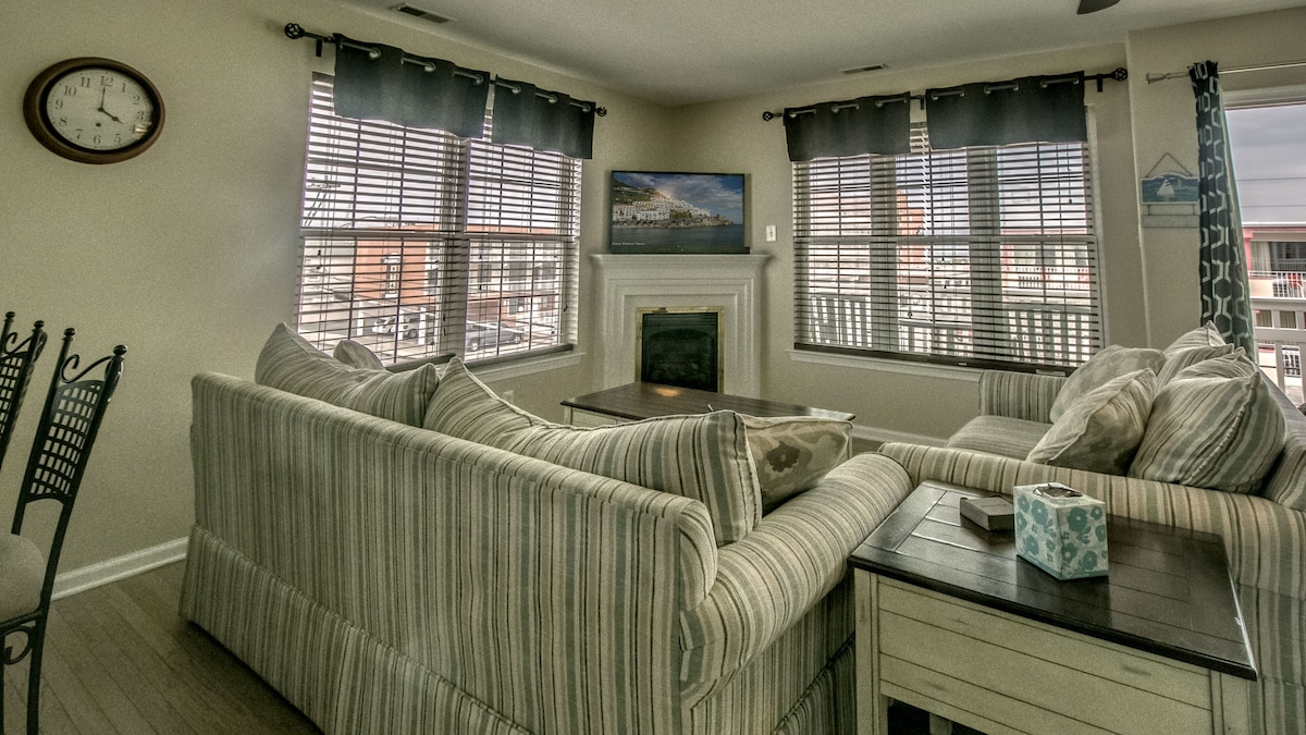 Great Location! 3 bedroom, 3 bath, sleeps 6, AC, deck with oceanview, 2 car garage, 1 block from beach near convention center, kitchen with dishwasher/microwave/refrigerator/