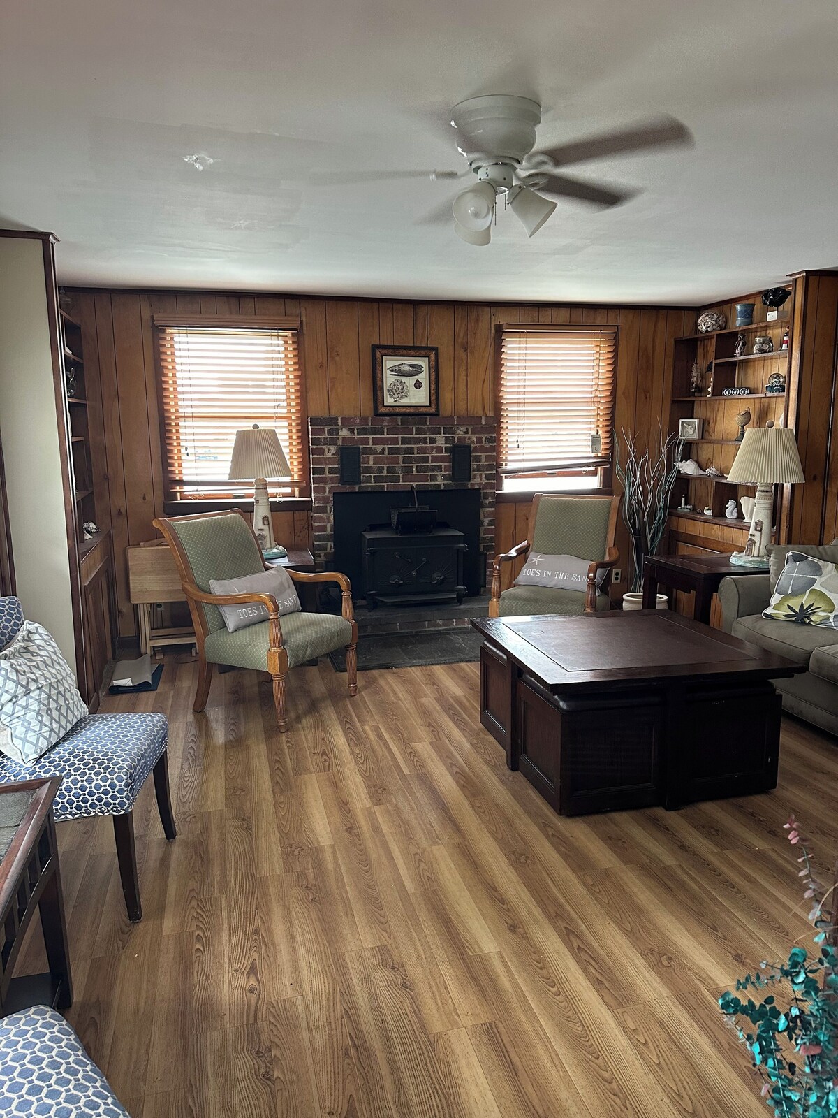 Sleeps 8, 4 bedroom, 1 1/2 bath home The home is equipped with all of the amenities of home including, internet, washer, dryer and all utilities. Two bedrooms each have a queen beds, one bedroom has 2 twin beds, and the fourth bedroom has a full size bed. 1 full size bathroom and 1 half bathroom. Kitchen has lots of cabinet space with a full size stove. The living room area has a queen size sleeper sofa and wood stove. A front porch for relaxing. Home - includes Four bedroom home - sleeps eight (8) 1- KIng Bed 1- Queen Bed 2- Full Beds (one is a sleeper sofa) 2- Twin Beds We do not include sheets and towels Full size stove, refrigerator Washer and dryer Internet Wifi Window air conditioners 1 1/2 baths All utilities And all the unique benefits it has to offer! Rent for the ENTIRE SUMMER, a MONTH, or for a WEEK! Discount Rates for Seasonal, Monthly and Weekly Rentals. Spring and Fall Seasons, Discount for May and September. depending on the week prime/Holiday weeks are higher. (prices subject to change). Please request a quote. Winter rates also available You can also ask about our cottage that sleeps 6 at VRBO #427400 Our prices include all fees. No hidden fees.