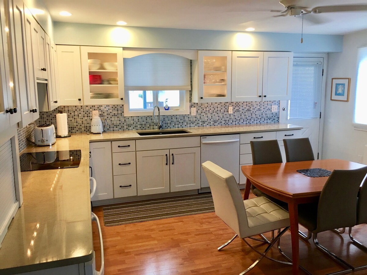 The house is only a three to four minute walk to the ocean and boardwalk! This spacious home has a big yard, (not fenced in) a large screened porch, two living rooms, a dining room, eat-in kitchen, three bedrooms, two full baths and a hot water outdoor shower. You can park in the two-car driveway and walk to the ocean, boardwalk, arcade, convention center and restaurants. The Acme grocery store and Washington Street Mall are just a few more blocks away. Being so close to the beach and boardwalk is one of the great advantages of this house. In the quiet of an evening, you can sit on the screened porch and (depending on the wind) often hear the waves crashing! There's a lot of space on the main floor, so even with six people, you never feel crowded. The breezy screened porch is right off the kitchen and has plenty of seating. The bright sitting room has a large tv and comfortable seating for six. The dining room has shelves of puzzles, cards and games; the expandable table seats up to ten people and is adjacent to a cozy living room. The large, eat-in kitchen walks out to the screened porch with a picnic table that seats six. Everything you would need to prepare and serve a Thanksgiving or any holiday dinner is provided. The master bedroom with a king bed, big tv and en suite full bath is on the main floor. The other two bedrooms are on the top floor, where there is another full bath; each upstairs bedroom has two twin beds and a tv. Housebroken, well trained dogs over the age of eight months are welcome. We cannot accept cats due to the owners' and their children’s cat allergies. Linens are NOT provided; you can bring your own towels, sheets and pillowcases from home, or rent them locally. We provide pillows, pillow protectors, mattress pads, blankets and bedspreads. Beach chairs, an umbrella and beach wagon are located in the area underneath the porch. Basic Details About this Vacation House ~ House with 2 car driveway in CM historic area, 2 blks from beach ~ During Summer Season, check-in/check-out day is Saturday ~ One week minimum & two weeks maximum stay during Summer ~ Check-in days in the off-season are flexible (3 night min stay) ~ Maximum number of overnight guests is six. ~ Linens are not included. ~ Full size washer & dryer conveniently located in the kitchen. ~ The gas grill is on the porch, near the kitchen. ~ Six beach chairs, an umbrella and beach wagon under porch ~ Window A/C's in ea. bedroom, dining/living room area & sitting room ~ Ceiling fans in kitchen, master bedroom, master bath & screened porch ~ Check-in time is 4 pm, check-out time is 10 am Important Note For Guests Who Plan on Bringing a Dog We realize that it can be hard on pets to be separated from their owners, especially if they have to be kenneled, and it’s more enjoyable for many people to have their dogs with them while they're on vacation and not have to pay for pet-sitting or boarding, or worry about how they’re faring back home. We’ve had great success for many years in providing this vacation rental as dog- friendly and without pet fees by trusting our guests to bring only completely house-broken dogs, and relying on our guests to keep the house clean and as free from pet hair as possible, just as they would their own home. It's totally understandable that not everyone wants to commit to housecleaning chores while they're on vacation, so please only consider this house if you agree to the following: We ask guests with dogs who shed to vacuum up pet hair and dander from the furniture and rugs - including on the screened porch. The vacuum cleaner and extra bags are in the closet near the front door. Sheets and blankets designated for dogs are located in the cabinet under the tv in the sitting room. These should be used if the dogs go on the furniture ~ please be sure and put them back there before you leave. Every effort should be made to keep dogs off beds; however, if they have gotten bedding muddy or sandy, then the affected bedspreads and blankets must be washed and dried and put back in the bedroom where they belong. If only a little hair is on the bedding, please place in dryer on low with a dryer sheet, to remove any pet hair. The washer and dryer are conveniently located in the kitchen. Please pick up after your dog in the yard and neighborhood during walks. Dogs may not be left on the deck or screened porch if you are not home. Each dog must be approved by the homeowners. Guests must comply completely with the Pet Addendum and provide requested details about the dogs to the homeowners in an email. The yard is not fenced; please make sure the gate on the deck is locked; EVEN BIG DOGS CAN GET THROUGH the small pet-door on the screened porch. Cape May & N.J. Taxes on Rental Charges and Fees: New Jersey State Sales Tax: 6.625% New Jersey State Occupancy Fee: 5% Cape May Municipal Occupancy Tax: 3% Beach Tags From Memorial Day through Labor Day, beach tags are required for all beachgoers aged twelve and over and will not be supplied by your accommodations. * * The City of Cape May prohibits the transferring of seasonal beach tags; the law requires that no one is allowed to provide tags to use on a temporary basis, be it an individual or a commercial establishment. 2025 Pricing for beach tags (2026 may be higher) Seasonal Tags: $40.00; Weekly (Sat-Sat) Tags: $25.00; Three-Day (Consecutive): $20.00; Daily Tags: $10.00 See capemaycity.com for details about buying ahead of time (non-refundable). Our prices include all fees. No hidden fees.