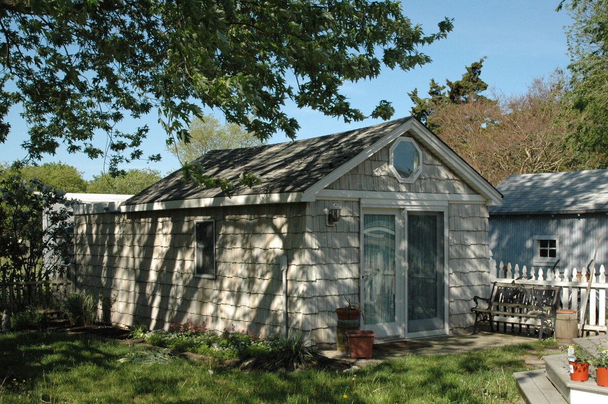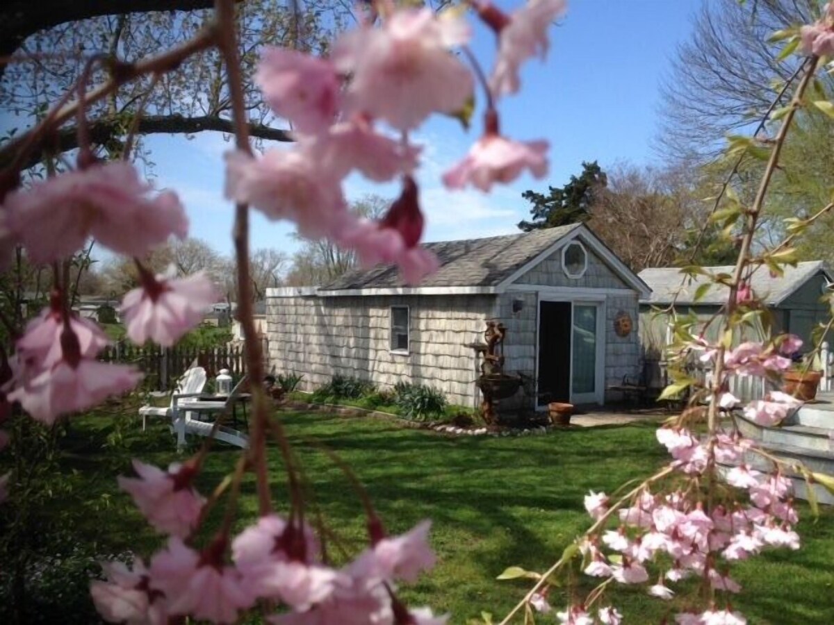 Cozy backyard cottage getaway for 2 located one mile from the beach in a leafy residential neighborhood.