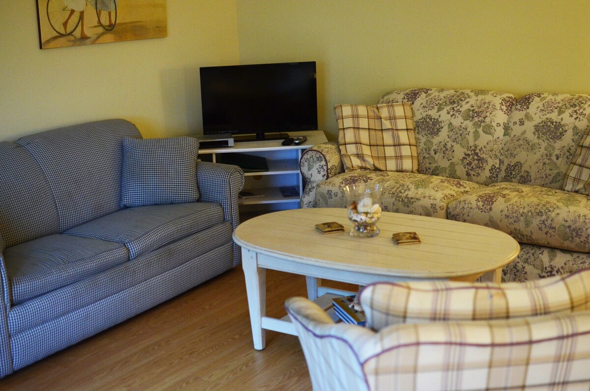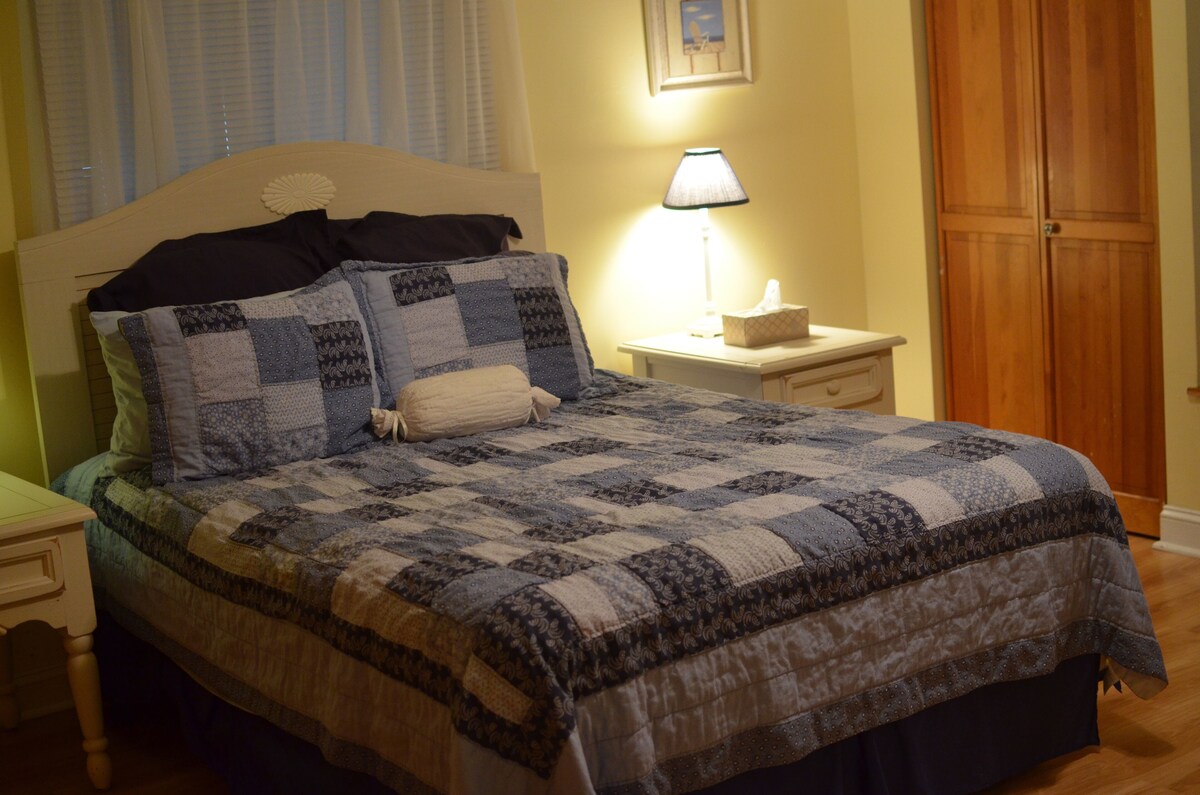 The Isenhart House Seaside Vacation Rental is the perfect escape from hectic everyday life. You can sit back, relax and do nothing or fill your days with the varied local activities. It is a bright, sunny, newly renovated 1 BR apartment nestled in a quiet neighborhood between Historic Victorian Cape May and secluded Cape May Point. Enjoy all the comforts of home yet none of the worries! There is a private entrance with a deck for relaxing or eating outside. You can sun yourself on your private deck or sip cold lemonade on our shady front porch. We invite you to share in the bounty of our seasonal vegetable garden. Come pick ripe Jersey tomatoes, peppers, cucumbers and more! We have books, movies and board games. We'll even help set up babysitting if needed! We are happy to provide suggestions for restaurants and let you know what's going on in town. Live like the locals. The weather is beautiful, the beaches are waiting, come enjoy all our lovely area has to offer. Keywords: Apartment Our prices include all fees. No hidden fees.