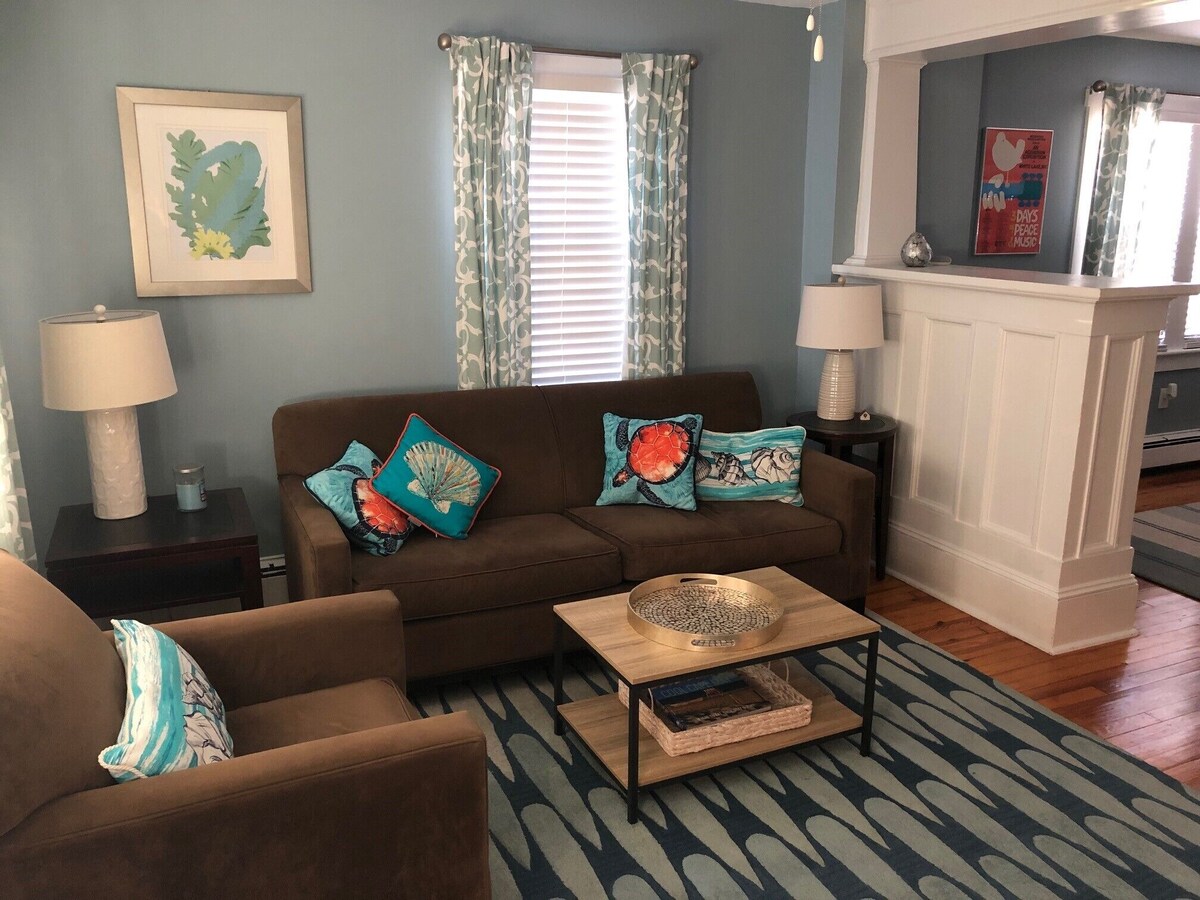 Our home is just minutes from the the Heart of Cape May's restaurants and shops. The beach is a quick 12 minute walk. At the beach you'll have access to a beach box (locked not included) to store your chairs and other items for the week - no more lugging your items back and forth each day!!! Pack your lunch and spend the day at the beach! There are 3 bedrooms - 1 king (new 18in. mattress) bed w/TV, 1 queen bed w/TV and a trundle bed w/2 twin beds (along with a pack-n-play & blowup mattress), 2 full baths (upstairs recently renovated), family room w/flat TV (& Roku), nice sized dining room and private yard w/Weber grill. Park for children across the street. Amenities: WiFi, outdoor shower & kitchen w/SS appliances.