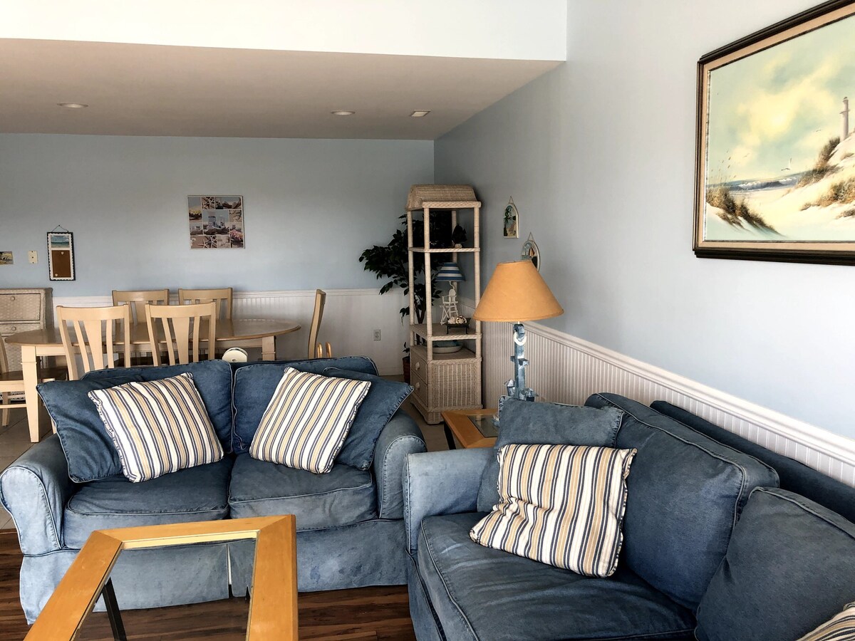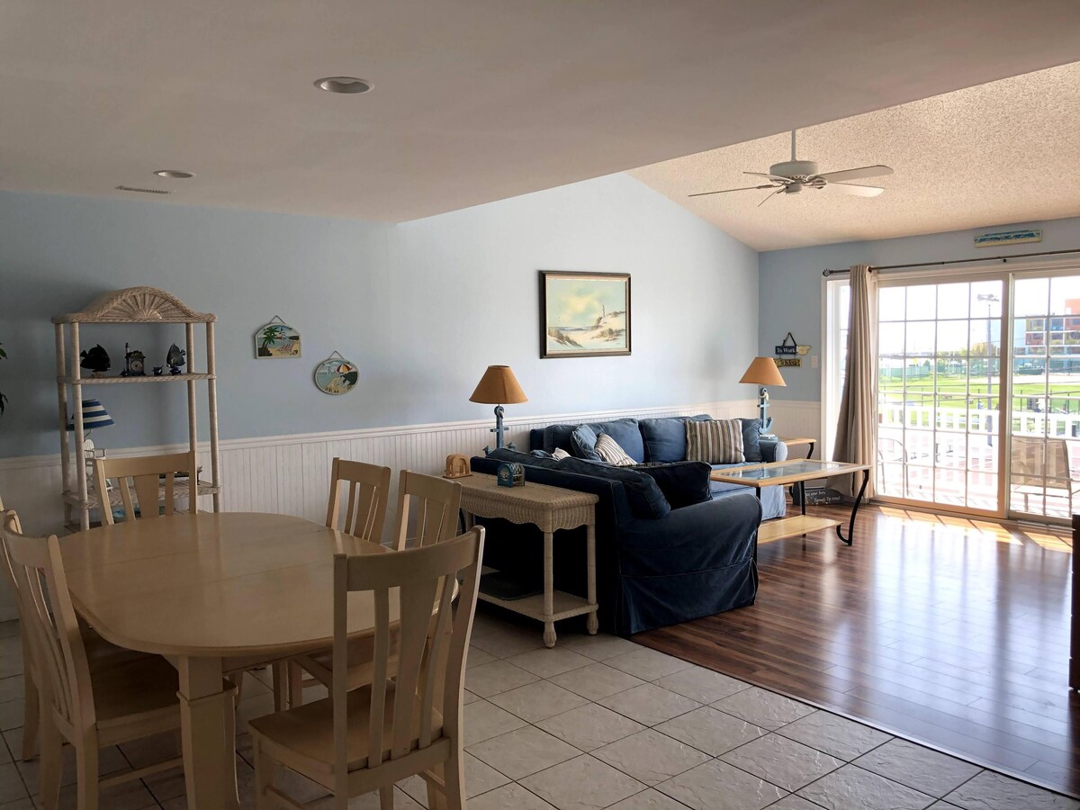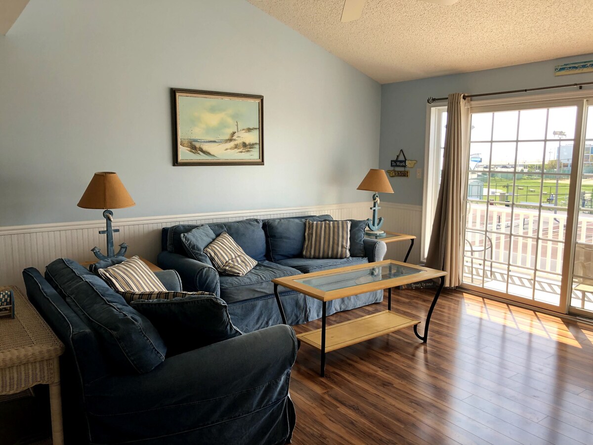 Second floor condo with balcony and partial ocean view. Boardwalk, beach, convention center, restaurants and park with children's playground, tennis and basketball courts are all within easy walking distance.