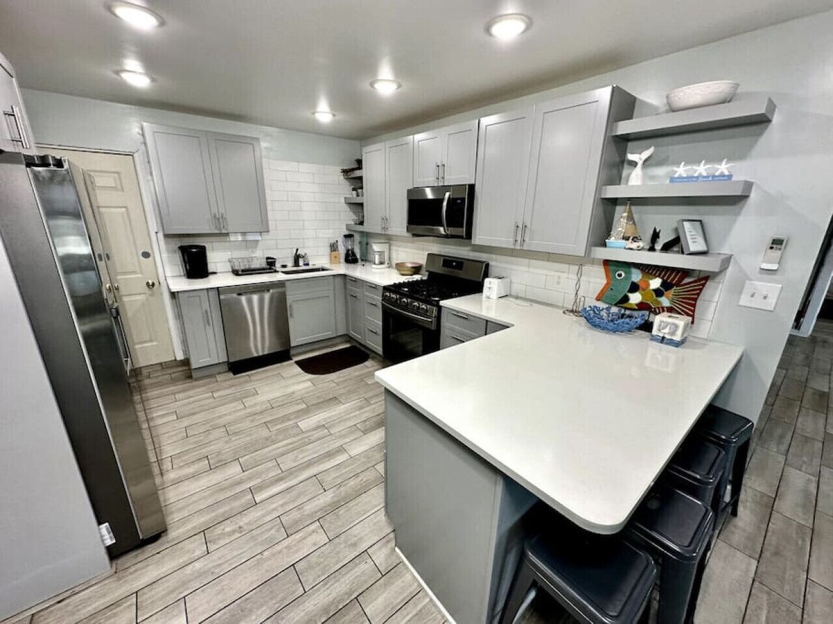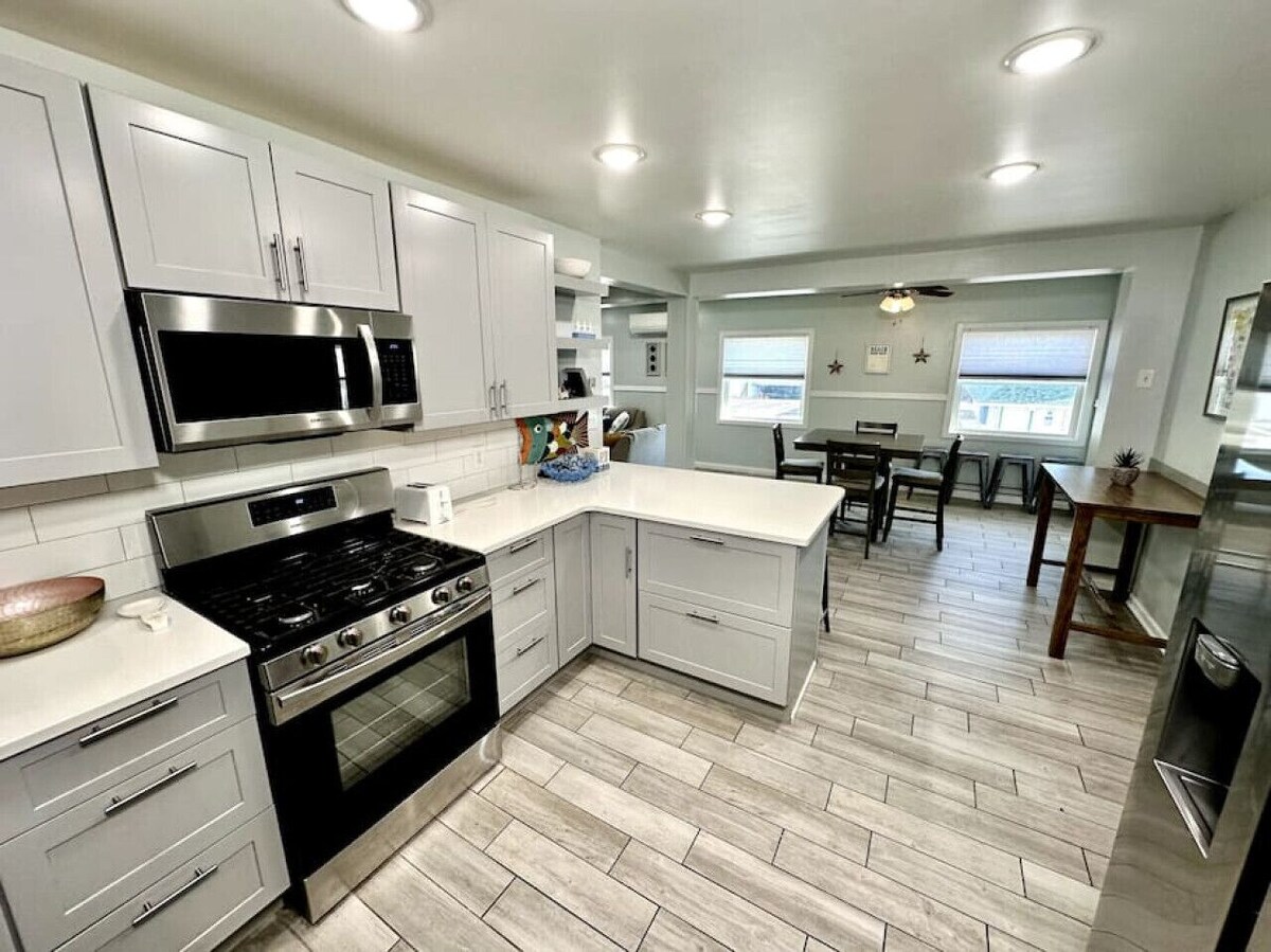 Gorgeous, Completely Redone 3-Bedroom, 2-Bathroom Apartment on Ocean Avenue in Wildwood. This Unit Can Sleep Up to 12 People. Located in the Center of Wildwood Right Across the Street from the Famous Wildwood FREE Beach & Boardwalk. Amenities Included: -Off Street Parking For 2 Cars- 1 Assigned Parking Spot on Property + 1 City Parking Tag (For Meters by the Property – Pending Availability) -55-inch TV in Living Room + HD Cable w/ Streaming Services (Must Login) -TVs in all Bedrooms -Fast Wi-Fi -Coffee Maker (Drip) -Washer & Dryer -Full Kitchen -Stainless Steel Oven w/ Gas Stove -Stainless Steel Dishwasher -Stainless Steel Microwave -Stainless Steel Refrigerator -Ice Maker -Blender -Toaster -Cooking Basics -Ceiling Fans -Dining Table w/ Seating for 4 -2 Breakfast Bars w/ Seating for 2 & 4 -Ceiling Fans -Window AC Units -Fireplace Bedroom/Bed Sizes: Master Bedroom: King Size Bed & Pull-Out Single Bed w/ Ensuite Bathroom + Flat Screen TV 2nd Bedroom: 2 Queen Beds + Flat Screen TV 3rd bedroom: 3 Single Beds (1 Twin Bunk Bed + 1 Twin Bed) + Flat Screen TV Living Room - Queen Size Sleeper Sofa + HDTV W/ Cable THINGS TO NOTE -The PREMISES are NOT Available to “Groups” or Persons Under the Age of Twenty-Five (25) Unless Accompanied by a Parent or Guardian - Primary Guests Must Sign a Lease Agreement & Provide a Copy of a Government Issued ID -We DO Accept Well Behaved Pets Under 30lbs. w/ Pet Fee of $200. Pets Over 30 Pounds w/ Pet Fee of $300 -Linens & Towels are NOT Provided, You Must Bring your Own or Ask Us About Renting Them from a Local Company who will Drop Them Off & Pick Them Up Directly at the Unit -Professionally Hosted by Don Martin Vacation Rentals Our prices include all fees. No hidden fees.