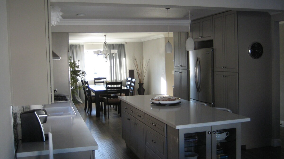 NOTE: PLEASE DO NOT USE BOOK NOW Button! Look to the right and click on \ Let's start a conversation and make sure that our house is available and a good fit. Sorry, we do not rent to Las Vegas residents, unless you have been displaced from your home due to damage covered by insurance or professionals that are in Las Vegas for Business. We gladly host Extended families. Mom, Dad, Grandpa, the kids etc. House Description: 2 story, Master Bedroom on first floor In-ground Pool/Spa. Spa is heated year round - no extra charge. Pool can be heated Oct 1st - March 31st for a $50 nightly additional fee. Clean and newly renovated 2000 square foot, 4 bedroom 3 bath home. It sleeps 8 in standard 5 bed configuration. We have one Graco Pack 'n Play. Children under 13 stay for free. We are conveniently located near the world famous Las Vegas Strip (11 miles), championship golf courses, amazing restaurants, Red Rock Canyon (10 miles to visitor center), and all major Las Vegas Convention Centers. [12.8 miles from Ceaser's Palace] Our home contains all high end furnishings, beds, decorations, appliances, cookware, sheets, and towels. We have meticulously provided you with every comfort of home. And, if we don’t have it, just ask, and we will provide! The house is in a quiet, private neighborhood with parking for 2 in the garage, 3 in the driveway, and unlimited in the street. Enjoy the ALL NEW sparkling pool and bubbly spa in a completely enclosed PRIVATE back yard with BBQ. Spa heating is always included. The house has four bedrooms, large master chef kitchen, full dining room, game room with poker table, family room, and 3 bathrooms. The master bedroom has a California King size bed, an en-suite spa bathroom, comfy chair, and 3 large custom closets. The master bath has two sinks and a stand-up spa shower with soft rain downspout surrounded by Calcutta Luna marble. The second and third bedrooms have luxurious queen size beds, and the fourth bedroom has 2 twin beds and includes a TV. This is comfortable sleeping for 8. The family room has two large plush couches and a comfy chair centered about the incredible glass fireplace and 55 inch TV. The poker table and 1000 clay chips are perfect for your in house Texas Hold-em tournament and can be flipped over for other uses. The back yard has a hot tub and pool. They are heated on demand. ... Also a Weber Summit 6 burner Gas Grill. There are four golf courses less than 5 miles away: TPC Summerlin, TPC Las Vegas, Badlands Golf Club, Canyon Gate Country Club, and Angel Park Golf Club. We are walking distance to the SunCoast and Rampart Casinos (15 min) and a short 4.4 mile trip to the most popular off strip Red Rock Casino! Also, there are many bars and restaurants that are just a 10-20 minute walk away or an easy drive. Tivoli Village is a short 1 mile walk and includes shopping, dining, and a cigar bar. There is a great exercise circuit surrounding the Angel Park Golf course that is just a 10 minute walk. The house is located 1500 feet from the Westcliff Transit Center which is a public transit option for travel to Historic Downtown, the Las Vegas Strip, and McCarran International Airport, among other destinations making a rental car not mandatory! Our prices include all fees. No hidden fees.