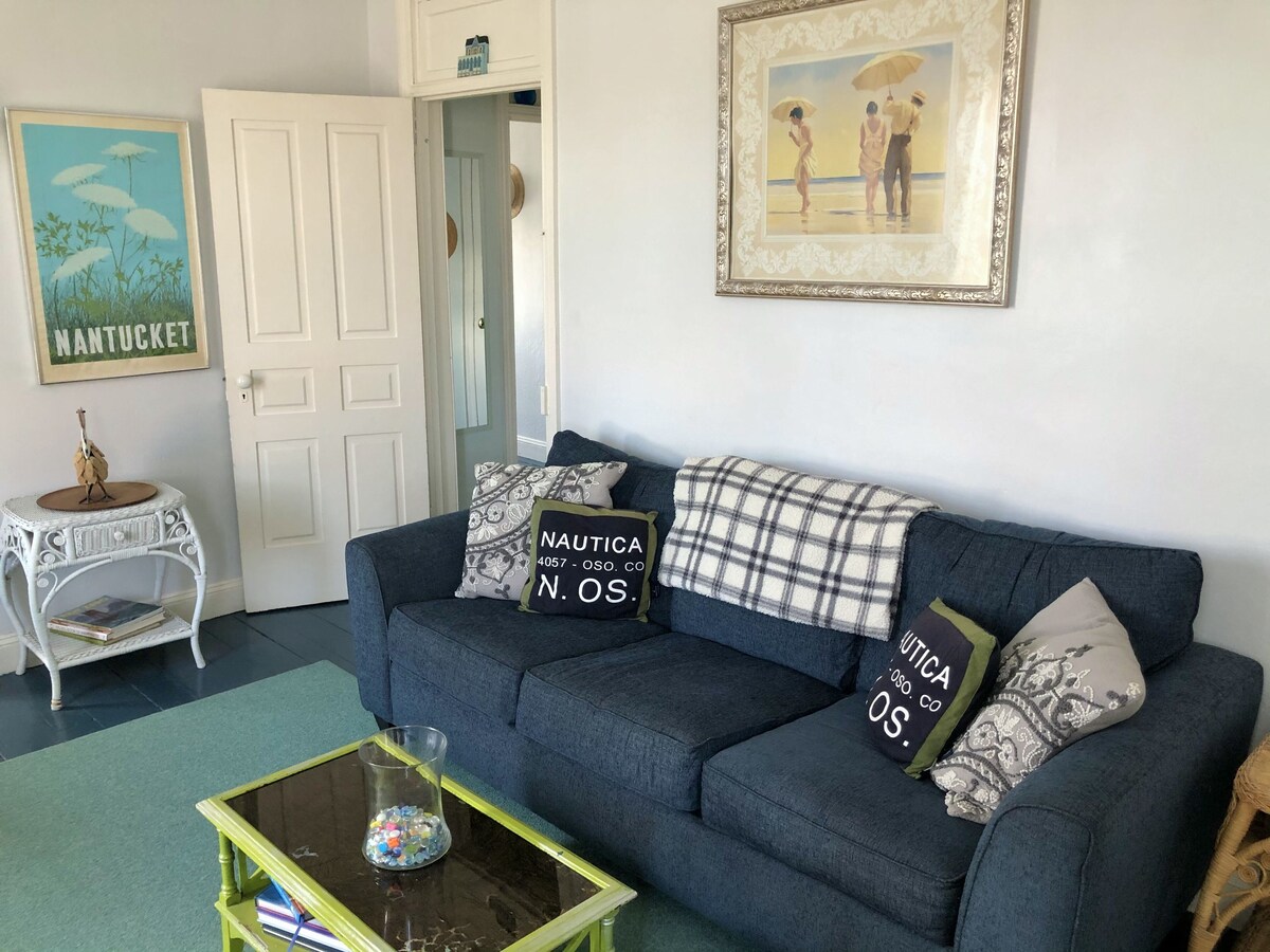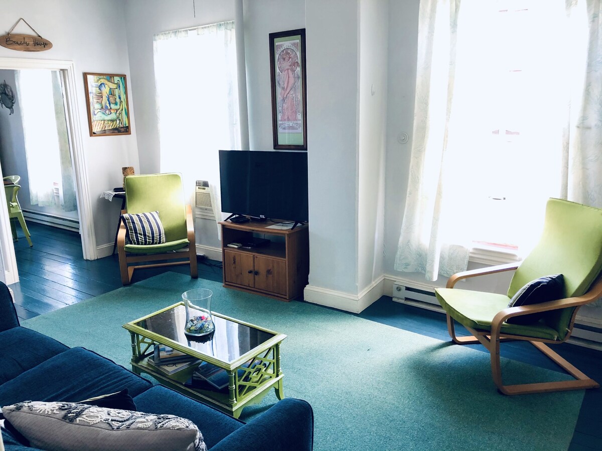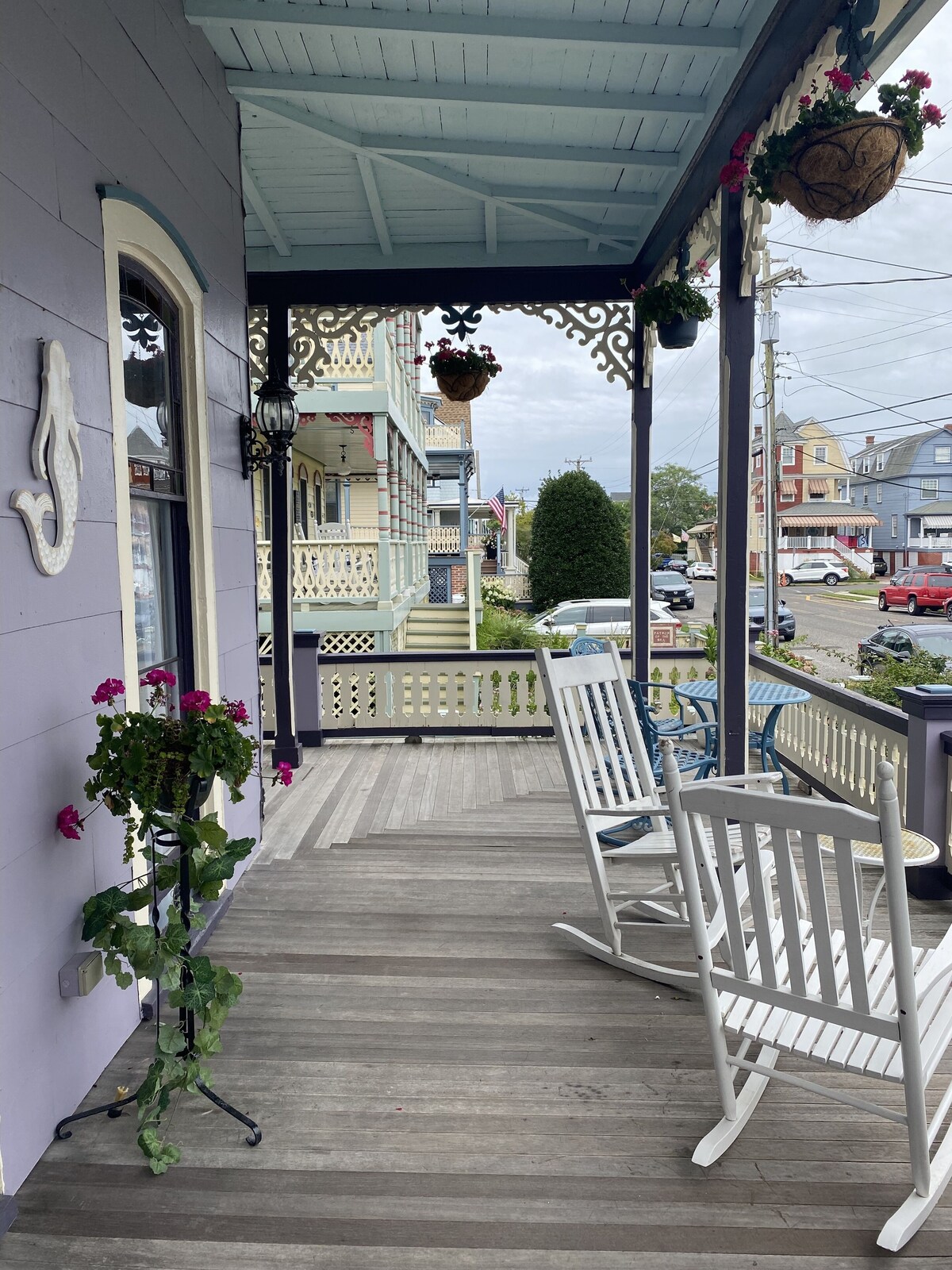This Charming 150 year old Historical Victorian flat is located 1 block from the beach and 3 blocks from Washington Square! Partial Ocean views are available from both bedrooms. Private deck included along with wrap around communal front porch. Beautiful beach decor adds to the old world feel of the lovely Cape May Shore. This unit is perfect for a larger family (sleeps 6) with 2 bedrooms , a eat-in kitchen, and comfortable living area. The kitchen is fun and has accessibility to the wonderful 3rd floor private deck. The master bedroom has a queen size bed and beautiful beach decor. The second bedroom consists of a bunk bed with twin top, double bottom and a pull out trundle. The living room is comfortable with a flat screen smart TV and free wireless internet. The washer and dryer, along with an outdoor shower, make clean-up from the beach easy. All of this in the heart of historical Cape May where almost all the of the local activities are within walking distance Our prices include all fees. No hidden fees.