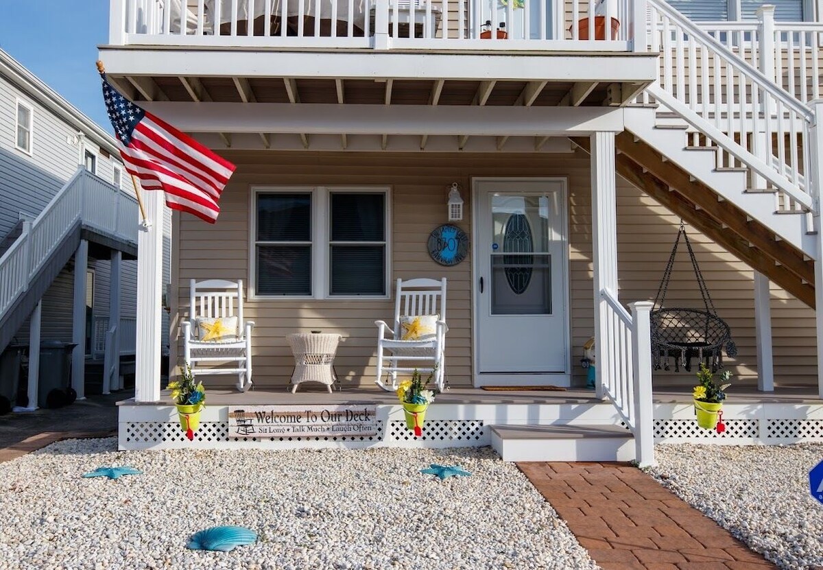 WELCOME TO THE FAMILY CREST! Follow us on Instagram @thefamilycrestatwildwoodnj Newly remodeled 3 bedroom, 2-bathroom first floor shore condo that sleeps 10 people comfortably. It’s fully furnished & stocked with everything you need for a home away from home private getaway! The house sits on the Bay and is walking distance to the famous Wildwood Beaches, and a very short drive to the Boardwalk & Cape May! This house features Central Air Conditioning, Ceiling Fans, Smart TVs with Cable in every room, & a large eat in kitchen with breakfast nook. The 1st Bedroom features a King size bed. The 2nd Bedroom features a Full size bed with Twin bunk, and a Twin bed. The 3rd Bedroom features a Queen size bed, 1 recliner, private bathroom and very large walk in closet. The living room features a sofa & loveseat, and a Twin size daybed with additional pull out Twin bed, and 75” TV. The Fully stocked kitchen features everything you need including small appliances, cookware and dinnerware for cooking and serving your family & friends. First cup of coffee is on us, just bring your food and beverages! There is a Microwave, Dishwasher, and Washer/ Dryer on site as well. A full list of items available for your use will be provided upon final payment for worry-free vacation prep! This corner property features an outdoor seating deck up front, and a BBQ, eating & firepit area on the side. The Beach is walking distance (less than 10 minutes) or a 2-minute drive as is Sunset Park. The Boardwalk is a less than 10-minute drive away & Cape May is a very short drive away also. Wheeled beach cart, Beach chairs, and Umbrellas are available for your use. Driveway is available and fits two cars for your parking convenience. There are TONS of restaurants, bars, and indoor/ outdoor entertainment for all ages nearby. Wildwood is a resort city on the New Jersey coast. It sits on a barrier island known for its wide, sandy beaches. The iconic Sightseer tram car runs along the long Wildwood Boardwalk, which is packed with eateries, shops, waterparks, amusements, and thrill rides. The boardwalk features 38 blocks of sensory overload with three amusement piers boasting more rides and attractions than Disneyland, three incredible water parks, arcades, games, retail shopping and more eateries than the Mall of America. It’s “America’s Boardwalk.” Rated as New Jersey’s ‘Best,’ the Wildwoods’ beaches are second to none. Featuring the widest, safest, FREE beaches on the East Coast. The beaches are guarded by expert Lifeguards from Memorial Day through Labor Day, 10 a.m. to 5:30 p.m. daily. Whether you plan to stay for a weekend, a week, or a month... Come make new memories on a stress-free getaway at The Family Crest! Our prices include all fees. No hidden fees.
