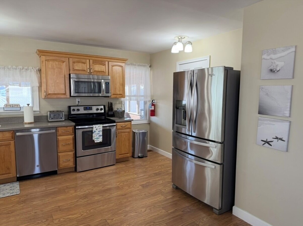 This spacious 4,000 sq ft. Beach Home offers 5 bedrooms and 3 full bathrooms. Allowing plenty of room for large or even multiple families. This home is less than 1/2 mile to the Delaware Bay Beaches, otherwise known as \ . Sea Breeze features a screened in patio, gas grill, huge walk-in closet, Spa bathroom, game room, and much more! This home is dog friendly with a fully fenced-in yard. - Only 7 miles to the Cape May Beaches. - Only 8 miles to the Wildwood Boardwalk. The space This house is just a short walk to the Delaware bay! There is a large driveway with plenty off street parking. We are pet friendly, allowing two house broken dogs. This home features 5 bedrooms and three full bathrooms. This home comfortably sleeps 15 people. The master bedroom features a queen bed, walk-in closet, and 43\ ,