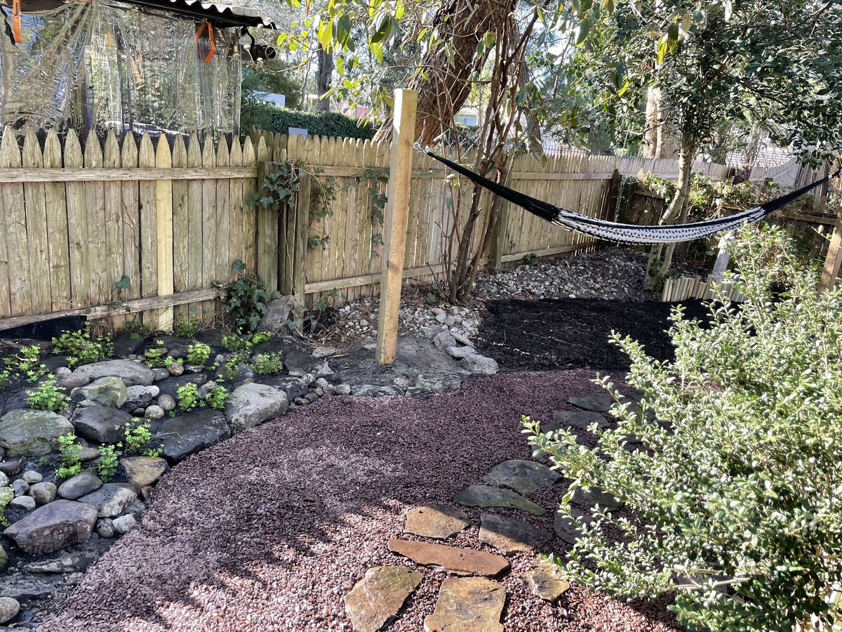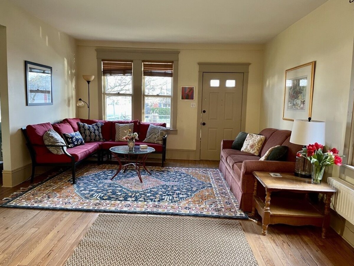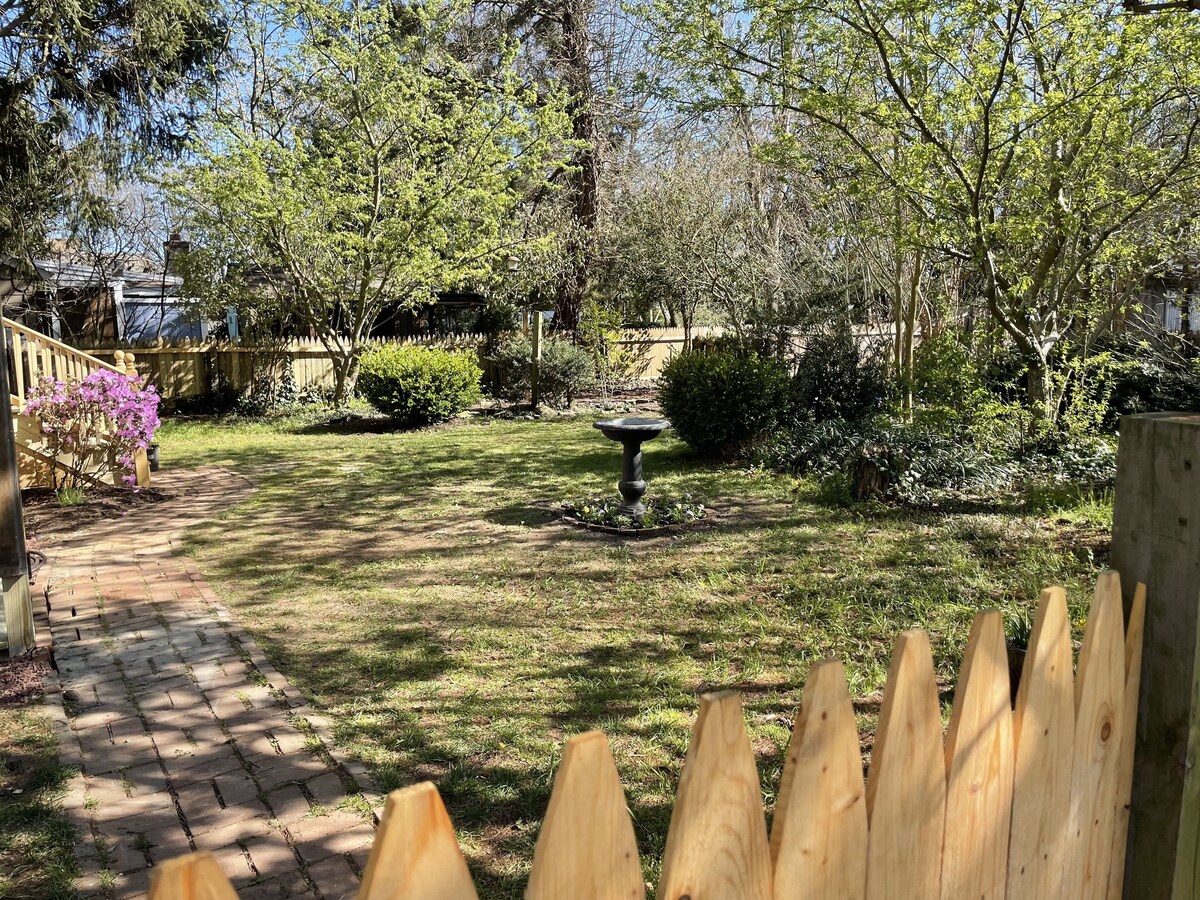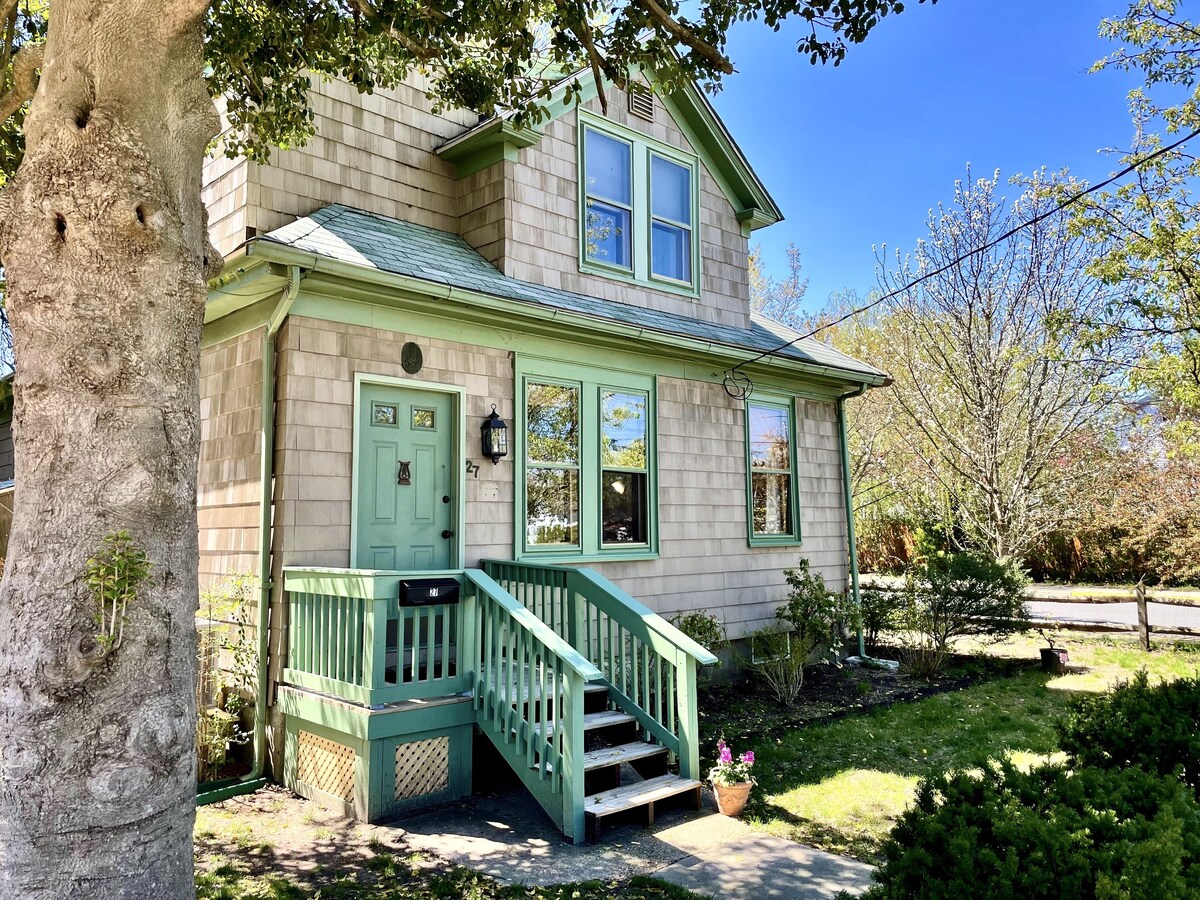 High ceilings, spacious and airy interior in this beautiful, serene two story victorian workman's cottage. This is an all season rental - perfect for comfortable accommodations no matter the weather! Newly listed as of March 2023, Feather Cottage is situated in a quiet neighborhood just 3 blocks from the downtown shops and eateries of Cape May Court House. A mere 15-20 minute drive from Stone Harbor, the Wildwoods and Cape May beaches, this house is filled with light and modern conveniences. There are 2 upstairs bedrooms (with additional twin daybed in den off the living room). Full bath with tub/shower + 1/2 bath. Hardwood floors and carpeting throughout. Well-equipped kitchen with gas range. Full-size washer and dryer. Gas grill and patio beside a peaceful fenced in garden with a truly comfortable hammock. Easy parking right there by the cottage. Walk to center of town coffee shops, restaurants, local brewery, gym, running track and library with summer event schedule for children. 5 min. to Cape May County Park Zoo and Davies Sports Park with 3 playgrounds, sports fields and skate park. This is a perfect centralized spot from which to embark on so many activities including birding, golfing, beach combing along both the Delaware by and ocean beaches, and more. Easy access to the Garden State Parkway for transit to each of the local shore points (Avalon, Stone Harbor, the Wildwoods and the Cape Mays). Cape May and its wonderful walking mall is 15 minute drive. Atlantic City is a half hour drive at most. This is the third holiday rental we have to offer to those travelers who wish to stay in a comfortable and beautiful historic home in Cape May County. We are pleased and delighted to share this precious gem with folks who seek a quiet and beautiful home-base and garden while visiting the jersey shore! Our prices include all fees. No hidden fees.