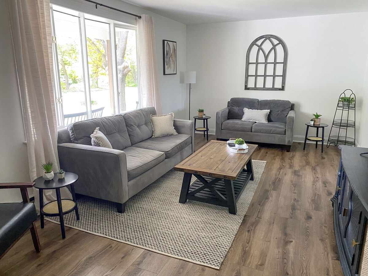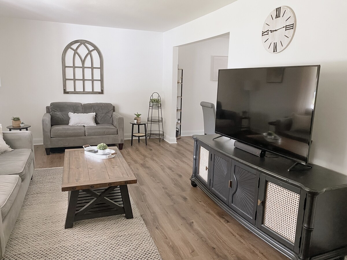 ON THE ISLAND IN CAPE MAY | WATER VIEWS Newly renovated home on the Canal in Cape May! Enjoy a quiet retreat-just a 10 minute drive to the beach. Plenty of space for the whole family! Home features a beautiful spacious backyard with a patio & fire pit over looking the Canal. Relax outside in the hammock swing & watch the boats go by or sit inside & enjoy the views from the screen room, Master bedroom, or the kitchen with its wall of windows. On chilly nights enjoy a wood-burning fire inside! The house is equipped with everything you need for your stay! (excluding linens) NO LINENS PROVIDED. BRING YOUR OWN SHEETS, TOWELS, AND BLANKETS. *1 King bed, 1 Queen bed, 3 Twin beds Pillows ARE provided. Beach chairs & an Umbrella ARE provided (in the shed). A cooler is provided. Downstairs: Enjoy the views from a fully-equipped kitchen. 2 Coffee machines (brew pot AND keurig) provided. The cozy living room has a flat screen TV, sofa & loveseat. The sitting room has a wood-burning fire place for you to enjoy on chilly nights (fire wood provided out back). Powder room on first floor. Upstairs: The master bedroom has a king size bed. Master bathroom attached (full bathroom with tile shower). The second bedroom has a queen size bed. The third bedroom has twin bunk beds and a twin bed for a total of 3 twin beds. 2nd full-size bathroom upstairs has a bathtub & shower combo. You will have access to a washer & dryer on the 2nd floor as well. There is a large patio out back with a fire pit. The home also has a screen room on the back of the house and a fully equipped grill for all your bbq needs! Property has central heating & cooling. Additional Amenities: Partially fenced in backyard for dogs Room darkening curtains in every bedroom High chair Pack n’ play available upon request Our prices include all fees. No hidden fees.