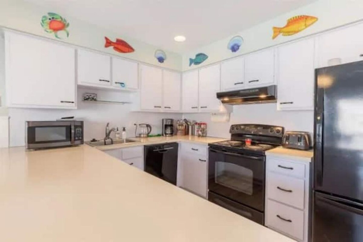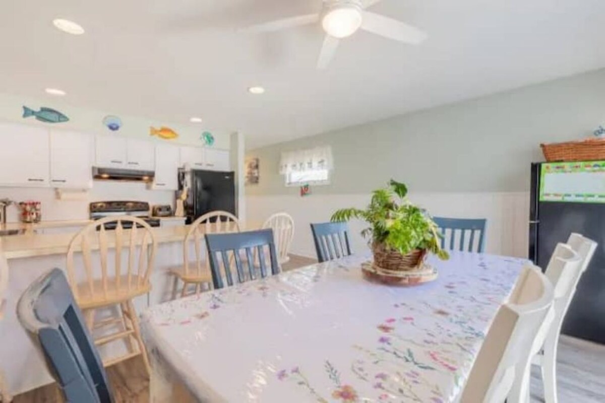 Highly sought-after section of Wildwood Crest. Half a block from the kayak launch at Sunset lake and 3 blocks to the beautiful Wildwood Crest Beaches. Approximately 1 mile from the Wildwood Boardwalk. Walking distance of countless playgrounds including Sunrise park, which has a bike path, splash pad, and playground area. Bring your kayak's paddle boards and enjoy the Sunset, while also taking advantage of the beach 3 blocks away. We also have brand a brand new rinse-off area at our beach access. **************************************************************************************** Please note rental week is Sunday to Sunday starting June 22, 2025********** ************************************************************************************** The space First FloorAs you walk into the front door you will be greeted by a large family/living room area, which consists of a sofa, two recliners, and a TV with a Roku. There is also a hutch that a few games are provided in. Next, you will pass by a closet and half bath before walking into a large fully stocked eat-in kitchen. The kitchen consists of 4 counter-height chairs along with a kitchen table to seat 6 people. A TV is also provided in the kitchen area. Out of the backyard sliding doors, there will be a table with 6 chairs along with a grill and access to a shed to store any beach gear you may have. Second Floor Our second floor consists of 3 bedrooms; a master bedroom with Queen size bed, a TV with ROKU, 2 closets, and an ensuite bathroom with a stand-up shower. The second bedroom consists of a full-size bed, TV W/Roku, and a closet. Our 3rd bedroom consists of 2 twin-sized bunk beds and 2 closets. There is also a full bathroom with a Shower/tub to service the 2 bedrooms. - High-speed internet (Xfinity) - Beach Box available for use (Lock is Provided) -Propane Grill along with Table and chairs in the backyard available for use - We have two parking spots in front of our townhouse available for your use. We share a driveway with our attached neighbor. Please be aware of where their side of the driveway is to not impede on their two parking spots. ( There's a lighthouse in the middle of the raised flower bed, which is also the center of the townhouse). Guest access Guests will have access to the entire home except for a closet in the half bath and a small pantry off of the kitchen. *Other things to note* We do not rent to tenants if they are under 25 unless they are with their family as we are a family rental place. ***We do NOT supply sheets or towels however we do supply a comforter, pillows and an initial supply of paper towels and toilet paper will be available. Laundry detergent, dishwasher pods, and garbage bags will also be available for use. We will accept pets on a case-by-case basis. Also, anyone who brings their pet must provide proof of rabies vaccination in accordance with New Jersey law Our prices include all fees. No hidden fees.