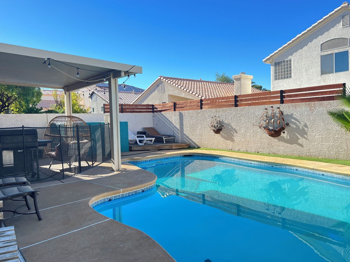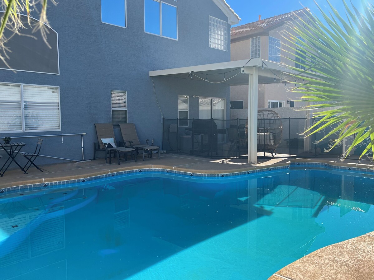 The Oasis is great for families or groups of coworkers and friends. It provides a swimming pool (optional pool heating fee $80 per day) , a warm fireplace and a firepit in the back for cold nights. Pool table, video games and card games for entertainment.. Centrally located. Close to many fine dining restaurants, great hiking trails with Red Rock nearby, short car ride to the Strip and Downtown Las Vegas.The Oasis is great for families or groups of coworkers and friends. It provides swimming pool for the Spring, Summer, and Fall season and warm fireplace during the winter. Pool table, video games and card games for entertainment. Plenty of televisions and cable tv. Centrally located. Close to many fine dining restaurants, great hiking trails with Red Rock nearby, short car ride to the Strip and Downtown Las Vegas. Tesla Model S car rental available with stay. Dogs ok in all spaces except the bedrooms! $50 pet fee. ($250 additional fee if pet stayed and urinated in rooms) Tesla Model S, Nissan, or Ford Mustang car rental available for additional fee. Our prices include all fees. No hidden fees.