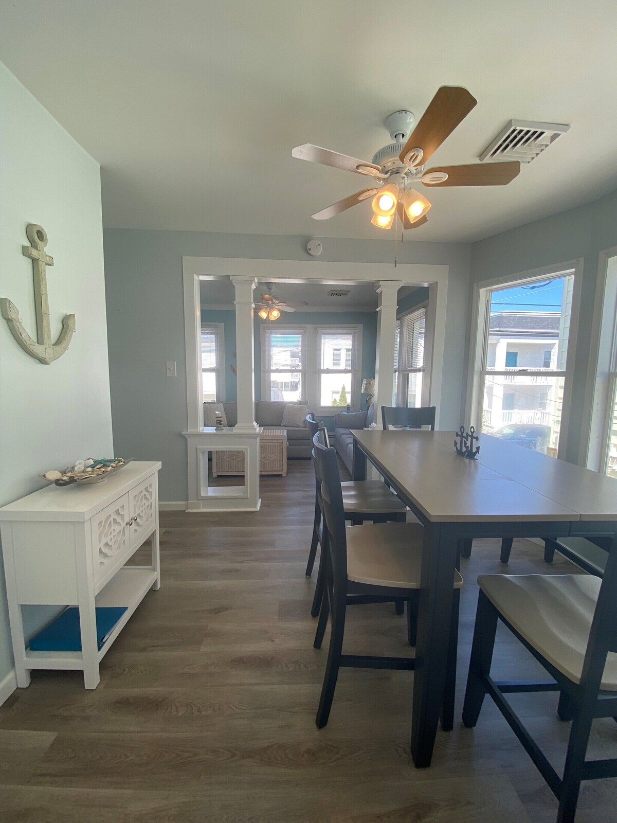 ONLY ONE BLOCK TO THE BEACH AND BOARDWALK!!! ONLY ONE BLOCK to Morey's Surfside Amusement Pier, Santucci's Pizza, Sam's Pizza, Curley's Fries, Gateway 26 Arcade and SO MUCH MORE!!! This is a FANTASTIC 2nd floor two bedroom condo VERY well appointed SO ADORABLE!!! Clean, Spacious, Comfortable and Chic this rental is central to everything Wildwood has to offer. Just steps from the beautiful beaches, exciting boardwalk, waterparks, bike trails, shops, restaurants, and entertainment. Adventure and relaxation awaits. With a Queen bed, Pyramid Bunk (Full Bed and Twin Bed) and a pull out Queen Sofa Bed you can sleep up to 7 people comfortably! You will find Televisions in every bedroom as well as the living room and all have cable and wifi included!!! Stackable washer and dryer in the kitchen makes doing your laundry SO CONVENIENT!!! Outdoor shower to wash away the sand, Full Bathroom even has a bathtub to clean up the little ones! Heat and central air. NO SMOKING. Comes with a parking pass for on the street municipal parking in the entire City of Wildwood!! You will love this CONDO'S CENTRAL LOCATION!!! Park your car and walk to everything!!