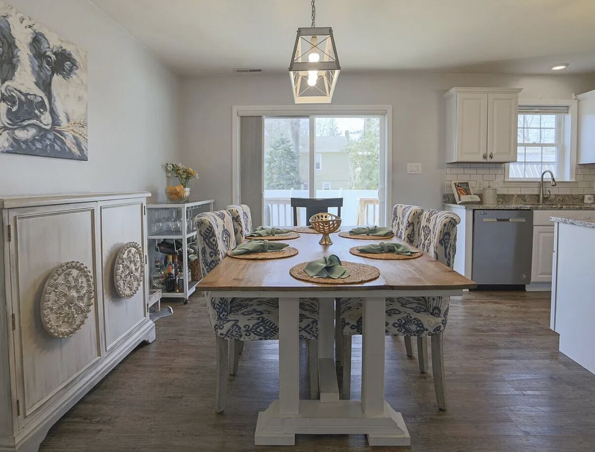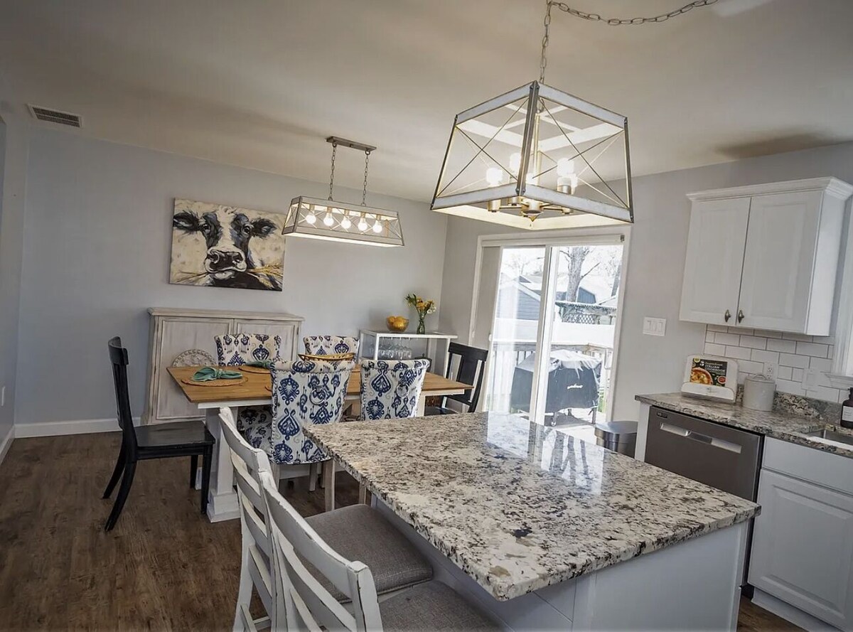 With a fully open concept, you and your family can gather in the living room, kitchen or dining room and all still be together in this recently constructed home. If you need a little quiet time you can exit the kitchen to a peaceful back deck and backyard porch where you can relax and have your morning coffee or afternoon cocktail while waiting for the others to get ready. You can enjoy a relaxing massaging hot tub experience or dip in the larger side of our Master Spa Swim Spa, open Year Round! This home is modern, sleek, CLEAN and Very spacious. We are Dog Friendly to well behaved and house broken dogs. Our prices include all fees. No hidden fees.