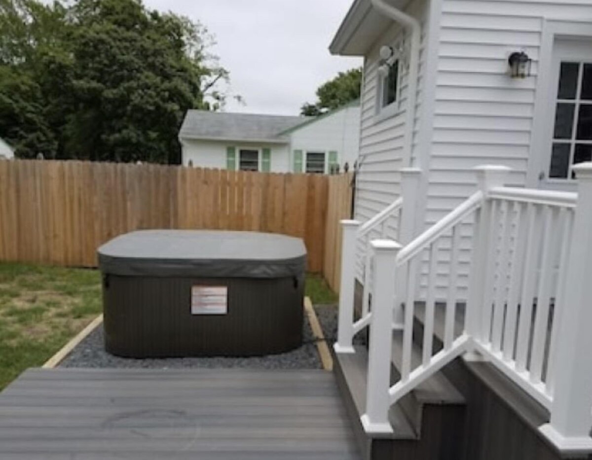2 Bedroom, HOT TUB - DOG FRIENDLY -LGE PRIV FENCED YARD, Outdoor shower, Grill, including two adult Bikes, a Kayak and an Inflatable Paddle Board An immaculate home completely renovated. From the moment you walk in you will love this home, where every convenience and comfort you need are thoughtfully provided. Home is professionally cleaned and disinfected between each guest’s stay. The house is located in a quiet part of the Villas a 15 min walk to the Delaware Bay Beach and a 15 min drive to historic Cape May or the Wildwoods beaches. Close enough to experience all the beaches, yet far enough away to relax and rejuvenate in a private oasis. The home has 2 bedrooms: Bedroom 1 has a queen bed, large closet and is equipped with a 40-inch flat screen television. Bedroom 2 has one twin bed and one bunk bed. Please note top bunk is only recommended for those 150 pounds and under. There is also a large closet. Both bedrooms have a bureau for your belongings. The living room has a leather queen sofa sleeper and a 40-inch flat screen television. The home has high speed internet / wifi. The Smart TVs are equipped with Roku. You can connect / logon to your account to your favorite Streaming Services. There is also a DVD player in the living room along with a library of DVD movies for your enjoyment. The updated kitchen is equipped with all that is needed, utensils, cups, plates, refrigerator / ice maker, gas range, dishwasher, seating for 4, blender, mixer, coffee pot, Keurig, plate and bowl settings for 6, pots, pans and slow cooker. We also have Lobster pots, shell crackers, butter warmers and plates. A grill to enjoy cookouts on the private deck in a fenced in private oasis. Steps from the beautiful deck take a dip into the 6-person hot tub open year-round. At night, view the stars from the privacy of your lit up hot tub. Imagine relaxing with family and friends. The backyard is approximately 50' x 100' fully enclosed in privacy fence. A great place for your dog to explore or play multiple yard games that we provide. We also have a hot and cold outdoor shower to rinse off before and after the beach, hot tub or just to cool off on a hot day. The beach in Villas is the Delaware bay beach less than a mile from our home (15 min walk, see our panorama pic known as the home of the BEST sunsets). The Villas beaches welcome dogs all year long, note in peak season there are restricted times. This beach is great for walking your dog, relaxing at the beach, fishing, or kayaking. The best beaches for swimming are in Cape May about 8 miles away (15 minutes). See all the historic Victorian charm that Cape May has to offer. Shop at the Washington Street Mall, eat at the many restaurants, walk or bike through the Victorian streets, stroll the beaches, kayak, and take in all the beauty of this remarkable town. The beaches at Wildwood are also about 8 miles (15 minutes) away. Beaches are always free in the Wildwoods. Visit the beaches, boardwalk, restaurants, Wildwood nightlife, shows, amusement piers, water parks and everything else the Wildwoods have to offer. Stone Harbor & N Wildwood areas are 25mins away, both are beautiful coastal communities with restaurants & shopping. The laundry room is equipped with a washer, dryer, iron and ironing board. KAYAK(1) & INFLATABLE PADDELBOARD (1) & two adult sized bikes for you and yours to use at no extra charge. Beach chairs, umbrellas and cooler are provided for your trips to the beach. Delaware Bay beach is free. Wildwood beaches are also free. Cape May beach has metered parking. **** LINENS ARE NOT PROVIDED ... TOWELS ARE NOT PROVIDED **** You will need to bring your own sheets face, hand, beach and bath towels with you. This a housekeeping common practice for vacation rentals in many coastal communities from Maine to NJ. Or you can have both towels and sheets delivered to you from locally owned company: https://linenladies.com/ Their website suggests a two week notice ahead of your arrival. We would love to share our home with you. ### There is a $100 nonrefundable dog fee for the 1st dog and $50 additional fee for second dog Our prices include all fees. No hidden fees.