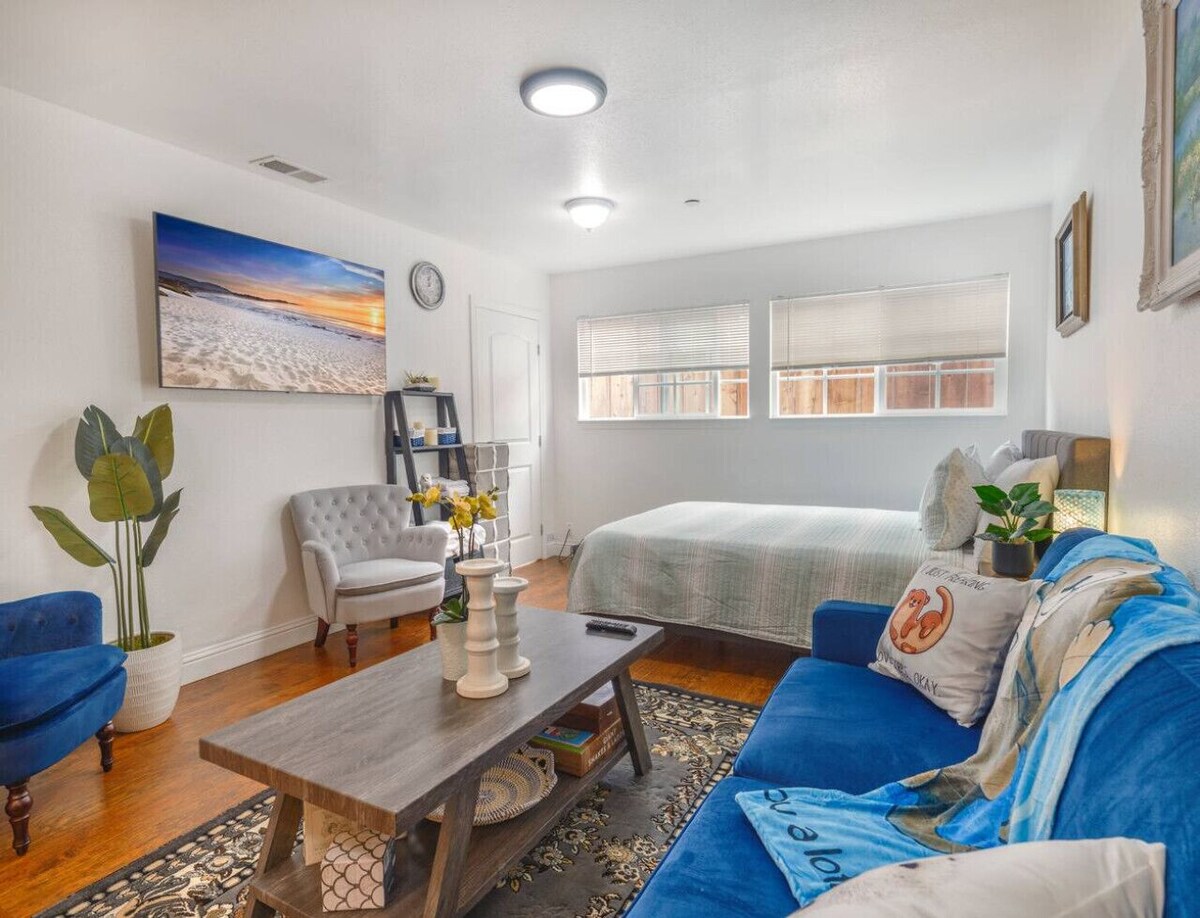 Join us to enjoy our wonderful & massive house. You will feel exactly at home and yet very private. The studio has it is own entrance via side gate and smart lock. We are within walking distance to Marina Beach! Less than a mile each way and makes for a perfect breakfast / coffee time. Or, simply grab a blanket and your favorite book! The Den is also very close Monterey downtown and the Monterey Bay Aquarium. Both about 10-15 minutes drive at most. Shopping & restaurants are minutes away! A cute and cozy studio with one Queen bed and a fold out couch that opens into another bed. Roughly 400 Square feet of sleeping room with a great TV for entertainment and late nights! Enjoy the cozy and quite studio with your friends and family while visiting beautiful Monterey! We have high speed WIFI available and free street parking. The entire Studio! Please note the studio is attached to the main house which split into two units. Noise could be expected when fully booked, we do have quite hours in place to ensure all guests have a great time! We are always available to help during your stay!! And could be reached via phone or a message on the app! Very quite location yet new the middle of town and highway 1. You will be in Monterey in minutes. Walkable to the beach and few large stores. Please include The number of pets in your reservation to ensure the fee is calculated. Also, please ensure your pet sleeps in a crate or enclosed bed. Our prices include all fees. No hidden fees.