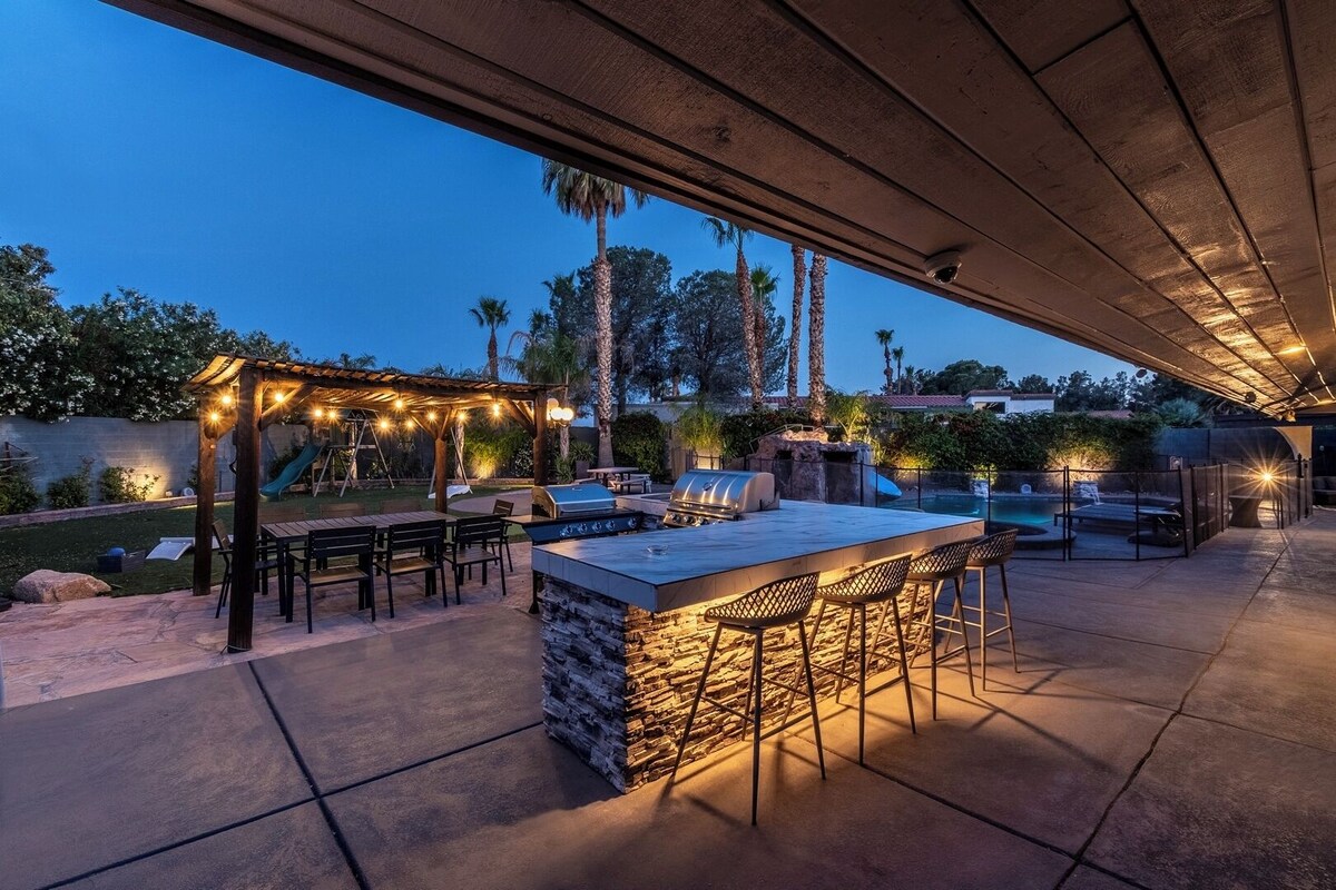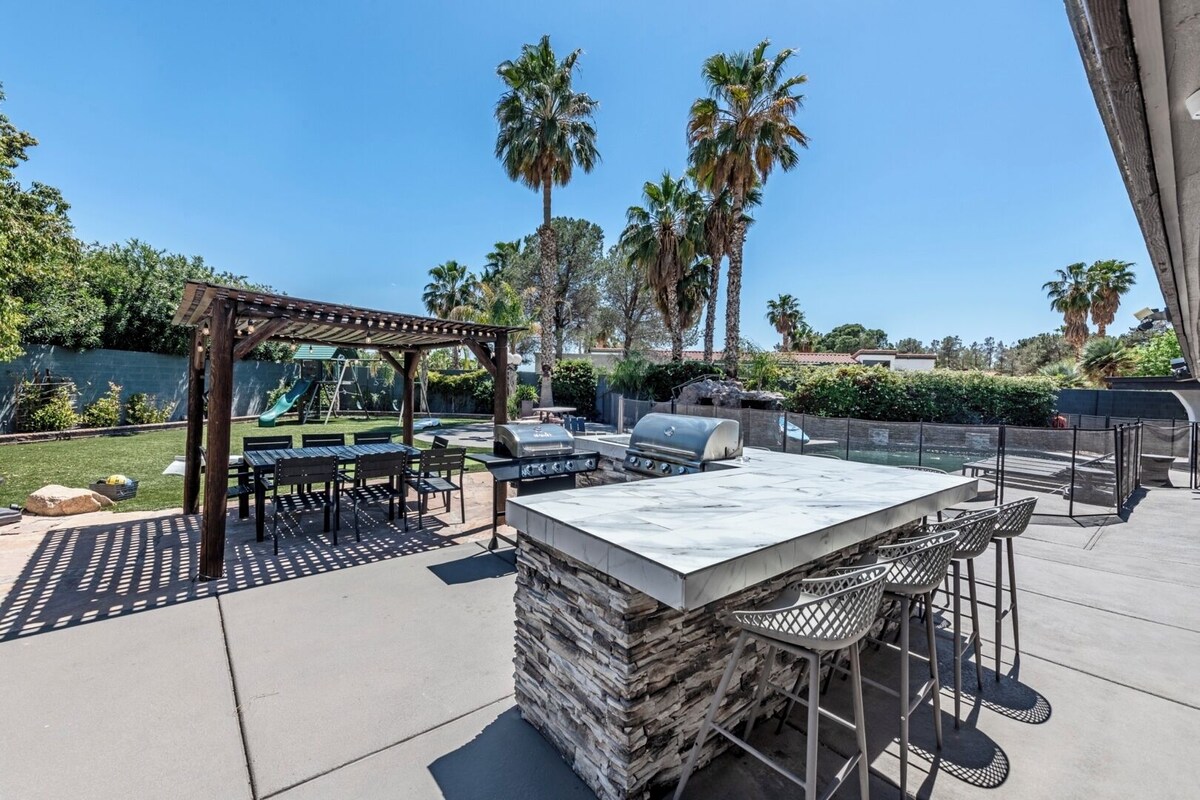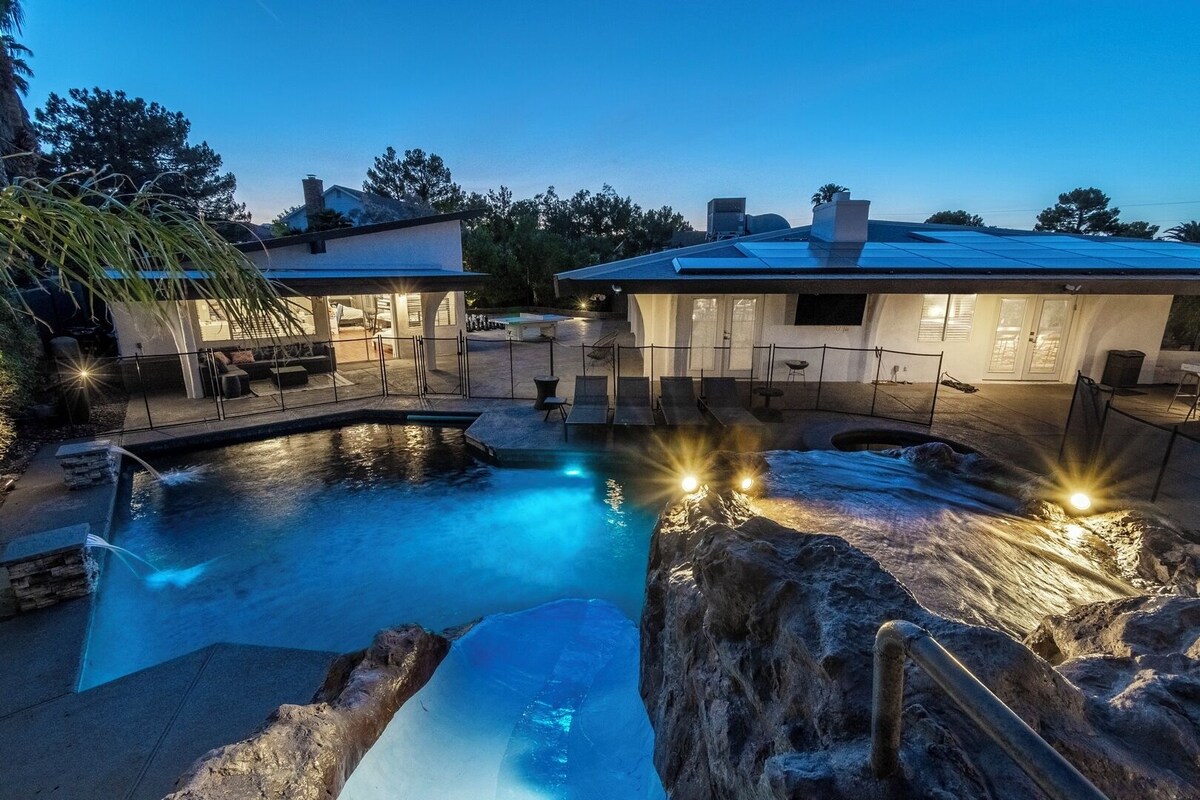 This highly rated custom built 3400 sq ft single level private home, with 5 star amenities, 5 bedrooms with two masters incl 900 sq ft guest house, and 4 bath, sleeps 13 comfortably in beds with total of 10 beds. All included. Conveniently located close to everything! Just minutes from the Las Vegas Strip ($15-20 Uber Ride), Summerlin, Red Rock Canyon and Casino, Tivoli Village, Boca Park, Golf Courses (Canyon Gate 6 min, Angel Park 8 min, TPC Summerlin 10 min), Convention Center and many more. Walking distance to Starbucks, restaurants, etc. Large privately gated half acre property offers great privacy in resort setting and a half basketball court. Private Pool, Hot tub, rock water fall and slide, putting green, basketball, shuffle board, play structure, outdoor chess set, poker table and private pickle ball, privately gated on circular driveway. This gorgeous 3500 Sq. ft. home features, Italian leather sofas with recliners, memory foam mattresses, and tile throughout. It also comes with double stacked laundry room with a large Samsung washer and dryer and complimentary laundry detergent. All towels, linens, iron are all included for your convenience. Master bedrooms are both very large and private, perfect for sharing amongst family or colleagues. Jacuzzi deep soaking baths, imported tile flooring and walk-in showers, chrome fixtures, and custom closets. Bonus - massage chair. This home was built and remodelled by owners who lived in the property for several years before moving out, and so all furnishings and upgrades are owner level higher end, not rental. You will appreciate the quality of furnishings and beds, and upgrades. We also just added a new pickle ball court (Jan 2024). Neighbourhood/location description: Custom Home Community with large half acre plus lots, very private, central to everything Las Vegas has to offer. Located in the heart of the city. ... close to everything.... hundreds of restaurants, parks and stores. 5 miles to Las Vegas Strip 5 miles Charleston Premium Outlets 4 miles to Springs Reserve 6 miles to Sands Expo and Las Vegas Convention Center 7.5 miles to Red Rock Canyon National Park 5 miles Tivoli Village Shopping and 6 miles Downtown Summerlin 10 miles to McCarran International Airport 17 miles Motor Speedway 30 miles Mount Charleston (Ski/Snowboard Winter, Beautiful Hikes and Trials Summer) GOLF COURSES TPC 4.6 miles Angel Park Golf Club 4.6 miles Badlands 4 miles RESTAURANTS, COFFEE SHOPS, & GROCERIES: - Starbucks - Oyshi sushi (best all you can eat gourmet sushi) - Hedary’s Mediterranean Restaurant - The Hush puppy - Hash Hash A Go Go - Panda Express - Capos Italian restaurant - Paymons Hukah lounge - Flemings Restaurant - Outback Restaurant - Apple Bees Restaurant - Boca Park Cheese Cake Factory - Girmaldis Pizza - Claim Jumper - PF Changs - Kona Grill at Boca Park GROCERIES: - Albertsons - Whole Foods - TARGET PARKS: Fire Fighters Memorial Park (Baseball/Softball field, Playgrounds, Picnic areas, Plenty of open space) Maintenance: - Pool is serviced weekly with licensed pool contractor ( chemicals balanced, cleaned). - Landscaping/Gardening serviced weekly with licensed landscaper - House Cleaning (done on every check out and a refresh prior to your check in) This is important to list here, as we take pride in ensuring our guests have a clean, comfortable and safe place. Our prices include all fees. No hidden fees.