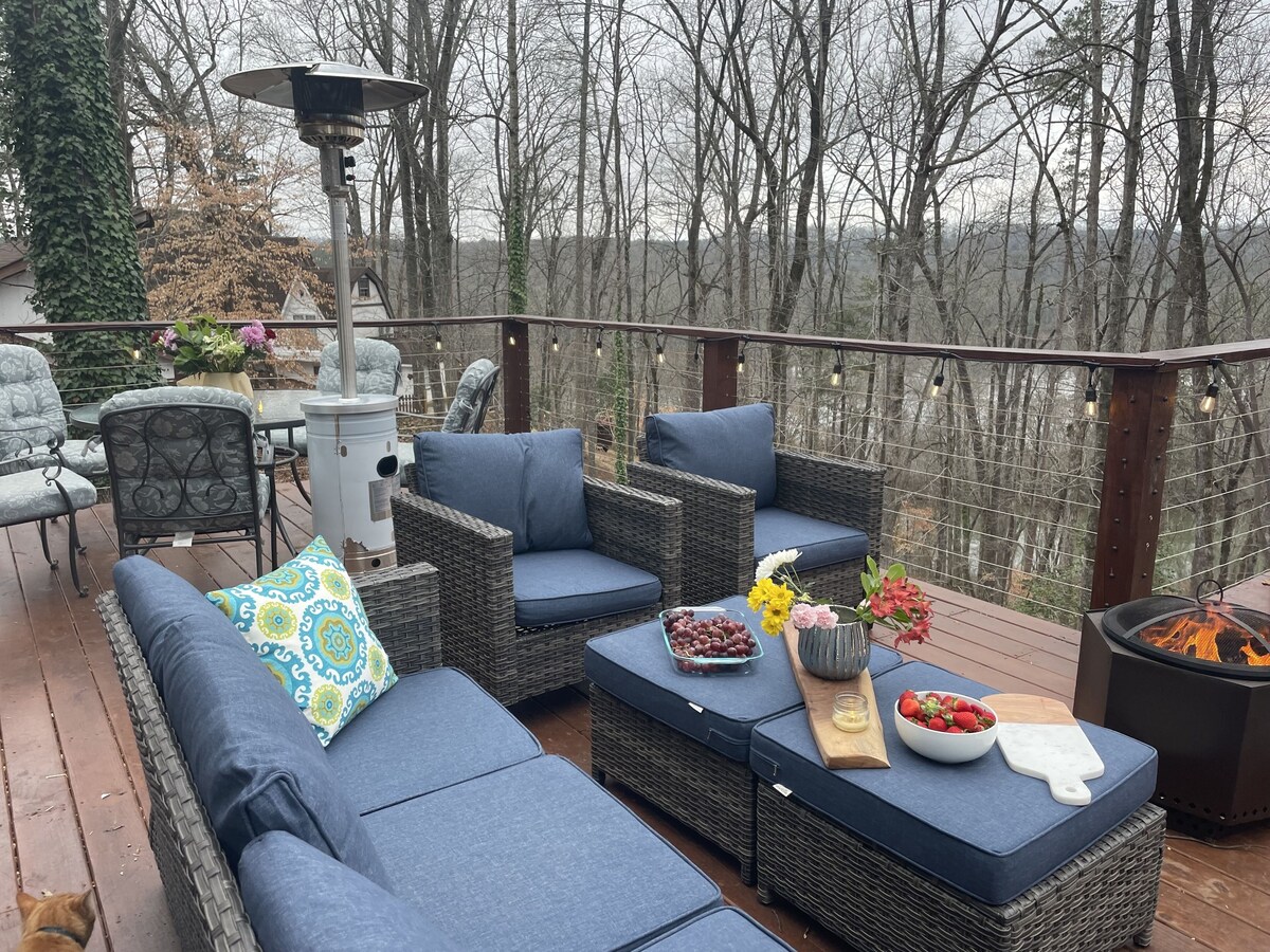 The Farmhouse at Saluda River Farms will not disappoint. It has a great entertaining space on the main floor. One bedroom upstairs and two down stairs plus a murphy bed in the living room. Relax, rejuvenate and feel refreshed when you stay in this rustic gem. Enjoying hiking down to the river, kayaks, meeting and greeting the goats, pigs and rabbits. There is also a big firepit for evening smores! Our prices include all fees. No hidden fees.