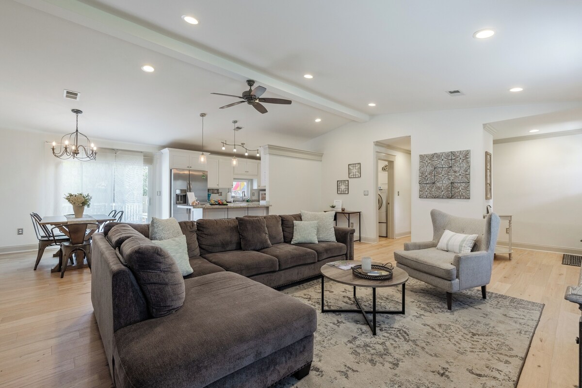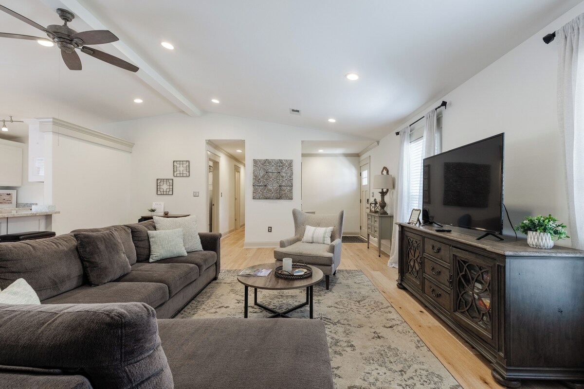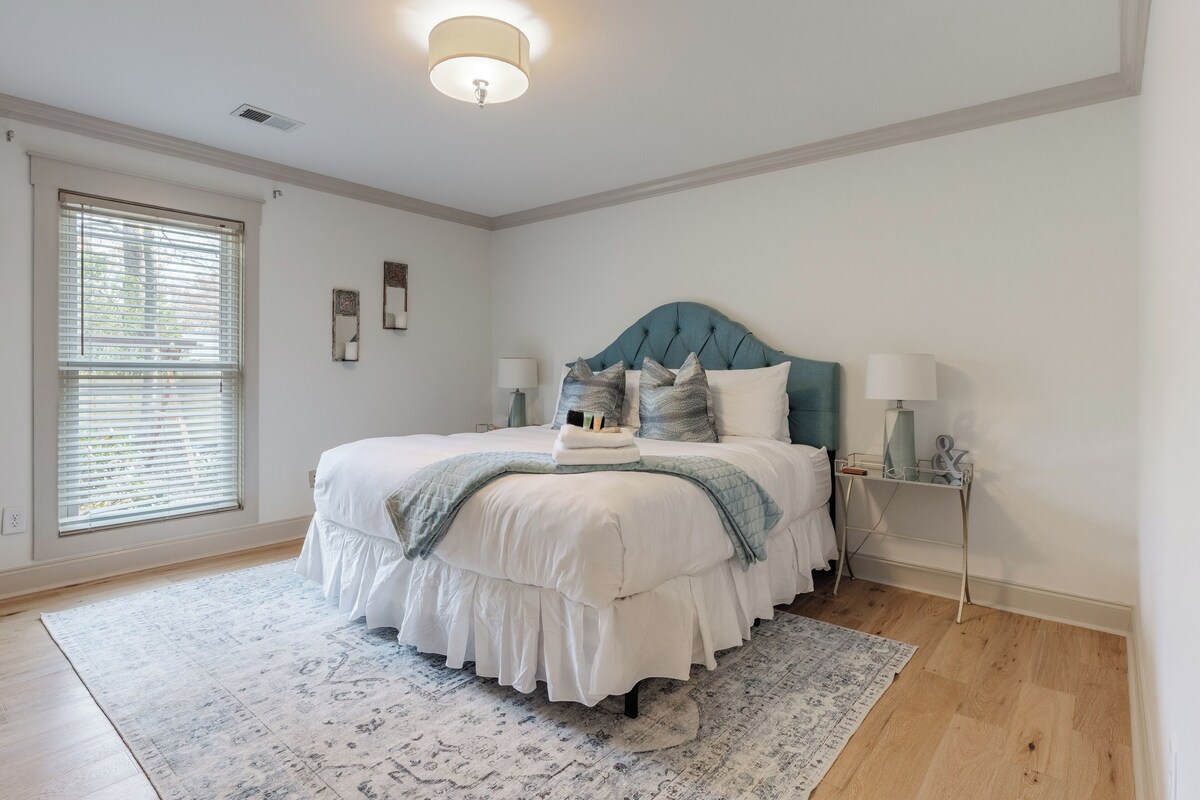 Visiting Greenville for business or pleasure? Look no further! The quiet comfort of this beautiful home, nestled in one of the best locations in Greenville, is everything you need. Situated between Woodruff Rd and Verdae Blvd, you'll find yourself just minutes away from the finest restaurants, shopping, and activities, all while enjoying a serene neighborhood adorned with 200-year-old trees. This recently and beautifully renovated home features three bedrooms and two bathrooms. The master bedroom boasts a luxurious king bed and an en-suite bathroom with stunning marble tile and granite countertops. The other two bedrooms, each with queen-size beds, share a fully tiled hall bathroom with granite countertops. The living room invites guests to relax and unwind, whether enjoying each other's company or stretching out in a spacious yet cozy space. You'll have access to a fully equipped kitchen with stainless steel appliances, a large pantry, and a modern washer and dryer. The backyard is a true highlight, fully enclosed with a large deck and patio furniture, perfect for enjoying beautiful summer days. It's also a paradise for kids, featuring a large Rainbow playset. Many guests have noted the backyard as one of the most inviting features of this property. Special Occasion Packages Are you coming to town for a special occasion? Whether it’s a honeymoon, bachelorette weekend, or family birthday, ask us about our occasional packages! We can arrange a sweet surprise for almost any occasion, making your stay even more special. Please Note: The fireplace is not in use, and we kindly ask all our guests to refrain from using it. Pet Policy & Fees: This home is pet-friendly. Cleaning & Safety: We prioritize professional cleaning and disinfection to ensure guest safety. Family-Friendly: Pack-n-plays, high chairs, and toys are available upon request (fees may apply). Early Check-In/Late Check-Out: Available for an additional fee (subject to availability). Cancellations: Please keep in mind that we will keep 3% of the payment you made to us to cover the credit card fees we had to pay at the time of booking. Our prices include all fees. No hidden fees.