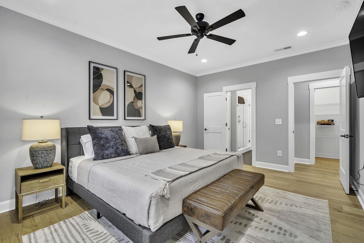 Step into upscale living at Hearthside @ Claremont, an elegant 4-bedroom, 3-bathroom home. This upscale Greenville rental sleeps 10, featuring a stylish interior, a screened porch for relaxation, and a fenced yard for pets, privacy, and security. This spot offers a home-away-from-home experience, ideal for both short and extended stays. Hearthside @ Claremont blends luxury and coziness, providing an upscale yet comfortable retreat for families and travelers seeking a home-like experience. Hearthside @ Claremont is a beautiful luxurious home located in the heart of Greenville, offering an exquisite blend of luxury and comfort. This spacious home features four (3 king beds, 2 full beds) elegantly designed bedrooms and three full bathrooms, comfortably accommodating up to eight guests, making it an ideal choice for family gatherings or group travels. Feel free to park in the 2-car garage, available for security for your vehicles, or the spacious driveway. As you enter the home, you are greeted by a warm and inviting living area, complete with plush seating and tasteful decor that creates a cozy atmosphere for relaxation and socializing and includes a smart TV for guest streaming services. The living room flows seamlessly into the dining area, where a large table stands ready for family meals or evening entertainment. Enjoy the secondary living space upstairs, which includes a second tv, couch, and cozy area for more intimate gatherings. One of the amenities offered at Hearthside @ Claremont is the designated workspace in the upstairs loft. This area is thoughtfully equipped with a comfortable desk and chair, providing a quiet corner for those needing to stay connected for work or study. High-speed internet ensures productivity is never hindered. Please note that there is a fold-out futon that could sleep an additional 2 people if needed (to accommodate a total of 12 guests). Please contact the host if you'll be utilizing this space to ensure sheets are provided. Each bedroom in the home is a serene retreat in itself, furnished with comfortable beds and high-quality linens, ensuring a restful night's sleep. The master bedroom is particularly luxurious, featuring a king-size bed and an en-suite bathroom for added privacy and convenience. The 2 hall bedrooms each include king beds, and the fourth bedroom includes 2 full sized beds. The bathrooms are modern and well-maintained, stocked with fresh towels and essential toiletries, adding to the comfort and ease of your stay. The heart of the home is undoubtedly the fully stocked kitchen, where guests can find everything needed to prepare and enjoy meals. From modern appliances to a comprehensive selection of cookware and utensils, the kitchen is a dream for both the experienced cook and the casual meal preparer. Whether it’s a quick breakfast or a full-fledged family dinner, the kitchen is equipped to handle it all. One of the highlights of Hearthside @ Claremont is the screened porch. This charming space offers a tranquil setting for morning coffees or evening conversations, all while enjoying the view of the surroundings without the bother of insects. The home also boasts a beautifully maintained fenced yard, providing a safe and private outdoor space for children or pets to play or for adults to unwind. In summary, Hearthside @ Claremont is more than just a place to stay; it's a luxurious and cozy home away from home, designed with attention to detail and equipped to ensure a memorable and comfortable experience for all who visit. Guests have access to the whole home, save 2 locked cleaning closets. We are available if needed but respect the privacy of our guests. We are located in an established residential neighborhood. We recommend bringing your own vehicle. The garage is available for guest use. There is a fold-out futon upstairs for an additional 2 guests. Our prices include all fees. No hidden fees.