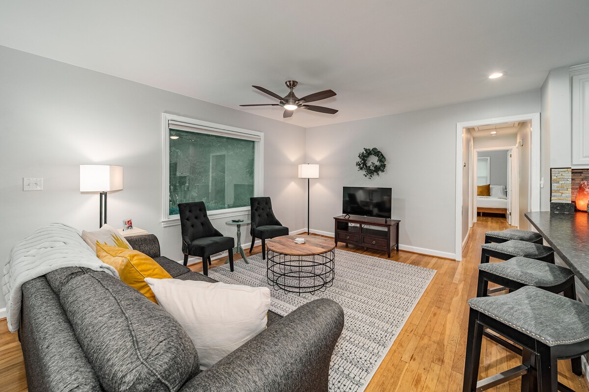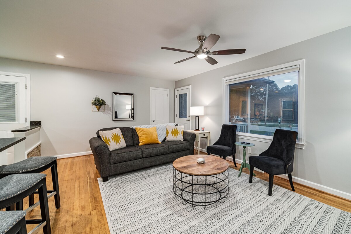 This beautiful brick ranch with a fenced-in yard is perfectly located for those seeking an extended stay in the upstate- just 5 minutes from Downtown, Bob Jones University, and Haywood Mall. De Ila's place is available for monthly rental. I-385 is just right around the corner, providing easy access to wherever you may need to go. Guests can expect to relax comfortably in our fully updated brick ranch, decorated with an upscale Farmhouse aesthetic. We can't wait to welcome you into our home! Welcome to De Ila's Place, where we've thought of everything, so you don't have to. De Ila's is a pet friendly (with a fee*) fully furnished home with utilities included. Our home is available for monthly stays (30 days-6 months). Guests will enjoy parking in our carport for easy entrance into the home. Once inside, you'll be greeted by a spacious, well-equipped kitchen with plenty of counter space to whip up a great meal. There is seating for 4 at our hand-made rustic Farmhouse table, and additional seating for 4 at the bar. The kitchen surveys a large living area with cozy couches and armchairs and our TV, which offers access to streaming only. The back of the house has 3 bedrooms and 2 bathrooms. The hall bath has a full combination tub/shower and bathroom. The first room features a Queen bed and closet, and the second features two full beds, with dresser and closet space. The Master suite occupies the back corner of the house. A large King bed is ready and waiting for rest after a long day, and a TV is mounted on the wall for logging into your favorite streaming services. The Master bathroom has its own ceiling heater for extra luxury when getting out of the shower, and the shower itself has a bench for use if needed. A large closet and utility room has been added off of the Master bedroom. This features a new front-loading washer and dryer and laundry sink. Best of all is the doggy door for letting your furry friend come and go from the fenced in yard as they please. *Pets are welcome to join you for your stay for a fee of $250 for the first pet and $100 for each additional pet. We can't wait to welcome you, your family, friends, and pets into our home! I am always a message away, but tend to allow my guests to have their own space to enjoy their trip. We are in a residential neighborhood right near I-385, which makes it easy to access Downtown and all that Greenville has to offer! While we are close to downtown, public transportation is still not quite there yet in Greenville. I recommend bringing your own car or renting one, For a night out on the town, an Uber is a great idea to get you safely to and from all the best bars and restaurants. No tampering with the router, smart lock, or ring doorbell. Smoking is permitted outside, provided all exterior doors are closed and buds are disposed of safely (i.e., not in a trash bag/paper cup/or other flammable container). Smoking indoors or leaving buds in the yard is prohibited and will incur a $250 fine. Our prices include all fees. No hidden fees.