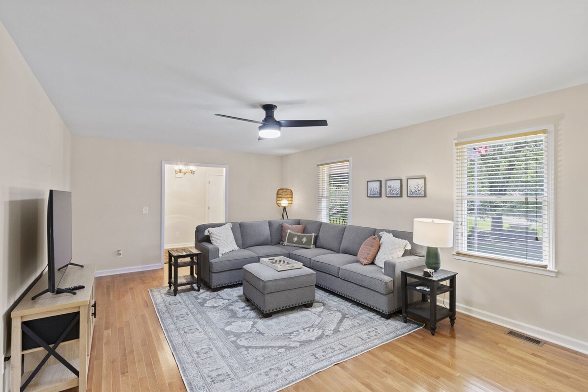 Welcome to Finch Landing, your peaceful and pet-friendly retreat available for monthly rental (30 days-6 months). At Finch Landing, you are: ~5 minutes from downtown, Bob Jones University, and Haywood Mall ~just around the corner from I-385 for easy access to wherever you need to go Come relax in the rocking chairs, walk on the drawbridge, and listen the beautiful birds at our feeders. Finch Landing is sure to be your home away from home as you explore all the upstate has to offer. Located by a babbling brook and surrounded by the peaceful sounds of nature, Finch Landing is sure to charm those retreating to the upstate for their extended stay (30 days-6 month rental). With utilities included and pets welcome ($250 fee; $100 per additional pet), we make it easy for guests to move in and feel at home at our creekside cottage. Upon arrival at the property, guests will be greeted with mature trees, curated landscaping, and our picturesque creek- which includes a bridge for your enjoyment. Guests may use one space in the 2-car garage. Guests may enter the home either through the front door, with its spacious front porch, or through the garage door. Inside our home, you may relax in our spacious living room and play board games, talk with friends and family, or enjoy a tv show or movie (tv is Roku-enabled for guest accounts). Our living room boasts a brand new, comfortable sectional and a gorgeous desk and chair for a convenient work space for guests. Off the living room, guests may enter the kitchen, which is equipped with all you need to prepare a meal. The kitchen has plenty of counter space, with a peninsula area for prepping food. The kitchen flows smoothly into the dining area, which boasts a unique charm with its brick fireplace (The fireplace is not for guest use at this time). Our table includes a bench and four chairs and seats six individuals. Off the dining area and entryway is the main hallway, connecting the two bedrooms, hall bathroom, and laundry on each end. Our laundry room includes a brand new washer and dryer for guest use and has ample storage with a large row of cabinets. The queen bedroom includes comfortable bedding and two large closets for guest use. There is a second desk and chair in this bedroom to provide more working space for your convenience, and a nightstand and lamp. This bedroom also has a television for guests to enjoy at the end of a long day (Roku enabled for guest accounts). Along this hallway is the first bathroom, which includes modern new finishes, a single vanity, a toilet, and a tub/shower combination. Across the hallway is the master bedroom, which includes its own en-suite bathroom with a tub/shower combination, toilet, and single vanity with a sleek vessel sink. Guests may enjoy the comfort of resting in our plush king sized bed. This room includes two nightstands with accompanying lamps, a large closet, and a spacious dresser for storage. Atop the dresser is a second television, which is also equipped with Roku for guests to log into their accounts. One of the most unique aspects of this home is the beautiful outdoor space. Mature trees line the back of the house alongside the patio area, where you can enjoy watching the birds at our numerous feeders. This truly is a woodland oasis for you, your family, and your friends to enjoy. In the backyard is a locked white storage building, which guests may also use for their items as needed. Pets are welcome to join you with a fee of $250 for the first pet and $100 for each additional pet. All utilities are included in the rental price. We can't wait to welcome you home to Finch Landing. Please note that one side of the garage is private for the owner's use. Our prices include all fees. No hidden fees.