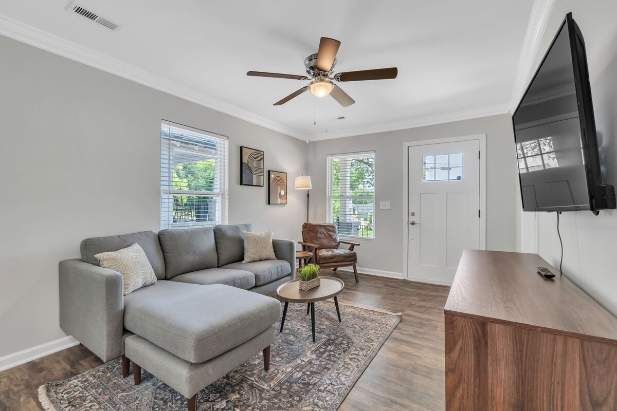 This rental is in the heart of Greenville's West End! This fully furnished 2 bedroom, 2 bathroom home offers the perfect blend of style, comfort, and convenience. We are pet-friendly with a $250 fee and are within walking distance to Greenville's Unity Park! With its prime location, you'll have easy access to trendy shops, gourmet restaurants, and vibrant nightlife. Don't miss the opportunity to experience Greenville's West End lifestyle in this stunning fully furnished rental! Welcome to your dream rental in West Greenville! This fully furnished, pet-friendly haven offers all the comforts you need for a comfortable and convenient living experience. Situated in the vibrant neighborhood of West Greenville, this 2-bedroom, 2-bathroom gem is perfect for those seeking a cozy and stylish place to call home. As you step inside, you'll be greeted by a warm and inviting atmosphere. The living space is thoughtfully furnished, featuring comfortable seating arrangements, tasteful decor, and windows that allow ample natural light to fill the room. Whether you're relaxing after a long day or entertaining friends, this space is designed to cater to your every need. Adjacent to the living area, you'll find a modern and well-equipped kitchen. Complete with stainless steel appliances, including a refrigerator, stove, microwave, and dishwasher, this kitchen is a chef's delight. The highlight of the kitchen is the spacious kitchen island, providing both extra counter space for meal preparation and a casual dining area for quick bites or entertaining guests. This rental boasts two generously sized bedrooms, both exuding comfort and tranquility. The master bedroom features an en-suite bathroom, ensuring privacy and convenience. The room is tastefully furnished with a comfortable bed, nightstands, and ample storage space for your belongings. The second bedroom is equally inviting, with a cozy ambiance and easy access to the second bathroom, making it perfect for guests or a roommate. One of the standout features of this rental is its pet-friendly policy. Your furry friends are more than welcome to join you in this delightful space. While a $250 pet fee is required, your pets will have plenty of room to roam and explore the fully fenced yard. This feature ensures their safety and allows for carefree playtime. For added convenience, a washer and dryer are provided in the unit. No need to worry about trips to the laundromat or shared laundry facilities—everything you need to keep your wardrobe fresh and clean is right at your fingertips. Located in the desirable West Greenville neighborhood, you'll have easy access to a wide array of amenities and attractions. Explore the local parks, take a stroll to nearby cafes and restaurants, or enjoy the vibrant arts and culture scene the area has to offer. With its prime location, you'll never be far from the action. We have close proximity to the city's vibrant energy but also a tranquil retreat to call home. Located within walking distance to Unity Park and the Swamp Rabbit Trail, you'll have easy access to outdoor recreational activities and the natural beauty that Greenville has to offer. Unity Park, a popular community gathering spot, is just a short stroll away. This expansive park boasts beautifully landscaped grounds, walking paths, playgrounds, and even a scenic pond. Whether you're looking to enjoy a picnic with friends, take a leisurely walk, or simply unwind in nature, Unity Park provides a serene and picturesque setting. For outdoor enthusiasts and fitness enthusiasts alike, the nearby Swamp Rabbit Trail is a true gem. This 22-mile paved trail runs along the scenic Reedy River, offering a perfect escape for walking, jogging, cycling, or rollerblading. Immerse yourself in the beauty of Greenville's natural surroundings as you explore this popular trail, which passes through charming neighborhoods, parks, and even local shops and restaurants. When you feel like venturing into downtown Greenville, you'll find yourself just a short distance away. Downtown is renowned for its vibrant atmosphere, offering an array of dining, shopping, and entertainment options. From award-winning restaurants and trendy boutiques to art galleries and theaters, downtown Greenville is a hub of activity that caters to all interests and tastes. With its convenient location just outside downtown and within walking distance to Unity Park and the Swamp Rabbit Trail, this rental in West Greenville allows you to enjoy the best of both worlds—seamlessly transitioning between the tranquility of nature and the excitement of the city. Guests have access to the entire home save one locked closet. I respect the privacy of my guests but am available if needed. We are in a residential area just outside downtown. Uber is available, but we recommend bringing your own vehicle. Smoking is permitted outside, provided all exterior doors are closed and buds are disposed of safely (i.e., not in a trash bag/paper cup/or other flammable container). Smoking indoors or leaving buds in the yard is prohibited and will incur a $250 fine. Our prices include all fees. No hidden fees.
