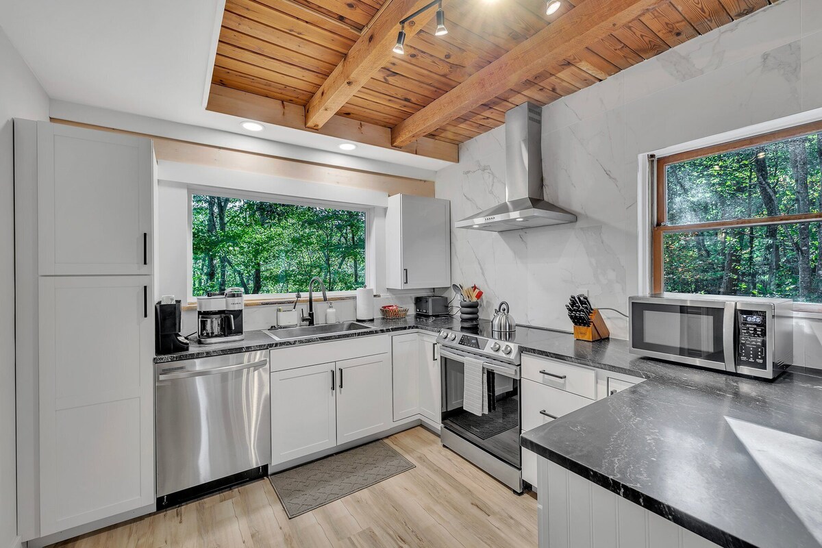 Nestled atop the majestic Paris Mountain, this pet-friendly 3 bedroom 2.5 bathroom luxurious retreat promises an unforgettable experience of serenity and natural splendor. Our home stands as an oasis for those seeking an escape from the ordinary. Strategically located, it offers close proximity to Downtown Greenville and the charming Travelers Rest, ensuring guests can effortlessly blend relaxation with exploration. Here, serenity isn’t just a promise; it’s an everyday experience. Welcome to Serenity Summit, the perfect blend of luxury and natural beauty. The residence boasts three beautifully appointed bedrooms adorned with premium linens to ensure your nights are as enchanting as your days. The sleeping arrangements include two sumptuous queen beds and a regal king, offering comfort that rivals the top luxury hotels. Complementing the sleeping quarters are 2.5 immaculately designed bathrooms, ensuring that every guest experiences a perfect blend of luxury and convenience. Located a mere stone's throw from Greenville's vibrant city life, our home offers panoramic mountain and woodland surroundings that captivate and inspire. While ensconced in nature's embrace, you're never too far from the pulsating heart of the city and its myriad attractions . The interiors, an impeccable marriage of contemporary flair and homely warmth, cater to the most discerning tastes. Whether you're nestled on plush seating in one of the living areas (equipped with smart televisions for your streaming services) or conjuring up a feast in our state-of-the-art kitchen, opulence greets you at every turn. Venturing outdoors, a welcoming fire pit calls out for evenings filled with laughter, stories, and stargazing. Here, against the backdrop of the vast sky, memories are crafted and cherished. Our expansive porches, designed for both introspective dawn musings and peaceful dusk reflections, serve as stages for the day's many acts. With a cup of coffee or a glass of wine, let nature's chorus serenade you. We also offer a charcoal grill and outdoor eating area for your enjoyment. For those who blend work and leisure, a dedicated workspace awaits, ensuring that productivity flows seamlessly amidst the tranquility. And, understanding that family often includes furry members, we welcome pets to partake in this mountain paradise, with a one time pet fee. In essence, this mountain haven isn't merely a place to stay; it's an experience, a luxury, and a cherished memory in the making. Dive into a world where chic sophistication marries unspoiled nature. Your mountain escape awaits. Guests have access to the entire home, save one locked cleaning closet. We respect the privacy of our guests but are available if needed. We are in a residential area on Paris Mtn. The houses are very spaced apart and private. The roads are in good condition, but we recommend AWD in inclement weather. We do recommend bringing your own vehicle. We are at the top of the mountain. The roads are in good condition; however, during the winter, rent during snow at your own risk. We recommend AWD to access in snow or ice. Smoking is permitted outside, provided all exterior doors are closed and buds are disposed of safely (i.e., not in a trash bag/paper cup/or other flammable container). Smoking indoors or leaving buds in the yard is prohibited and will incur a $250 fine. No tampering with the router, smart lock, or ring doorbell. Our prices include all fees. No hidden fees.