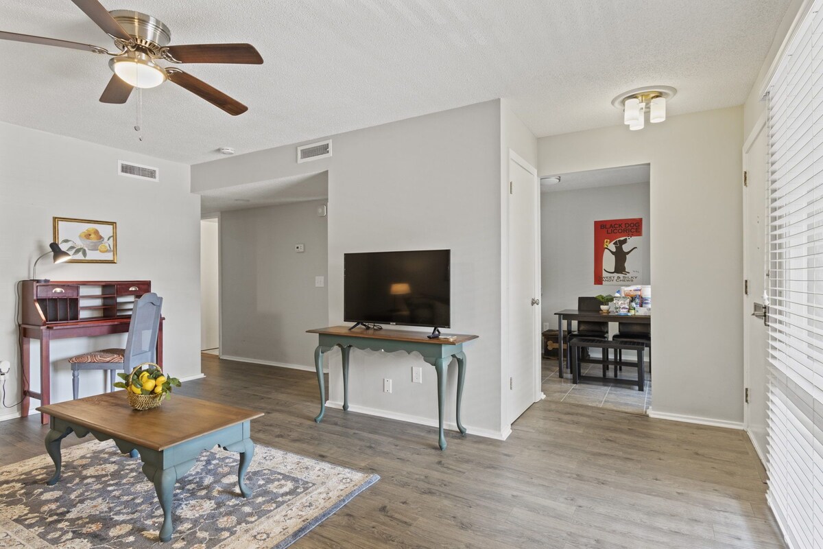 Welcome to The Burrow @ Earle Street! Our 2 bedroom, 1 bathroom condo is the perfect downtown hub, located 1.5 miles from Falls Park and 1 mile from N Main Street. It is pet friendly with a fee and available for monthly rental (30 days-6 months) with all utilities included. At the Burrow, you are just: 1.5 miles from the Peace Center 1.3 miles from Bon Secours Wellness Arena With cozy beds, beautiful windows, a fully equipped kitchen, and welcoming living area, we know you'll enjoy your stay! Welcome to the Burrow @ Earle Street, your home away from home conveniently located near the sights of downtown GVL. Pets are welcome to join you for your stay for a fee of $250 for the first pet and $100 for each additional pet. The Burrow is available for longer rentals (30 days- 6 months). Guests may park on the street along the front of the building or in the parking lot (free parking) located behind the building. From there, you will walk up a flight of stairs to your second-story condo, which is surrounded by picturesque mature trees and foliage. Upon entering the condo, you are met with natural light from the large windows throughout the space. To your left, you enter the cozy living room, equipped with a television (no cable/ Roku enabled for use with guests' accounts). The living room boasts a comfortable couch, accent chair, and eclectic artwork where you can sit and enjoy conversation with loved ones or kick back and relax for a movie night. Also included is a wooden desk and chair where guests may work, study, or catch up on emails. Off the living room, you will find our fully stocked kitchen and eating area, with table and chairs for four. Everything needed to cook a meal is easily accessible and at your fingertips. Our kitchen has stainless steel appliances and a moveable island with butcherblock countertop for additional preparation space. Down the hallway is the updated bathroom, which includes a beautiful tile shower with sliding glass door, single vanity, and toilet. Upon entering the king bedroom, guests will enjoy the abundance of natural light and beauty from the large window and the local artwork. This bedroom includes nightstands, ample closet space, and a large dresser. Atop the dresser is a television (Roku-enabled) where you can relax and watch a movie or show in the evenings. Across from this bedroom, you will find the queen bedroom, which includes 1 nightstand and a large closet. Guests can also relax and enjoy the peaceful view of nature out the window. Come retreat and explore all the upstate has to offer at your downtown hub at The Burrow @ Earle Street. We do have a maintenance team if assistance is needed. We are only a phone call or text away! This complex is located in downtown and close to all that Greenville has to offer! We recommend bringing a car to explore GVL as public transportation is not quite up to snuff. Lease Terms: $275 cleaning fee $250 pet fee for first pet and $100 extra per additional pet (requested after booking) $750 refundable security deposit pending inspection after checkout Smoking indoors is prohibited and will incur a $250 fine. Our prices include all fees. No hidden fees.