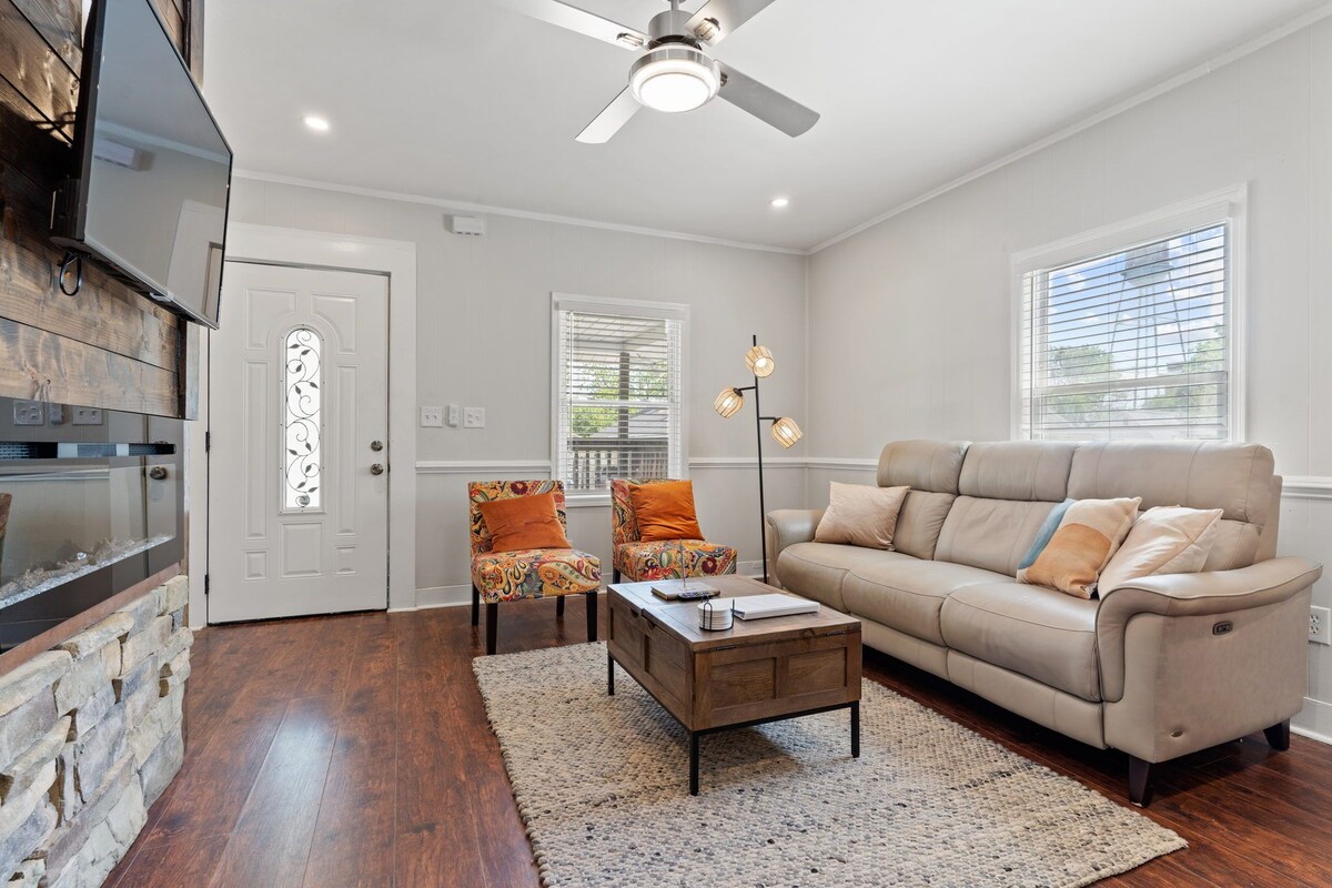 Welcome to the Village Inn, a family-friendly and pet-friendly vacation rental within walking distance of the Village of West Greenville, Greenville's Arts District! Our historic home is equipped with 5 bedrooms, 3 bathrooms, and has 9 beds for you and your guests! The Village of West Greenville boasts a small downtown area including: -The Village Grind Coffee Shop -Revival Butchery -The Anchorage -Rise Bakery -Boutiques + More! We are also located just 2 miles from Main Street in Downtown. Welcome to the Village Inn! We can't wait to share this historic home with you. As said above, we are right near the Village of West Greenville, and are located on a fenced-in corner lot on the main road. Due to this, you can expect some traffic noise, as well as foot traffic in the neighborhood. Please take a moment to check out our floor plan as well as the description below so that you can best plan for your stay! When you arrive at our home, you will find parking for at least 3 cars on the gravel driveway to the left. Additional street parking is available as well. Once inside, you will find our main living room, which features: -A couch and 2 armchairs -Electric fireplace (with customizable heating output!) -Smart TV, ready for you to log in to your streaming services (no cable) -Coffee Table -Bar seating for 4 The living room leads into our open kitchen, which contains all you will need to whip up a great meal, including: -Place settings and silverware for 16 -Baking supplies -Pots, pans, and skillets -Keurig -Toaster -Glasses and wine glasses -Spices + Oil Our kitchen also features a dining nook with a \ table and bench, seating 4-6. Off of the kitchen, you will find the Laundry Room and closest full bathroom. This leads down into the Family Room, where you will find: -A full sectional sofa + ottoman -Large Smart TV -High top table for 4 under our Neon Light -Dog bed, if needed -Games for you and your guests to enjoy :) We also have a large, freshly sodded fenced in backyard with patio seating for 5 :) In addition to these gathering areas, we have 5 bedrooms, which are detailed below. ~The First Floor~ The first floor contains 3 bedrooms The Double Queen Room This room is located right off of the main living room and contains: -2 Queen Beds -Nightstand with Reading Lamps -Full size dresser w/ mirror The King Room This room is attached to the Queen room (you must walk through it to get to this room) and has the en suite bathroom at the end of it (those in the Queen room would go through the King room to get to this bathroom). This room contains: -1 King Bed -2 Nightstands and Reading Lamps The en suite bathroom features a closet and single vanity sink, and a separate room for the traditional tub/shower combo and toilet. The Double Full Room On the other end of the home, off of the family room, is our Double Full room which contains: -2 Full Beds -Nightstand and reading light -Cube storage with fabric drawers This room would use the full bathroom located off of the nearby laundry room. This bathroom features a single vanity, toilet, and standard tub/shower combination ~The Second Floor~ Off of the kitchen is a door that leads to the upstairs-- please note these stairs are steep, and taller than normal. The two rooms at the top share a brand-new bathroom in between, containing a single vanity, toilet, and tub-shower combination. To the right is the King Room, serving as second Master. It contains: -King Bed -2 Nightstands and Reading Lamps -Tall Dresser To the left is our Kid's Room, which contains: -3 Twin daybeds -Play rug and kid friendly decor -Floor lamp -2 floor cushions -Cubbies with toys ranging from stuffed animals to hot wheels to building blocks -Baby gate for safety. A pack n play is also available for your use :) Pets are welcome to join us with a one-time pet fee, which is charged during or after booking. As you can see, we've thought of everything, so you don't have to. Grab a family or two, your close friends, or whoever you wish and come enjoy all that The Village Inn has to offer! We can't wait to have you! Guest have full access to the home with the exception of a locked closet and cabinets for our supplies No tampering with wifi router, ring camera, or any smart lock systems. Smoking is permitted outside, provided all exterior doors are closed and buds are disposed of safely (i.e., not in a trash bag/paper cup/or other flammable container). Smoking indoors or leaving buds in the yard is prohibited and will incur a $250 fine. Our prices include all fees. No hidden fees.