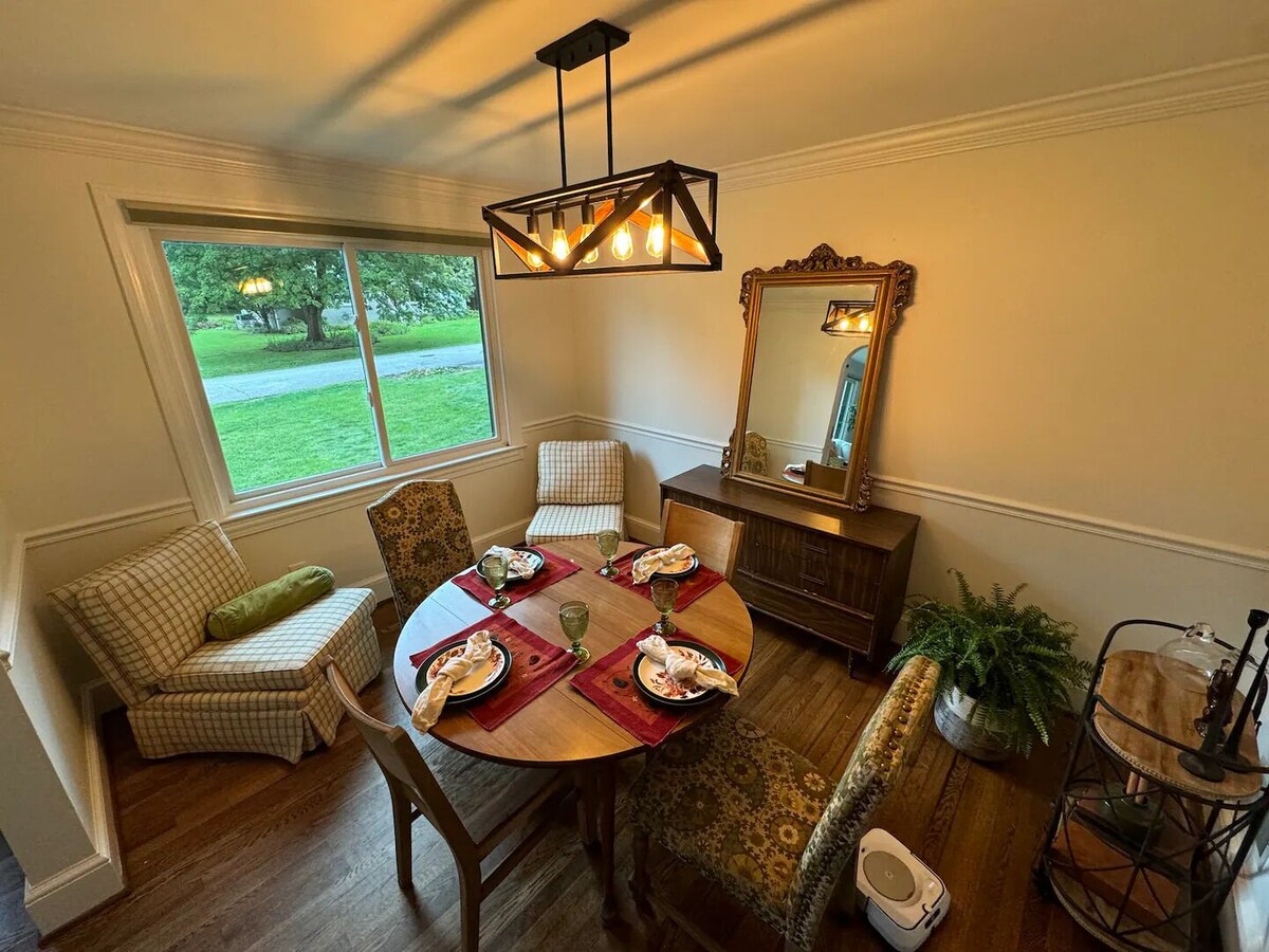 Welcome to our enchanting house in Greenville. This adorable property boasts 5 bedrooms, including a king bed, 2 full beds, a crib, a twin bed, and a queen bed. The living room offers extra sleeping space with 2 futons. The master bath features a large jetted tub, Multi-head shower, Heated tile floors and double vanity.
