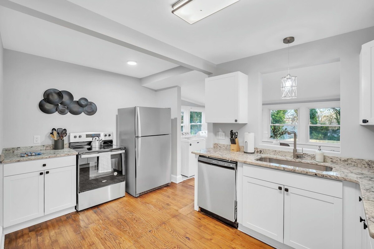 Welcome to Fireside Nook! Nestled in the heart of Greenville, Fireside Nook is a beautifully furnished 2-bedroom, 2-bathroom home that offers the perfect blend of comfort, style, and convenience. This delightful retreat is ideal for small families, couples, or business travelers looking for a serene stay close to the vibrant city life. Key Features: Master Bedroom: Drift off to sleep in a luxurious king-sized bed while enjoying your favorite shows on the smart TV. Second Bedroom: This cozy room features a comfortable twin bed and a dedicated workspace, perfect for remote work or study. Spacious & Chic Living Room: Relax in style in the living room, boasting modern decor and another smart TV for your entertainment needs. Fully Stocked Kitchen: Whether you're whipping up a quick breakfast or a gourmet meal, our kitchen has everything you need, complete with modern appliances and ample counter space. Sunlit Patio & Fenced Yard: Step outside to enjoy the beautiful fenced yard and patio area – a serene spot for morning coffee or evening relaxation. Location Perks: Just 10 minutes or less from Downtown Greenville, our location puts you close to the best dining, shopping, and entertainment the city has to offer. Enjoy easy access to local amenities, including grocery stores, cafes, and parks, making your stay both convenient and enjoyable. Fireside Nook isn't just a place to stay; it's a destination in itself. Book your getaway today and experience the best of Greenville in comfort and style! Guests have access to the entire home- save one locked cleaning closet. I respect the privacy of my guests but am available if needed. We are in Cherrydale, a residential area in Greenville. We recommend bringing your own vehicle, but Uber is available if needed. Our prices include all fees. No hidden fees.