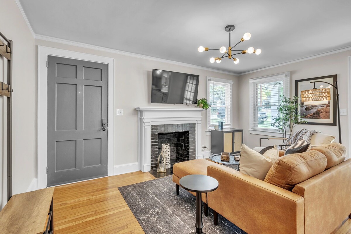 Experience home in Greenville at Clover Cottage- a pet-friendly rental perfect for stays ranging from 30 days to 6 months. This stylish 2BR/1BA gem boasts a king bed, queen bed, and designated workspace. The kitchen, complete with an island and eating area, invites you to dine in comfort. Unwind by the fireplace or step outside to the fenced yard, where a patio and fire pit await you. This retreat is not just a place to stay; it's a place to live and create memories in the heart of Greenville. Welcome to your serene retreat in the heart of Greenville's Pleasant Valley! This charming 2-bedroom, 1-bathroom house combines modern amenities with a touch of homeliness, offering a perfect backdrop for both short and extended stays. We are pet-friendly with a $250 one-time fee, which is assessed after booking. Upon entering, you're greeted by a spacious living room, complete with a cozy fireplace and plush seating, ideal for relaxing evenings or entertaining guests. The adjacent, fully stocked kitchen is a foodie's dream, featuring modern appliances, an island for meal prep, and an eating area for intimate dinners. Just off the kitchen is a complimentary washer and dryer for your convenience. The bedrooms promise restful nights, with a luxurious king bed in the master bedroom and a comfortable queen bed in the second room. Both bedrooms boast a smart TV, providing endless entertainment options. The designated workspace in the second bedroom and high-speed internet cater to the needs of remote workers, ensuring productivity is always an option. Step outside to the fenced yard, where a patio and fire pit await, perfect for outdoor gatherings or a tranquil evening under the stars. This is the perfect space for children and pets alike. Additional secure parking is available on the large concrete pad at the back of the house. With utilities and lawn care included, every aspect of your stay is hassle-free. Located just a short drive from downtown Greenville, you're never far from the city's vibrant array of dining, shopping, and entertainment offerings. Discover the perfect blend of convenience, comfort, and local charm at this delightful Greenville home Guests have access to the entire space. I respect the privacy of my guests but am available if needed. Clover Cottage is in the desirable Pleasant Valley area of Greenville. Uber is available but we do recommend bringing your own transportation. Our prices include all fees. No hidden fees.
