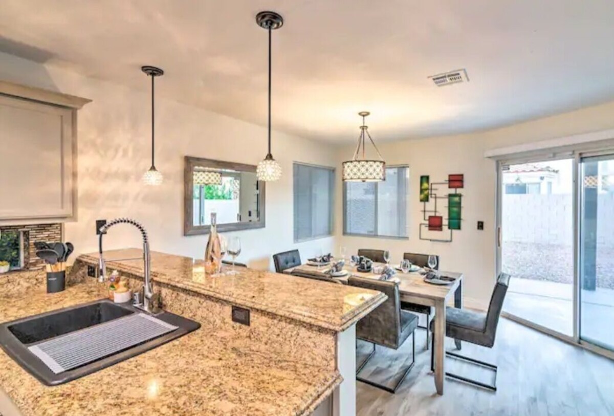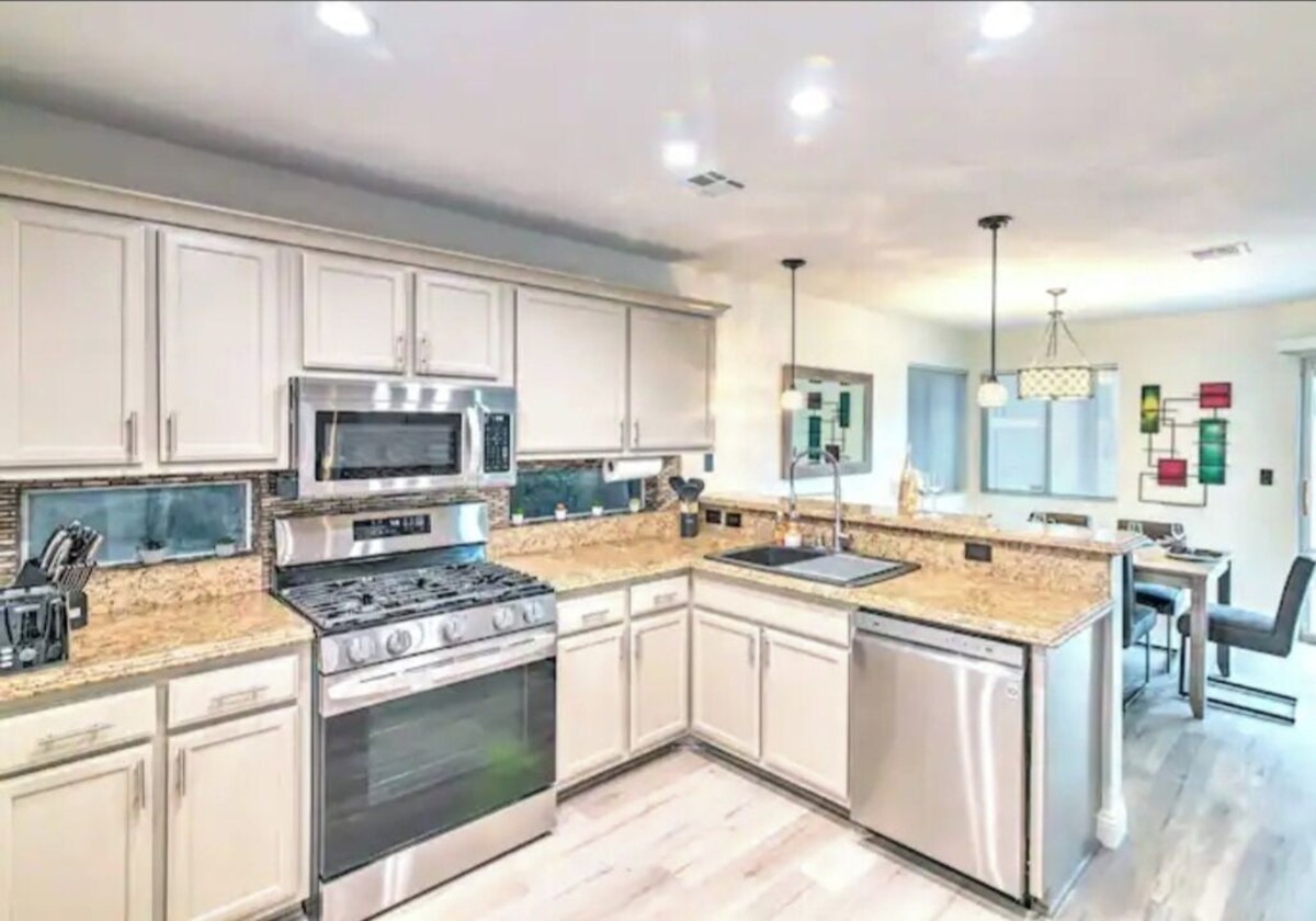 Let the comfort of this conviniently located 3bedroom,2.5bathroom vacation rental offer you a retreat to remember! Enjoy a cup of coffee bar in the morning, watch a movie in one of the smart TVs or adventure out to tour Las Vegas Strip. Relax in the tub while watching your favorite show on Nextflix and contemplating the fireplace. All amenities needed included. Grill a meal for your crew to enjoy together while recounting new memories made. Vacation awaits! (Minimum stay 31 days) THE PROPERTY 31-Night Min | Free WiFi | 1,567 Sq Ft Bedroom 1: King Bed | Bedroom 2: Full Bed | Bedroom 3: 2 Twin Beds | Living Room: Full Sleeper Sofa | Additional Sleeping: Pack ‘n Play INDOOR LIVING: Smart TVs, gas & electric fireplaces, ceiling fans, board games, dining table, breakfast bar, high chair OUTDOOR LIVING: Patio, private yard, gas grill (propane provided), outdoor seating area KITCHEN: Dishwasher, stove, fridge, stainless steel appliances, coffee maker, Crockpot, microwave, toaster, blender, ice maker, water filter, dishware/flatware, basic cooking essentials GENERAL: Keyless entry, central A/C, washer/dryer, laundry detergent, iron/ironing board, towels/linens, hair dryers, complimentary toiletries, trash bags/paper towels FAQ: Stairs required, 1 Ring doorbell (facing front entry), 4 exterior security cameras (facing out), grab rails in shower PARKING: Garage (2 vehicles), driveway (2 vehicles) THE LOCATION LAS VEGAS STRIP (9.3 miles): Fremont Street, Venetian Hotel, Paris Hotel, Bellagio Resort, Mirage Hotel, New York-New York Hotel, Caesar’s Palace, Mandalay Bay, casinos, pools, events, sightseeing, shopping, nightlife NEARBY ATTRACTIONS: Suncoast Hotel and Casino (1.2 miles), Red Rock Casino (3.9 miles), The STRAT Hotel (9.7 miles), Allegiant Stadium (10.4 miles), The Stratosphere Casino (14.9 miles), Las Vegas Motor Speedway (19.1 miles) SHOP TILL YOU DROP: Tivoli Village (0.8 miles), Downtown Summerlin Outdoor Mall (4.2 miles), Las Vegas North Premium Outlets (7.8 miles), Town Square Las Vegas (12.3 miles) OUTDOOR ADVENTURE: Angel Park Golf Club (1.4 miles), Lake Mead (38.2 miles), Hoover Dam (45.4 miles) AIRPORT: McCarran International Airport (12.5 miles) Our prices include all fees. No hidden fees.