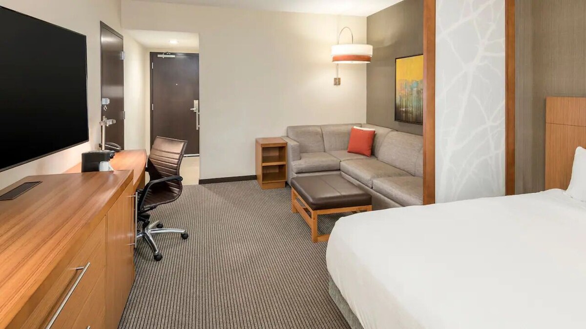 This listing is for 2 separate rooms within a hotel. The price shown in the listing covers all 2 rooms. ✦ Each room is 378 sq. ft, equipped with complimentary toiletries, standard quality 55-inch TV, available with Standard cable. ✦ Rooms are not adjoining and possibly not next to each other. Spaces are assigned upon arrival based on availability. ✦ Daily cleaning services included in the nightly price. There are a few additional details to know before you book: ✦ The minimum age required for check-in is 18 years old. ✦ Please ensure you have a valid ID for check-in, as it is mandatory for entry. ——————————————— Guest Access: During your stay, you will have access to the property and amenities according to the following schedule: ✦ Check-in is available from 03:00 pm. ✦ Public or shared fitness center open 24/7, available in the property. ✦ Indoor shared pool available all year, opened from 9:00AM to 9:00PM. ✦ Paid valet parking – 1 space(s), available for $25 per day. ——————————————— Other Things to Note: There are several additional things to note: ✦ A credit/debit card is required at check-in for a $100 per night refundable deposit, returned after check-out if no damages occur. ✦ Pets are welcome with an additional charge of $100.00. Max 50 lbs/pet allowed, max of 2 if under 75 lbs. ✦ We use multi-unit listings, so rooms are similar but may have small differences. ✦ The required refundable security deposit is charged per night on a valid credit card. ✦ For stays of 7–30 nights with pets, a $100 deep cleaning fee applies. ✦ Early check-in and late check-out are each $15, subject to availability. Our prices include all fees. No hidden fees.