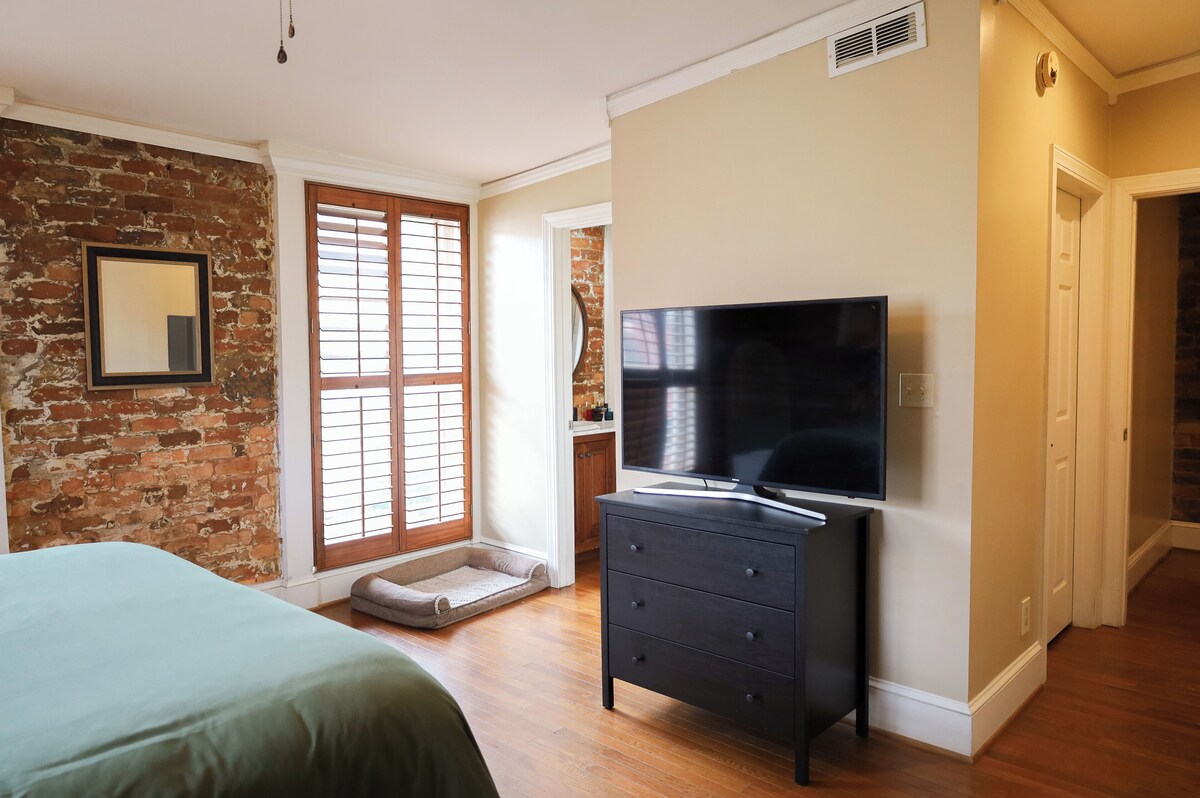 Heart of downtown! This beautiful 2.5 story brick abode is right on Main Street with its own private parking in a gated community. You're walking distance from everything downtown Greenville has to offer. The townhome sleeps 5 adults with an additional \ bed for kids. There's a private balcony to enjoy your morning coffee & evening cocktail. Built in the late 1800s, this is a historical gem! Perfect for the entire family, so pack the kids, bring the dog & enjoy this slice of paradise. First floor includes the living room with pullout queen sofa bed, kitchen and half-bath. The loft includes pullout twin sofa bed, twin \ bed for kids, and laundry. Top floor includes the master bedroom with queen bed, full bathroom, linen closet and bedroom closet. Our prices include all fees. No hidden fees.