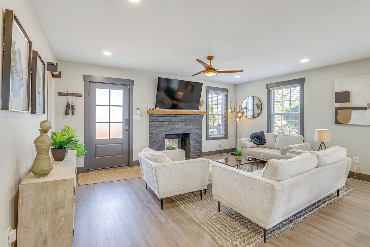 Dogs Welcome w/ Fee | Bright & Modern Home | 4 Mi to Downtown Discover comfort and convenience at this 3-bedroom, 3-bath vacation rental in Greenville, SC! Seamlessly stream your show on any of 5 smart TVs, then step outside to enjoy a beverage and unwind with your furry friend in the fenced-in yard. Just minutes from top attractions like Falls Park on the Reedy, Greenville Zoo, and vibrant downtown dining and shopping, it’s the perfect getaway for family and friends! -- THE PROPERTY -- SLEEPING ARRANGEMENTS - Bedroom 1: 1 queen bed - Bedroom 2: 1 queen bed - Bedroom 3: 1 queen bed INDOOR LIVING - 5 Smart TVs - Dining table, sofa seating OUTDOOR LIVING - Deck w/ outdoor dining - Front porch w/ seating - Fenced-in yard KITCHEN - Dishwasher, refrigerator, stove/oven, microwave - Drip coffee maker, blender, toaster, ice maker - Cooking basics, dishware & flatware GENERAL - Free WiFi - Central A/C & heating, ceiling fans - Washer/dryer - Linens/towels, complimentary toiletries - Trash bags & paper towels - Shampoo, conditioner, body wash FAQ - Pet fee (paid pre-trip) - 1 exterior security camera (facing out) ACCESSIBILITY - 2-story home, 5 steps to enter PARKING - Shared driveway (3 vehicles) - EV charger available -- THE LOCATION -- - Near local golf courses - 2 miles to Swamp Rabbit Trail - 3 miles to The Children’s Museum of the Upstate & Upcountry History Museum - 4 miles to Falls Park on the Reedy - 5 miles to Paris Mountain State Park & Greenville Zoo - 17 miles to Greenville-Spartanburg International Airport -- REST EASY WITH US -- Evolve makes it easy to find and book properties you’ll never want to leave. You can relax knowing that our properties will always be ready for you and that we’ll answer the phone 24/7. Even better, if anything is off about your stay, we’ll make it right. You can count on our homes and our people to make you feel welcome — because we know what vacation means to you. -- POLICIES -- - No smoking - Pet friendly w/ $50 fee (+ fees & taxes, dogs only) - No events, parties, or large gatherings - Additional fees and taxes may apply - Photo ID may be required upon check-in ADDITIONAL INFORMATION - This 2-story home requires 5 steps to enter - Your safety matters. This property features 1 exterior security camera located on the front door facing the front entry. It does not look into any interior spaces. The camera records video and sound when activated by motion Our prices include all fees. No hidden fees.