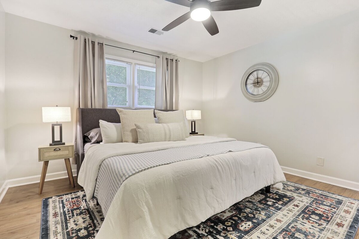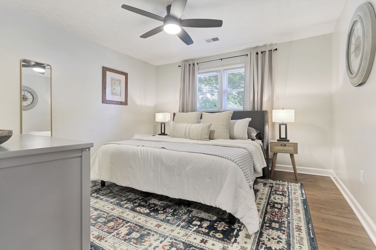 Enjoy a stylish experience at this centrally-located place located steps off the Swamp Rabbit Trail. Ride bikes into Travelers Rest. Enjoy an evening by the fire pit or cook a beautiful dinner at home in the fully equipped kitchen. The main level features a master bedroom, full bath, living room, dining room, kitchen, coffee station, desk area and laundry room. Upstairs are two cozy bedrooms and large full bathroom. Sit back at the fire pit beside the flower garden beds for you to enjoy!This home has the taste of a cape cod but in beautiful Travelers Rest, SC. Guests will have the entire property to themselves with convenient smart locks. The main level has been updated with a new kitchen and appliances and is open to the dining area, desk area and laundry area. The cozy living room has a beautiful brick fireplace (that we ask you to enjoy looking but not use) as well as a large tv with free Wi-Fi. Also on the main level is the master bedroom with a large walk-in closet, King bed, full size dresser, tv, nightstand with USB port lamps and an extra pack and play and baby gate for your stay. Also on the main level is a renovated bathroom with a stand up shower. Upstairs are two guest bedrooms with queen beds, full dressers, tvs, nightstands with USB port lamps, hooks and luggage holders and full closets. Upstairs is also a spacious bathroom with a large tub and dual vanity. Each bedroom has luxury mattresses and pillows for a comfortable stay as well as an overhead fan with remote. Outside are raised garden beds with strawberries (when in season), herbs and flowers. You can also enjoy the firepit with provided wood and Lifetime Adirondack chairs. This home is here to provide a comfortable and easy stay while visiting South Carolina. We hope you enjoy it! **Please note that you must enter your pets at the time of reservation. We charge a $50 pet fee per week that must be collected with your reservation. If you do not enter your pet and we find evidence that a pet was present during your stay, there will be an additional $150 charge. You must enter your pets at the time of reservation. We charge a $50 pet fee per week that must be collected with your reservation. If you do not enter your pet and we find evidence that a pet was present during your stay, there will be an additional $150 charge. The Swamp Rabbit trail is connected to this street and connects to downtown Greenville. Enjoy biking, running and walking on this paved trail central to Greenville/Travelers Rest. Our prices include all fees. No hidden fees.