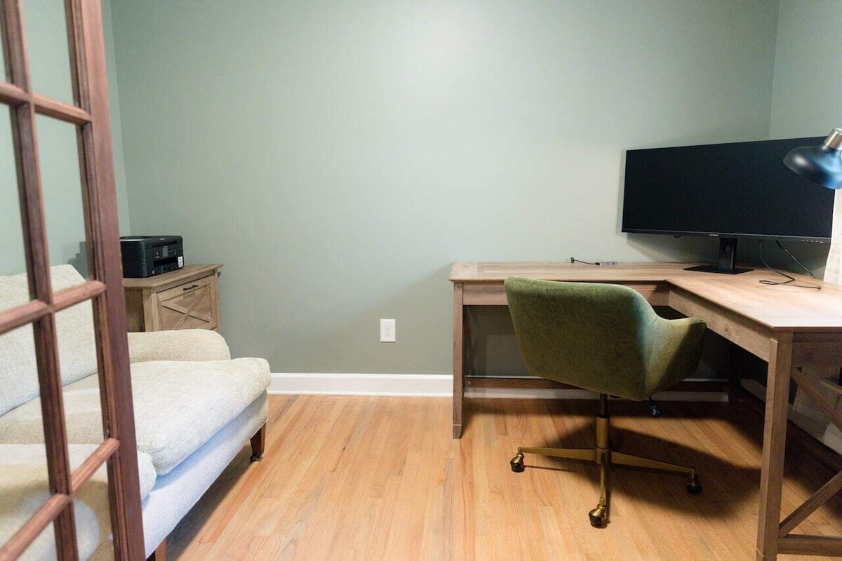 Summary: This lovely home has all you need for a spacious and comfortable stay. Upscale furnishings, comfortable and spacious bedrooms, a fully updated kitchen, and a fenced in backyard, perfect for family with kids and pets. Nestled in a quiet neighborhood yet just a short drive from great restaurants and breweries, this is a great location whether you’re traveling for work or pleasure. 10 Min Drive to Downtown Greenville The Space: KEY FEATURES: ☀ 4 spacious bedrooms; 1 king, 2 queen, bunk room with 2 twin over full bunk beds and 2 trundles. ☀ Modern fully-stocked kitchen + dining area ☀ Cozy living room w/ a fireplace and family room with 55” Smart TV ☀ Perfect kids bunk room with 65\ s bunk room is the perfect space for kids! Play foam couches, large bean bag the folds out to a king size floor mattress and 65 in smart TV. This space has it ,