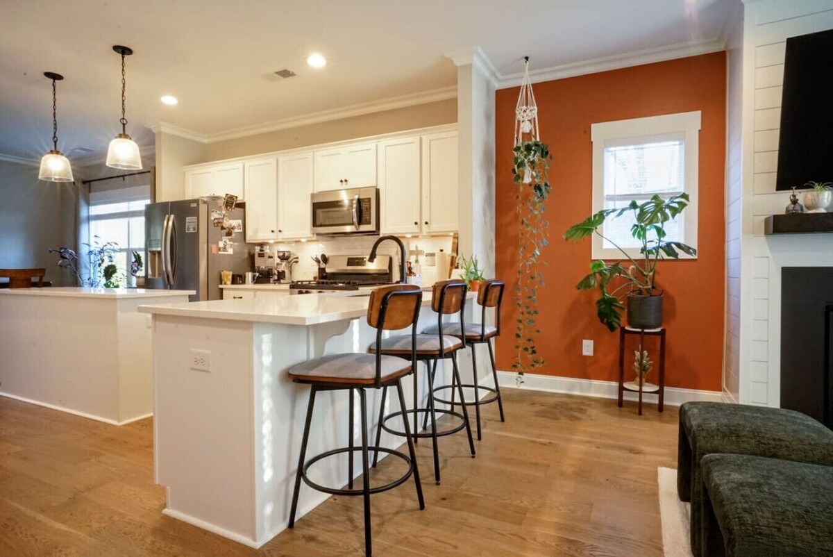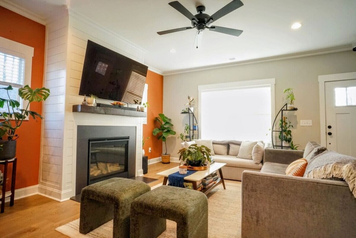 Convenience, Comfort & Nature – All in One! Welcome to our modern 2-bedroom, 2-bath home + office with serene forest views! ➡️ 5-min walk to Swamp Rabbit Trail ➡️ 7-min drive to DT GVL ➡️ 5-min drive to grocery & local eats ✔ Chef’s kitchen: Air fryer, rice cooker, juicer, blender, Dutch oven ✔Cocktail set & Gaggia Espresso & Keurig ✔ Rower + yoga mats ✔ 65” OLED 4K LG TV & live cable & Oculus VR ✔Dual monitors & electronic standing desk Biweekly mowing & quarterly pest control included! Step inside this thoughtfully designed open-floor-plan home built in 2023, where EXPERT LEVEL amenities, cozy touches, and nature-inspired elements create the perfect getaway! From a spacious living area to a serene outdoor deck, every corner is crafted for comfort and convenience. 🏡 Bright & Inviting Living Space Walk through the front door into a light-filled living room designed for relaxation. ✔ Two plush West Elm couches provide ample seating ✔ Gas-operated fireplace turns on with the flip of a switch for instant coziness ✔ Seamless flow into the kitchen and dining area, with a bar island for extra seating ✔ Fully stocked kitchen with a pantry for extra storage 🌿 Houseplants add a warm, homey feel, but if you’d prefer a plant-free space, just let us know—we’re happy to accommodate! 🧺 Laundry Room for Your Convenience Adjacent to the kitchen, you'll find a laundry room with: ✔ Free access to an LG front-load washer and dryer ✔ Locally provided Nood Clean all-natural laundry detergent—perfect for sensitive skin and a wonderful, fresh scent 🛏 Queen Bedroom & Home Office To the left of the living room: ✔ Queen bedroom with a Helix Midnight mattress, plush Brooklinen sheets, Dream pillows & a spacious closet ✔ Full bathroom just steps away ✔ Dedicated home office with an electronic standing desk, full bookcase, and rower—perfect for work or wellness 🛏 Private Master Suite Across from the dining area, the master king suite is a true retreat: ✔ Helix Dusk king bed with Brooklinen sheets & a quilted comforter ✔ Blackout curtains for ultimate rest ✔ Private en-suite bathroom featuring his-and-hers sinks and a rain shower option 🌿 Peaceful Outdoor Escape & Garden Beyond the dining area, step onto the back deck, offering: ✔ East-facing forest views for a calm, natural setting ✔ The perfect spot for morning coffee in the gentle sunlight ✔ A shaded retreat in the evening, protected from harsh afternoon rays Out front, you'll find a raised garden bed with: ✔ Two blueberry bushes, parsley, rosemary, and oregano—perfect for fresh cooking and snacking 🚗 Parking & Easy Trail Access ✔ Large private driveway with enough space for at least 3 cars ✔ Free street parking available in the neighborhood ✔ Two high-quality hybrid bikes (Trek & custom-designed) available upon request—perfect for exploring the nearby Swamp Rabbit Trail 🛠 Hassle-Free Stay ✔ Biweekly mowing & quarterly pest control included for a worry-free experience Experience the perfect balance of modern comfort, convenience, and nature—book your stay today! Our neighborhood is quiet, safe, and welcoming. You'll find a mix of new and older homes, with friendly neighbors who look out for one another. It's the kind of place where you can comfortably leave packages outside without worry! Our prices include all fees. No hidden fees.