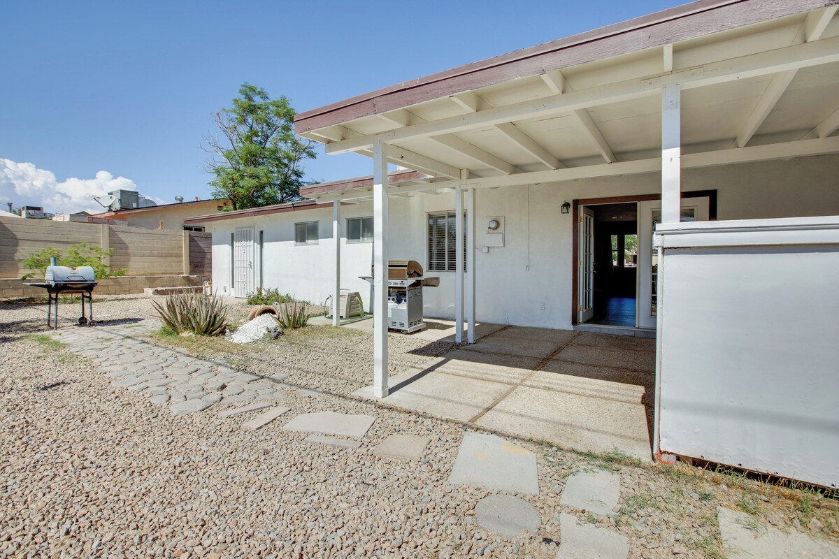 Enjoy home living with the Vegas Strip at your fingertips at this 2-bedroom, 2-bathroom vacation rental. This spacious Las Vegas home’s central location offers quick access to casinos, arenas, and outdoor fun. Hit the tables at Caesars Palace, catch a fight night at UFC Apex, or drive over to Red Rock Canyon to see beautiful desert landscapes and towering red sandstone peaks. Spend a quiet evening grilling on the patio and enjoying the weather in the fenced yard before heading in for a movie. -- THE PROPERTY -- Las Vegas Short-Term Residential Rental Business License: G68-05650 | Pet Friendly w/ Fee | Washer/Dryer | 1,704 Sq Ft Bedroom 1: Queen Bed | Bedroom 2: Queen Bed | Living Room: Full Futon | Additional Sleeping: Pack ‘n Play INDOOR LIVING: Smart TVs, dining table, breakfast bar, en-suite bathroom OUTDOOR LIVING: Covered patio, gas grill, charcoal grill (charcoal not provided) KITCHEN: Cooking basics, spices, dishware/flatware, dishwasher, refrigerator, stove, microwave, coffee maker, kettle, toaster, toaster oven, garbage disposal GENERAL: Free WiFi, keyless entry, central heating & air conditioning, ceiling fans, complimentary toiletries, linens/towels, laundry detergent, iron/board, hangers, hair dryers, high chair, trash bags/paper towels FAQ: Pet fee (paid pre-trip), 2 external security cameras (facing out) SUITABILITY: 1 step required for access, single-story home PARKING: Driveway (2 vehicles) -- THE LOCATION -- THE VEGAS STRIP: Caesars Palace (4.6 miles), Bellagio Hotel & Casino (5.3 miles), The Cosmopolitan of Las Vegas (5.4 miles), Excalibur Hotel & Casino (5.5 miles), MGM Grand (6.2 miles) STADIUMS & ARENAS: Orleans Arena (4.1 miles), T-Mobile Arena (5.3 miles), Allegiant Stadium (6.1 miles), UFC Apex (7.0 miles), MGM Grand Garden Arena (7.1 miles) PARKS & PRESERVES: Springs Preserve (2.3 miles), Red Rock Canyon National Conservation Area (8.8 miles), Clark County Wetlands Park (16.2 miles), Spring Mountain Ranch State Park (17.4 miles) AIRPORT: Harry Reid International Airport (7.4 miles) -- REST EASY WITH US -- Evolve makes it easy to find and book properties you'll never want to leave. You can relax knowing that our properties will always be ready for you and that we'll answer the phone 24/7. Even better, if anything is off about your stay, we'll make it right. You can count on our homes and our people to make you feel welcome — because we know what vacation means to you. This property is managed by Evolve Nevada (Nevada Broker # B.143842). -- POLICIES -- - No smoking - Pet friendly w/ $75 fee (+ fees & taxes, 2 max) - No events, parties, or large gatherings - Must be at least 21 years old to book - Additional fees and taxes may apply - Photo ID may be required upon check-in - NOTE: Your safety matters. This property features 2 exterior security cameras. Camera 1 is above the driveway facing out to the parking area and camera 2 is near the entrance facing out to the front yard and street. They do not look into any interior spaces. The cameras record video and sound when activated by motion Our prices include all fees. No hidden fees.