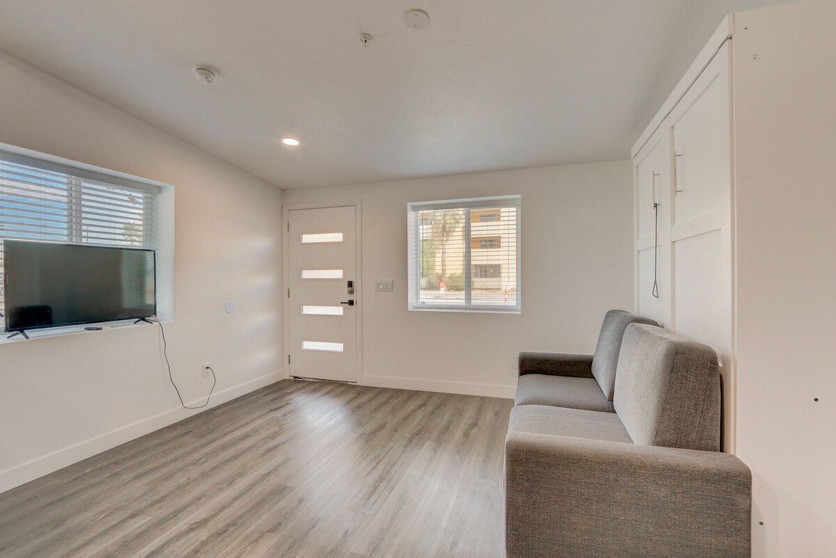 2 BLOCKS OFF LAS VEGAS BLVD IN THE BEVERLY GREEN HISTORIC NEIGHBORHOOD * STAINLESS STEEL APPLIANCES * LUXURY VINYL PLANK FLOORS * BLACK GRANITE COUNTERTOPS * FULL SIZE WASHER/DRYER * WALK IN SHOWER * INTERIOR AND EXTERIOR LED LIGHTS * BRAND NEW AC/HEAT MINI SPLIT UNITS * 5 MIN WALK TO FUTURE TESLA VEGAS LOOP STOP AT THE STRAT HOTEL * 10 MIN WALK TO THE ARTS DISTRICT * 10 MINUTE WALK TO MONORAIL * Our prices include all fees. No hidden fees.